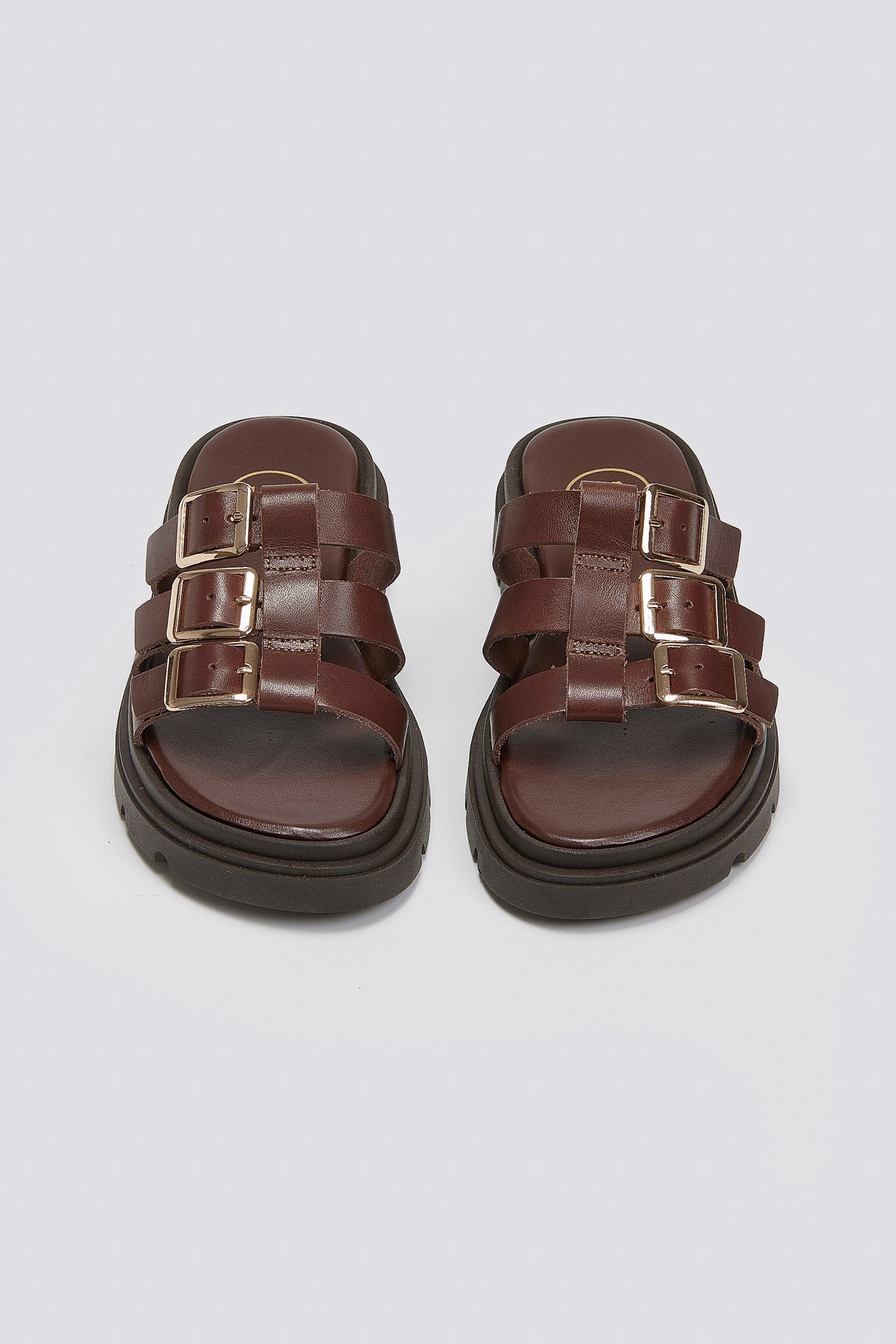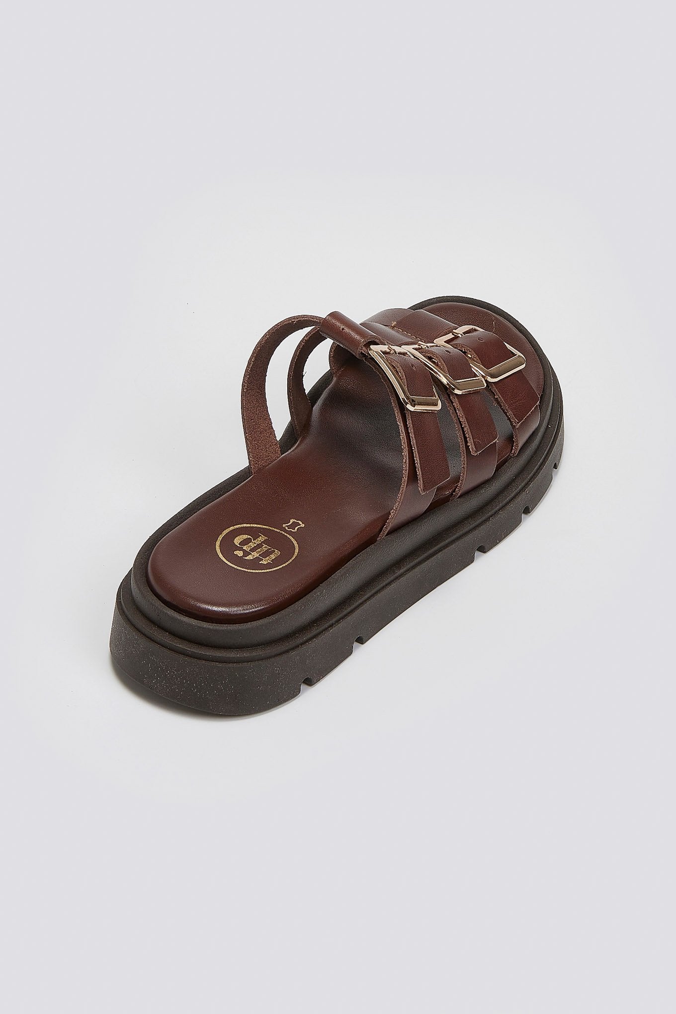 Σανδάλια flatforms δερμάτινα με περαστές φάσες Tfp - Καφέ