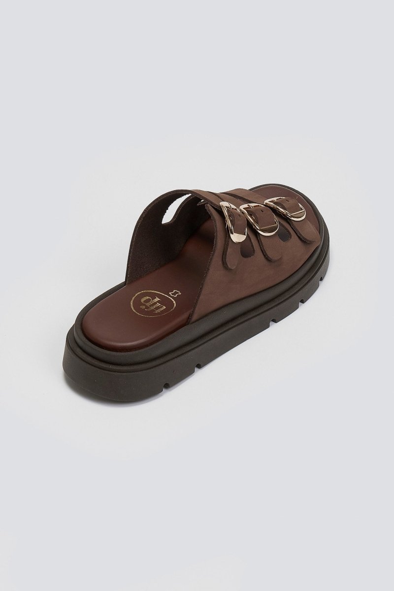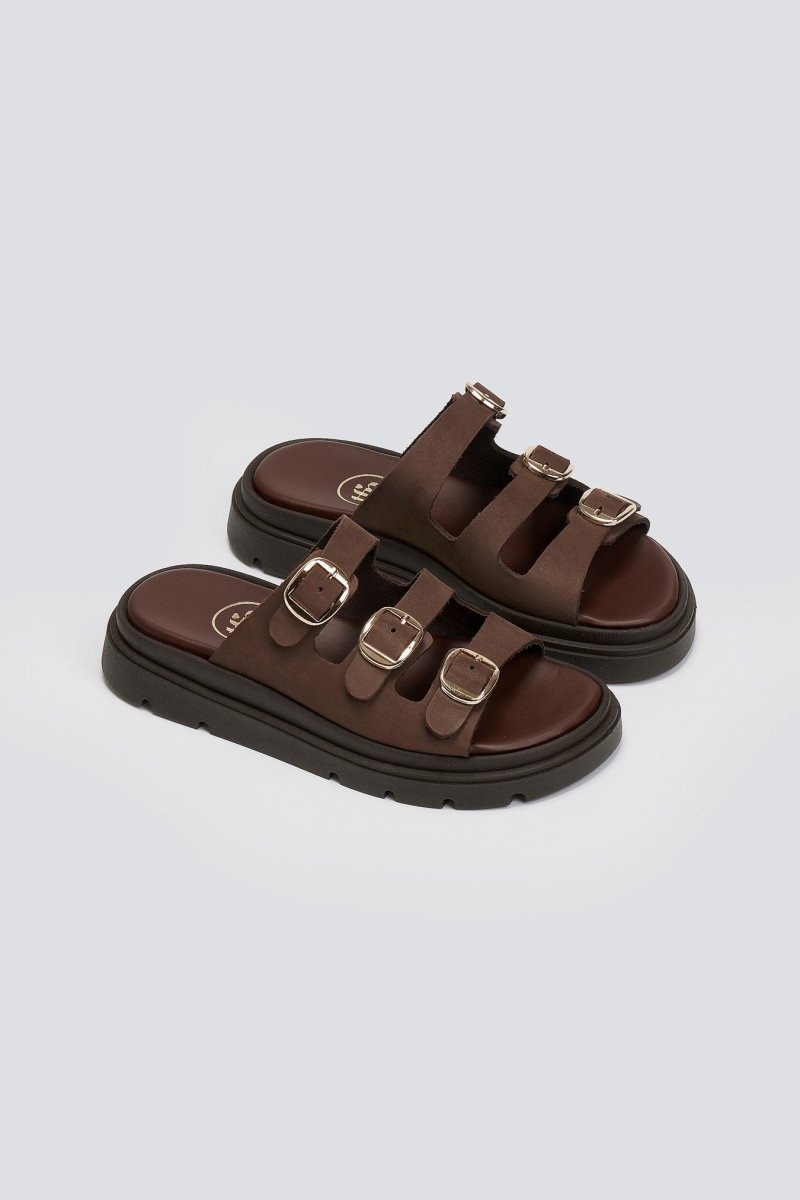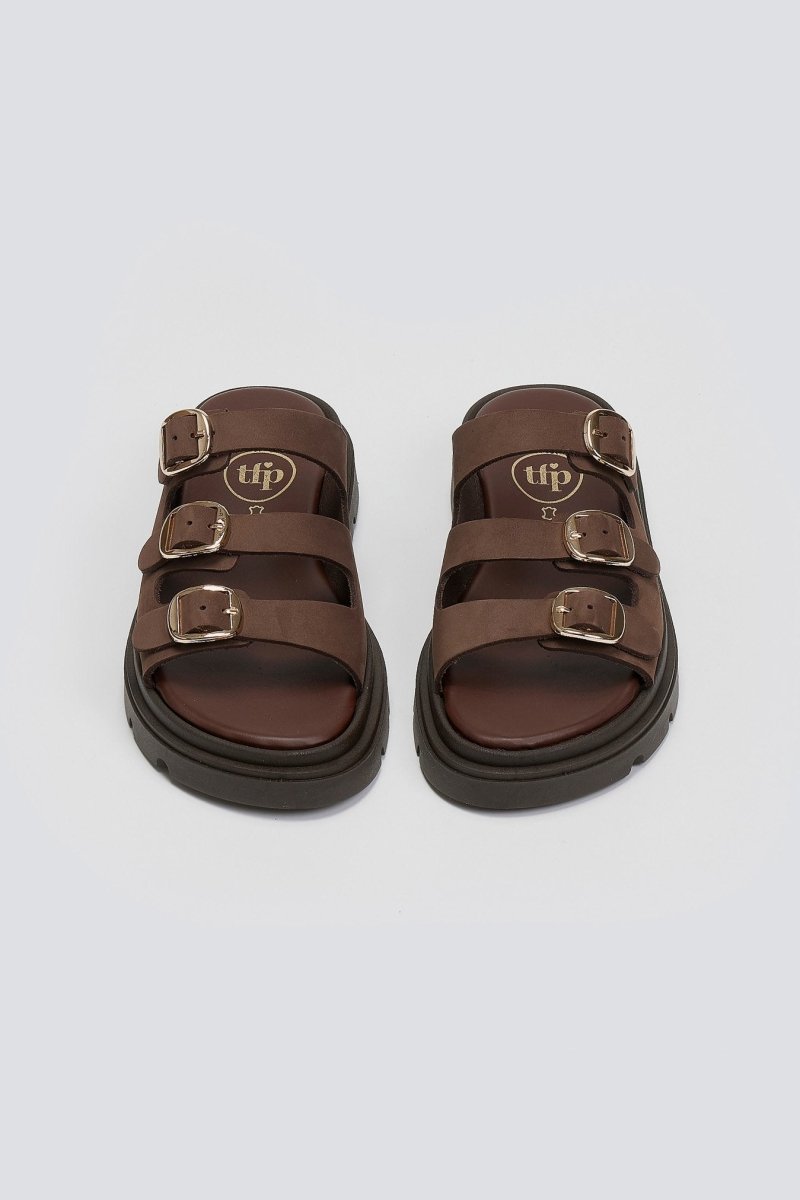 Σανδάλια flatforms δερμάτινα με τρεις φάσες Tfp - Καφέ