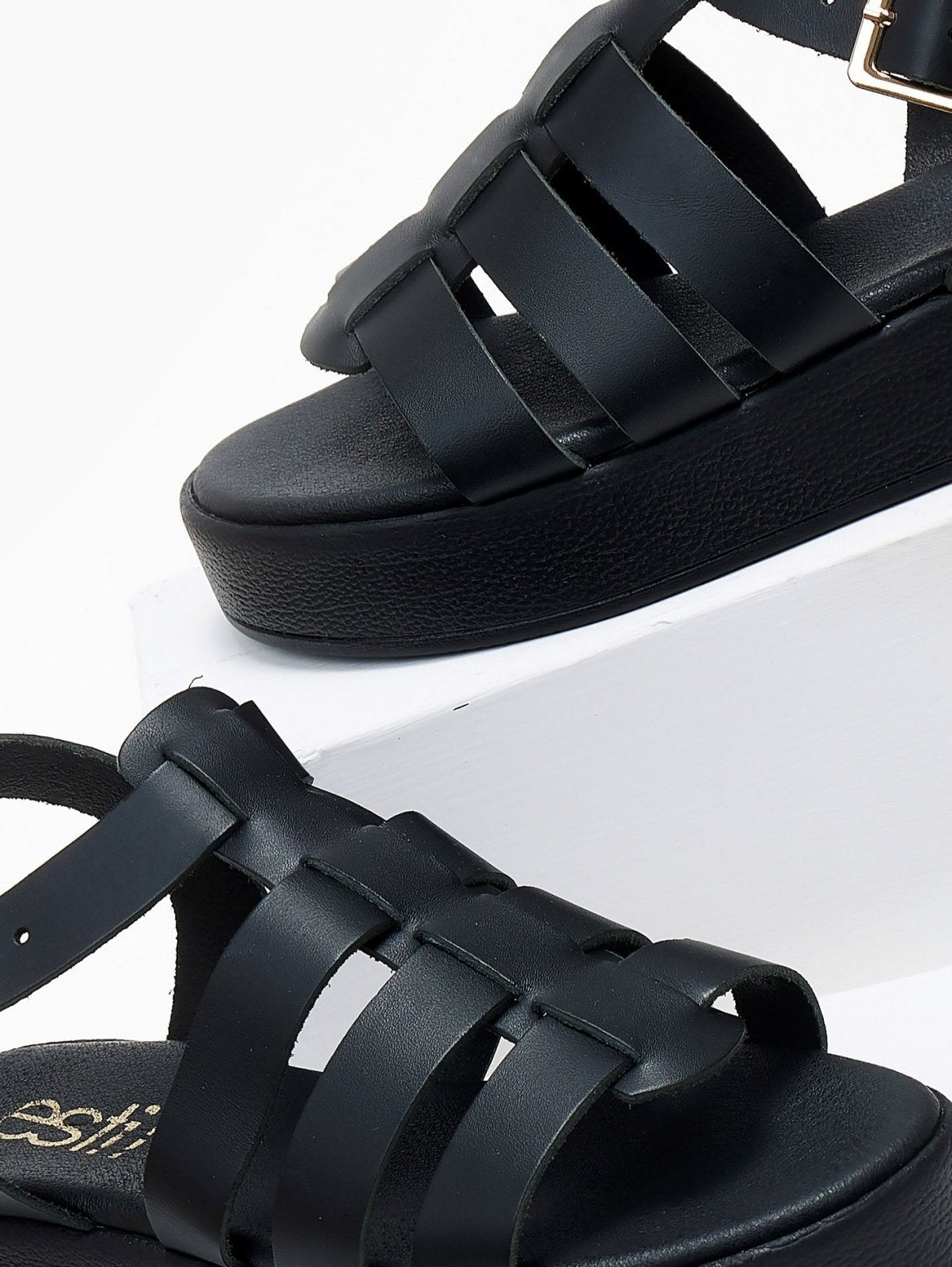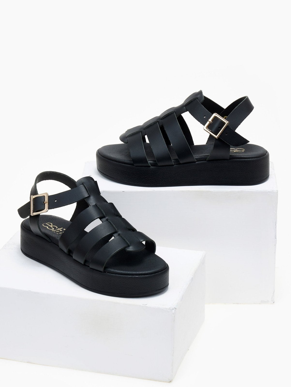 Σανδάλια flatforms δερμάτινα gladiator Estil. Δένουν με λουράκι στο πλάι. Μαλακός πάτος με ενίσχυση. Ελληνικής κατασκευής.