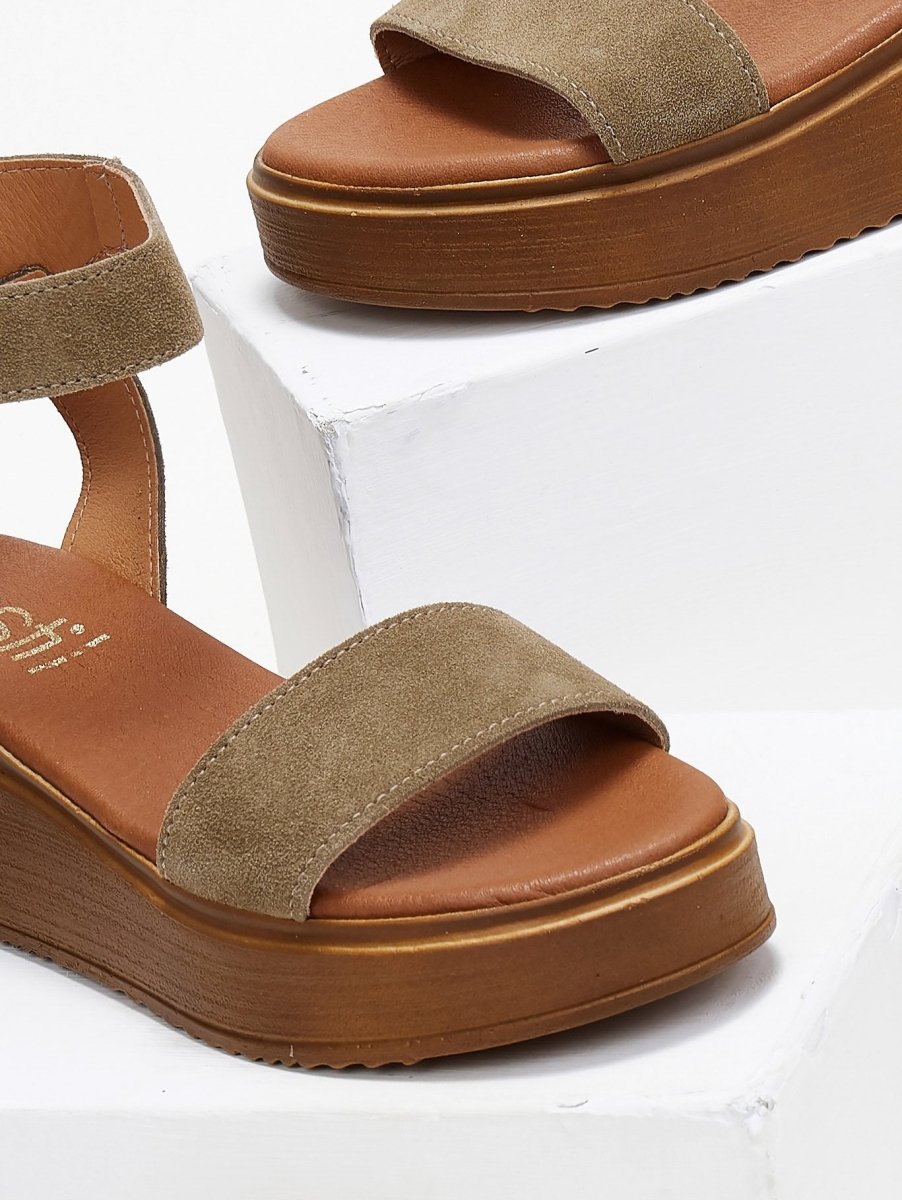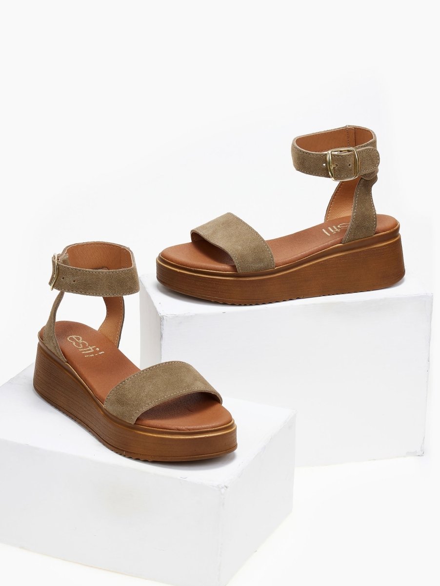 Σανδάλια flatforms καστόρινα Estil - Λαδί
