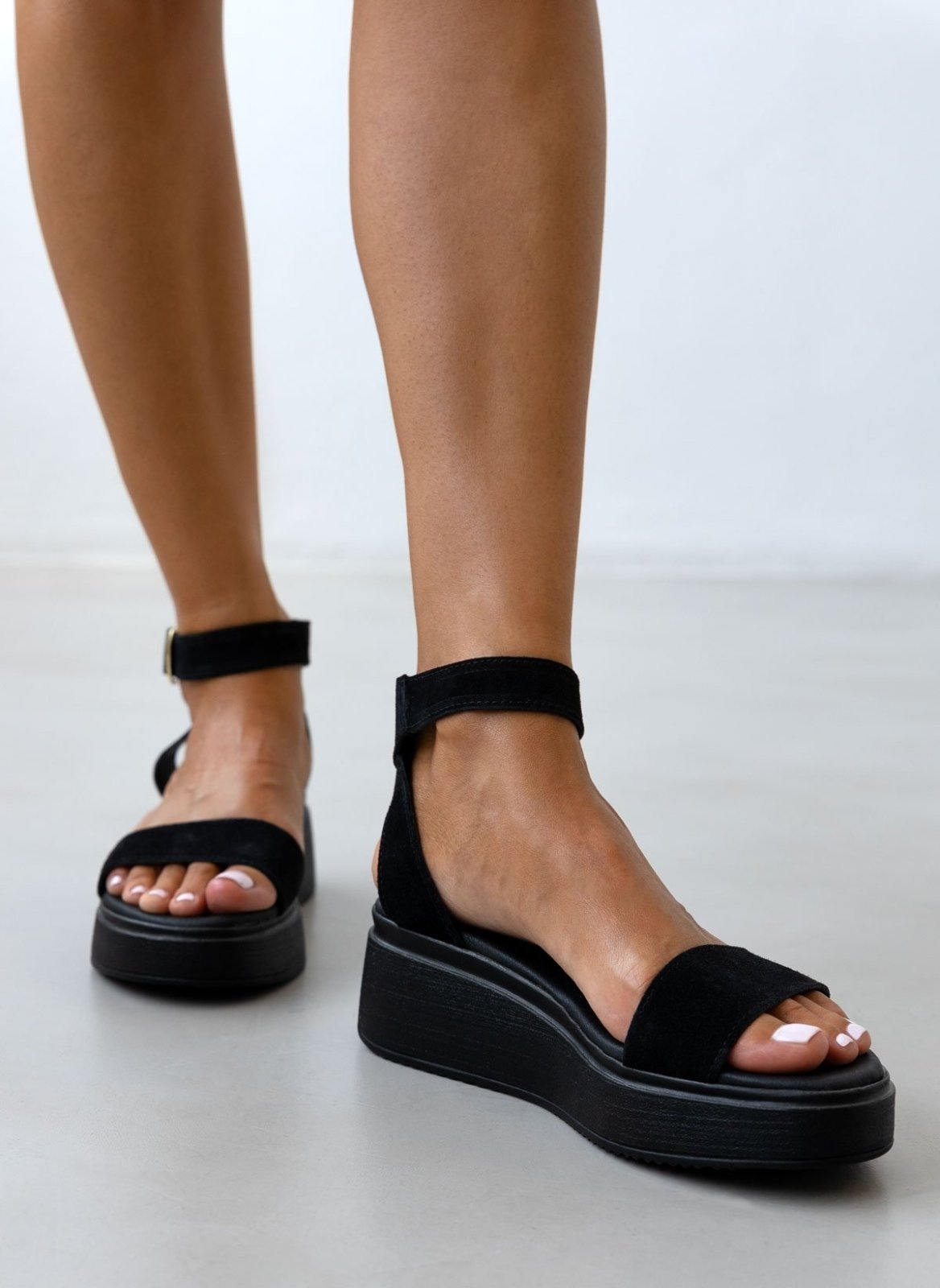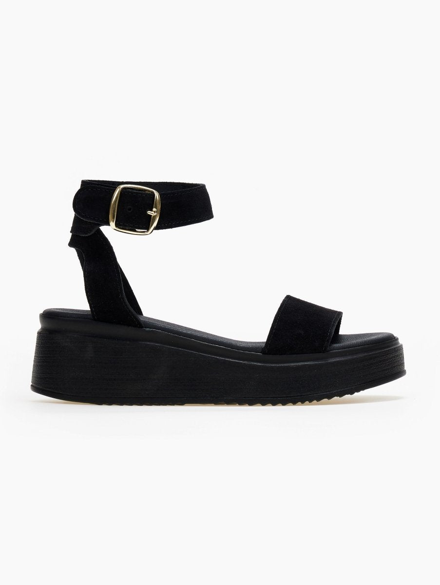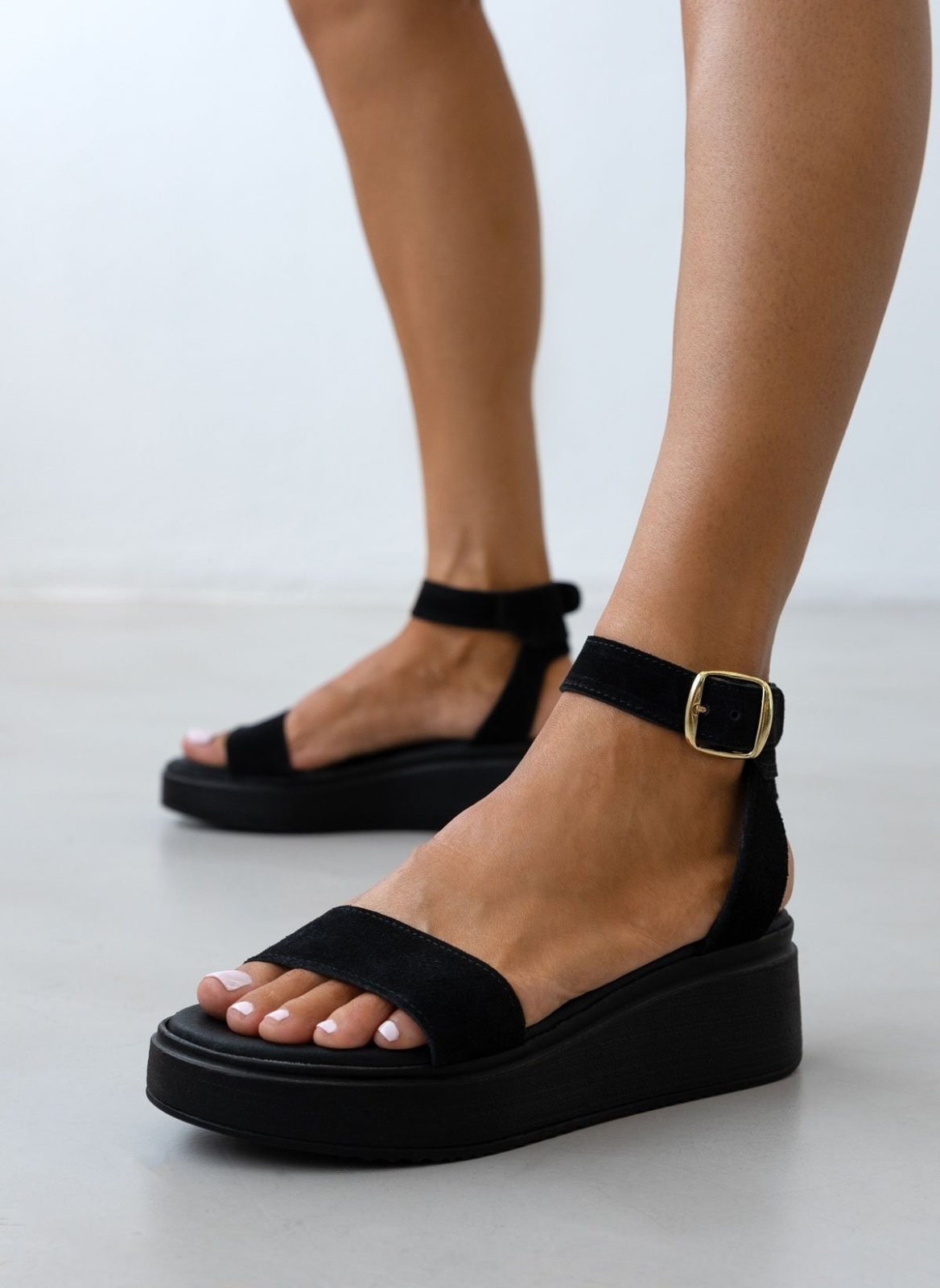 Σανδάλια flatforms από γνήσιο δέρμα καστόρι Estil. Δένουν με μπαρέτα στο ύψος του αστραγάλου. Μαλακός πάτος με ενίσχυση. Ελληνικής κατασκευής.