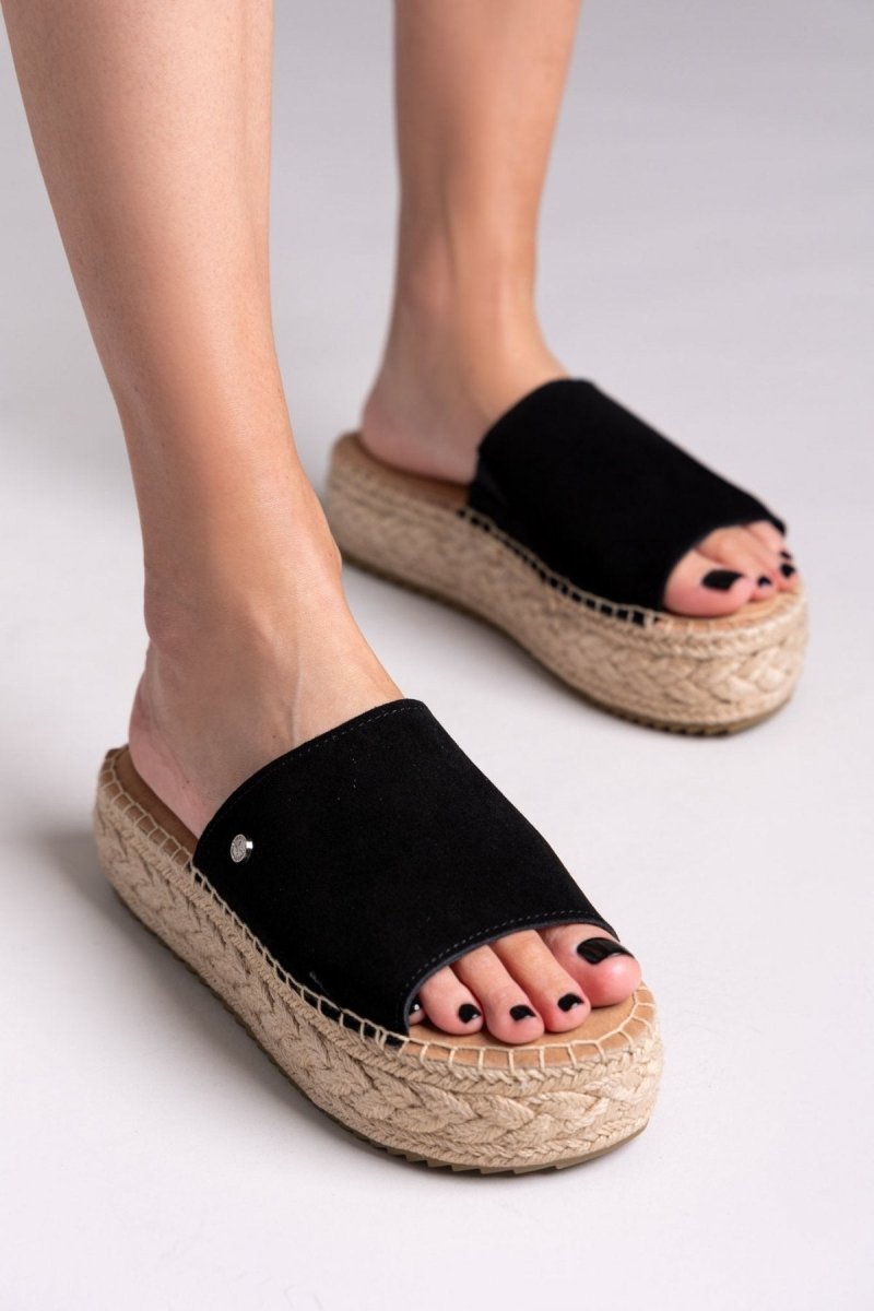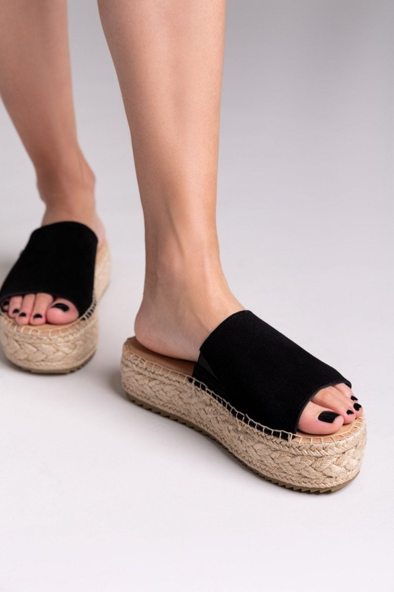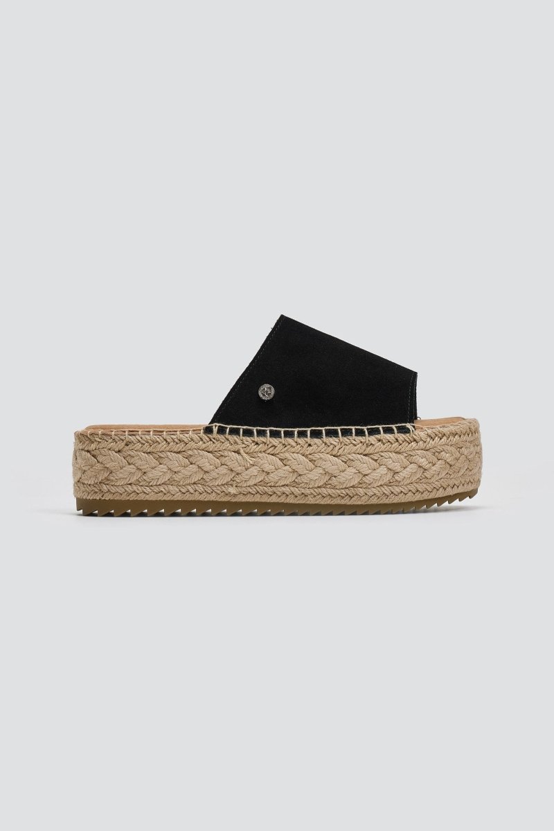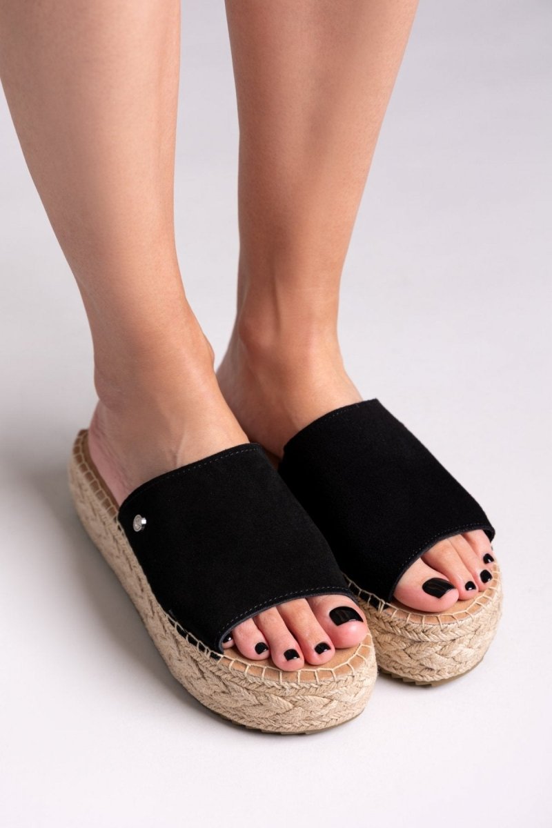 Σανδάλια flatforms από γνήσιο δέρμα καστόρι. Φαρδιά φάσα. Διακριτικό μεταλλικό λογότυπο στο πλάι. Λάστιχο στην εσωτερική τους πλευρά για καλύτερη εφαρμογή. Σόλα ντυμένη με σχοινί. Comfort biotech δερμάτινος πάτος με memory foam.