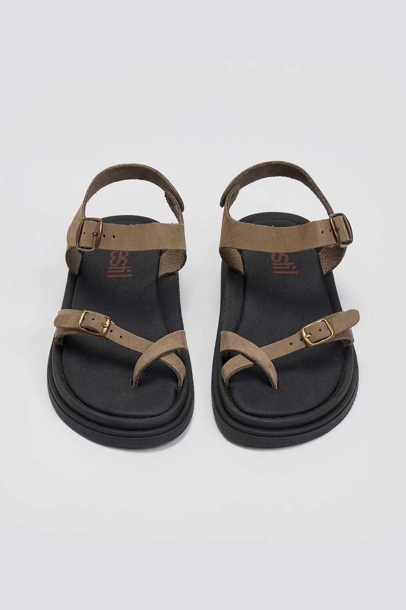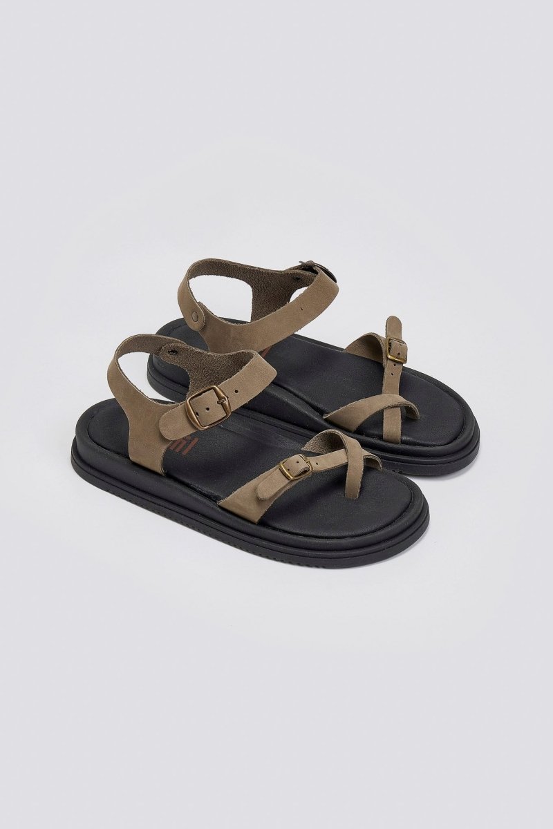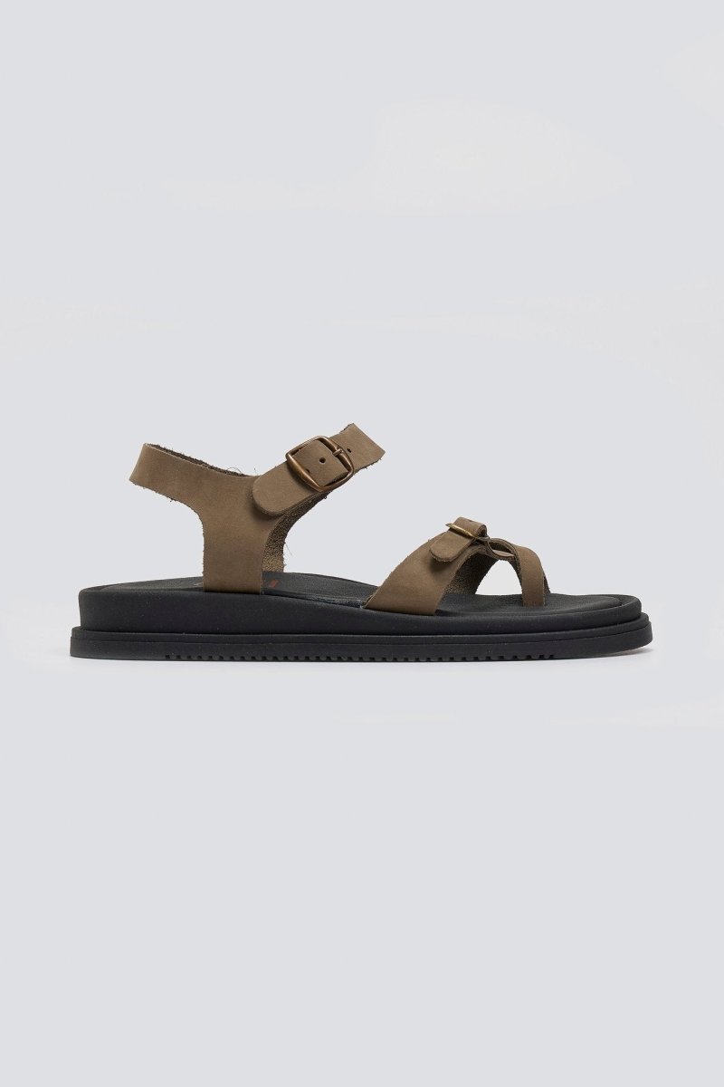 Σανδάλια flatforms nubuck δερμάτινα με μπαρέτα Estil - Λαδί
