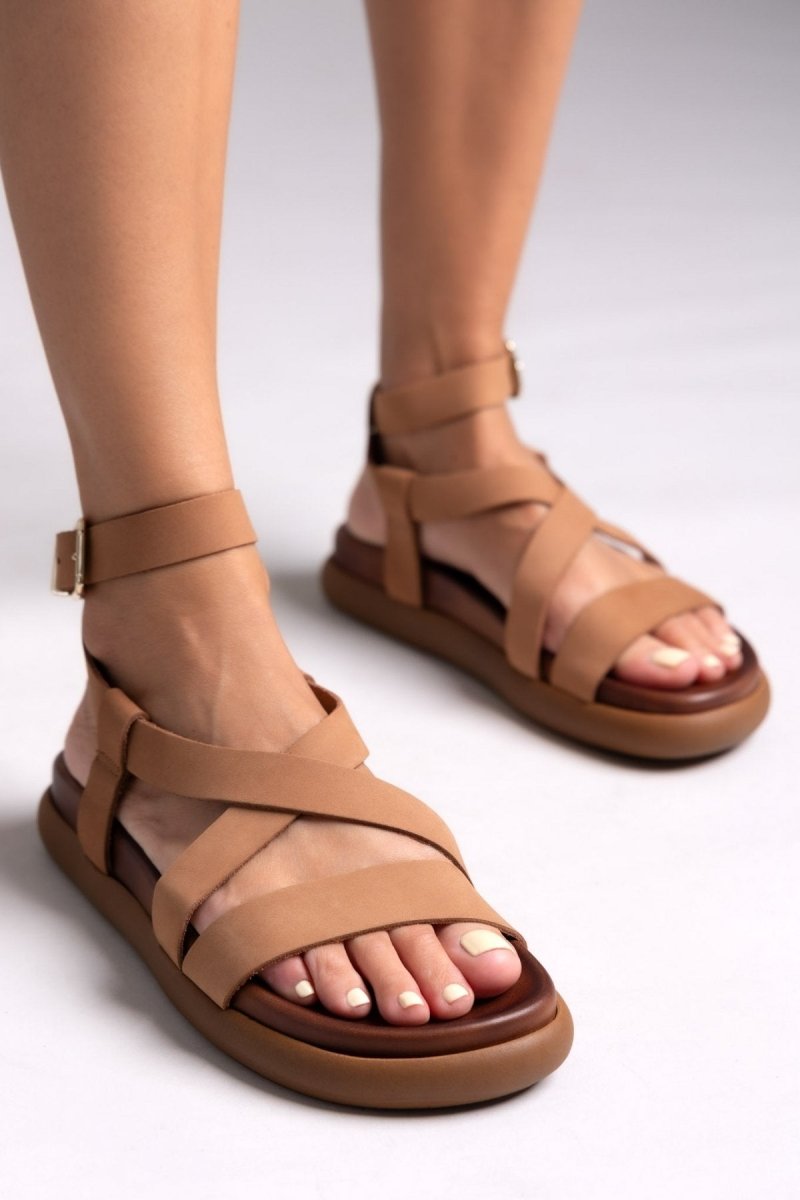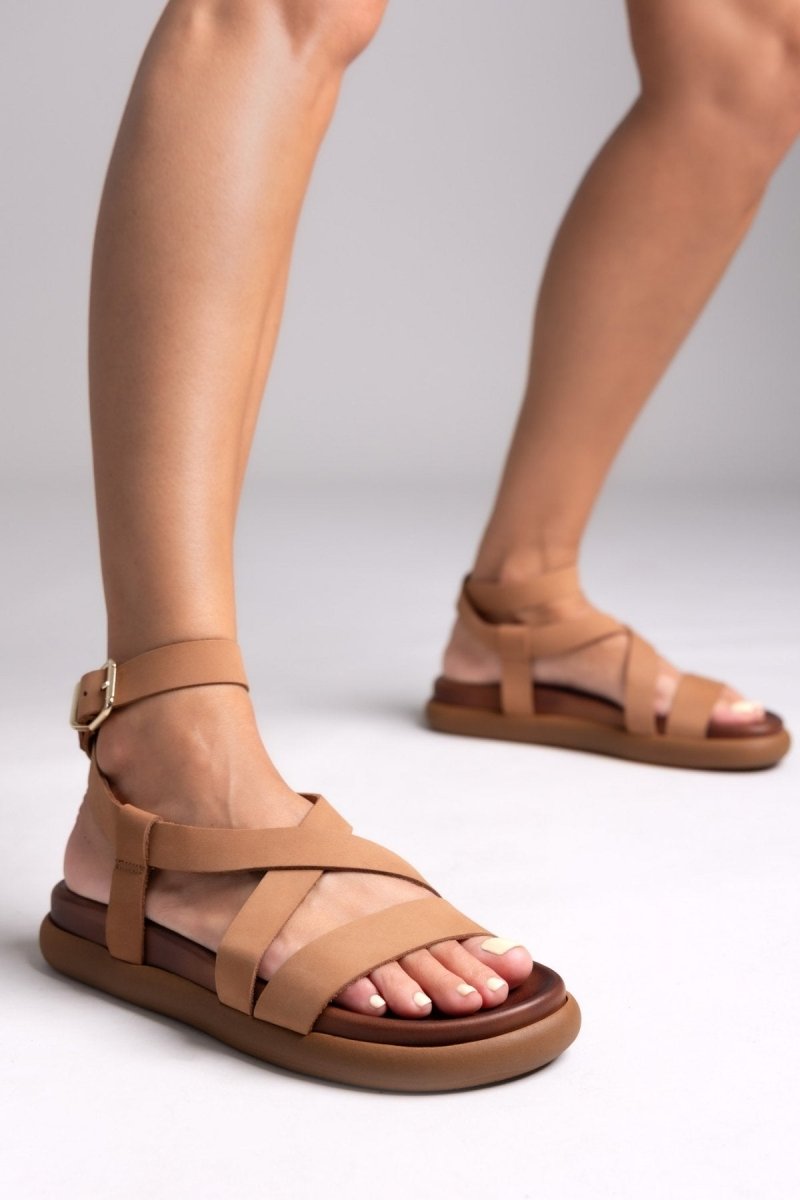 Σανδάλια flatforms nubuck δερμάτινα Iris Sandals - Κάμελ