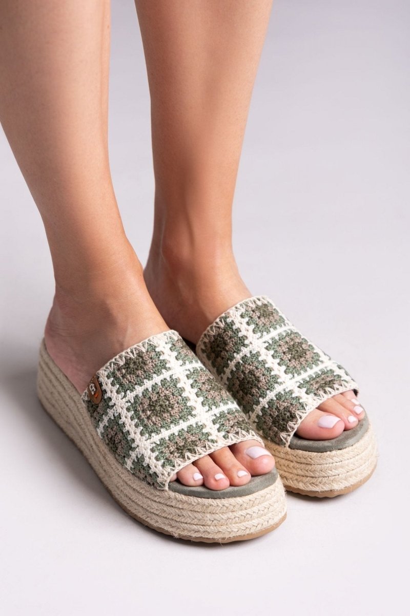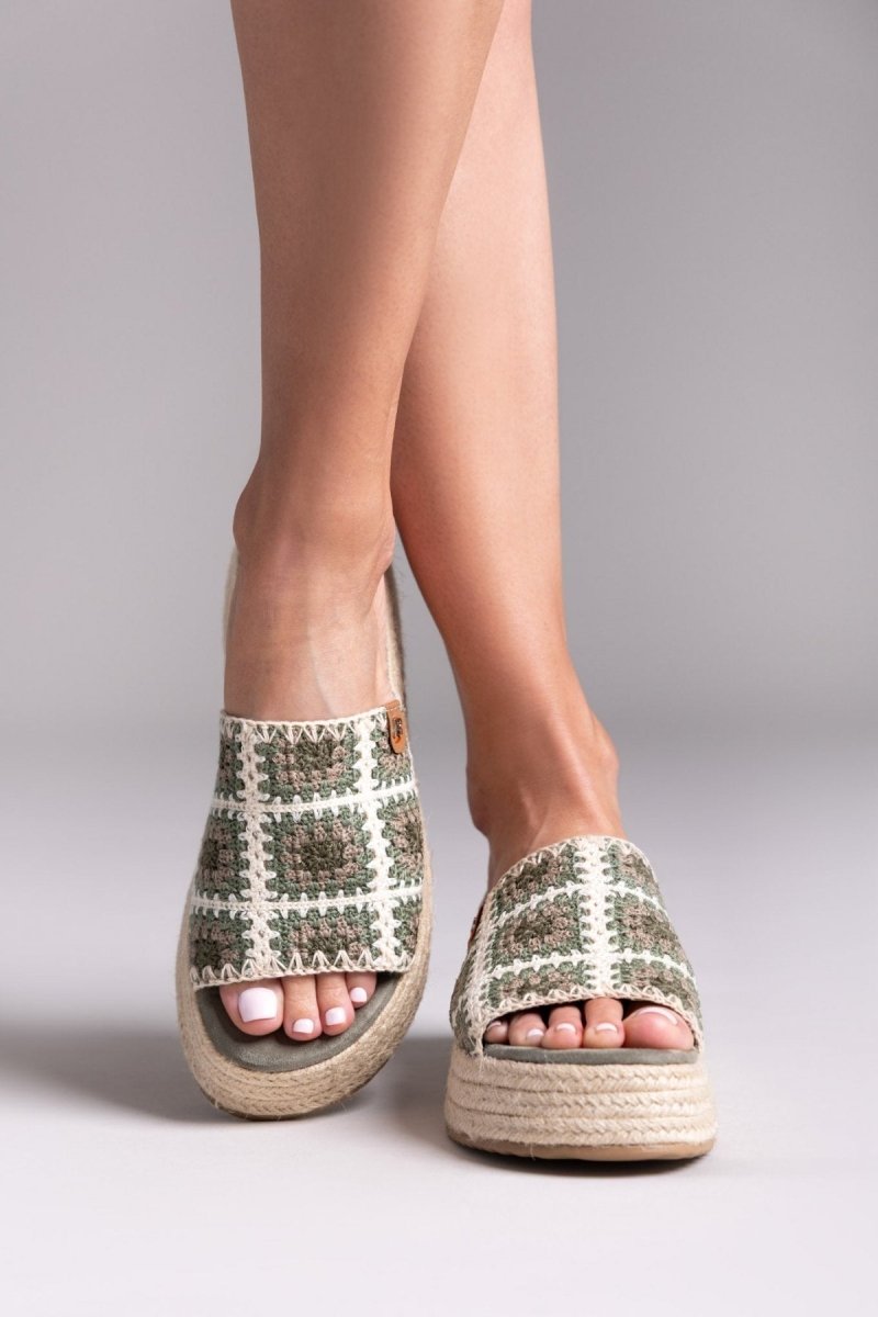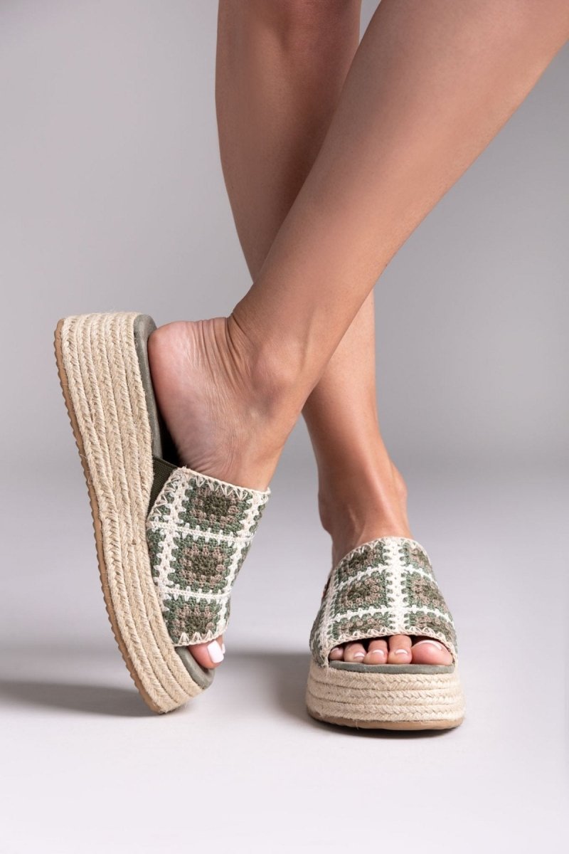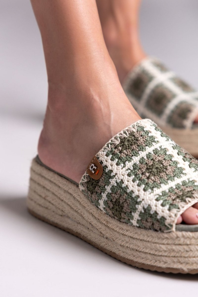 Σανδάλια flatforms με πλεκτό σχέδιο Refresh 172842 - Χακί