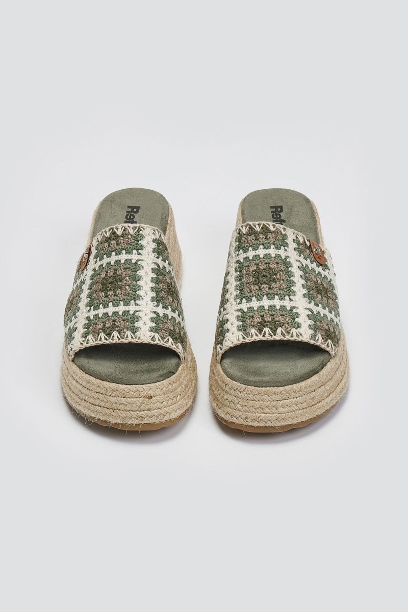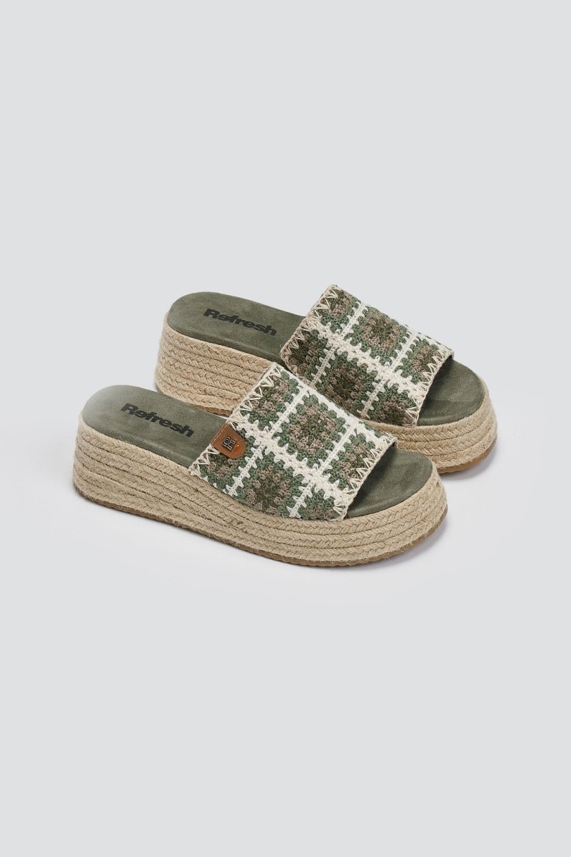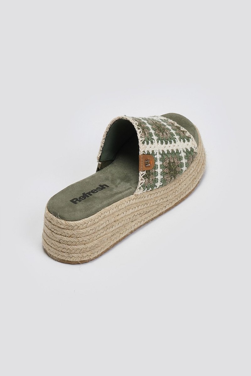 Σανδάλια flatforms με φαρδιά φάσα και πλεκτό σχέδιο Refresh. Σόλα ντυμένη με σχοινί. Comfort biotech μαλακός πάτος με memory foam. Εγκρίθηκε η Peta Vegan.