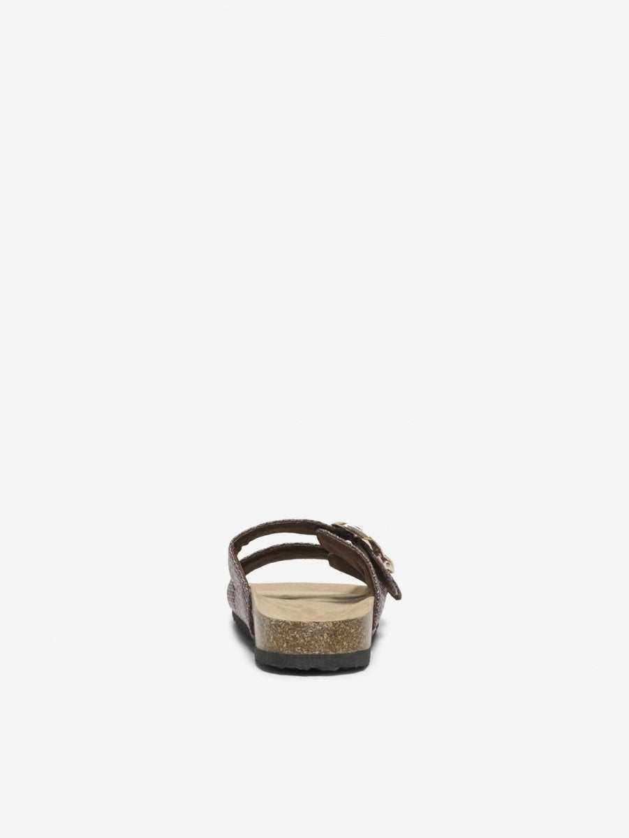 Σανδάλια flatforms από ψάθα ONLY. Φαρδιές φάσες με μεταλλικούς τοκάδες. Suede πάτος με ανατομικό σχήμα.