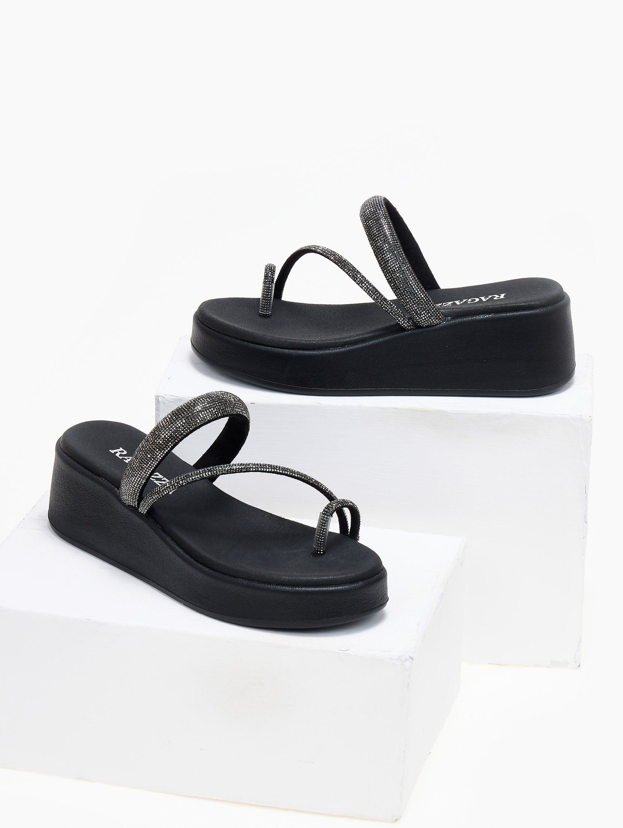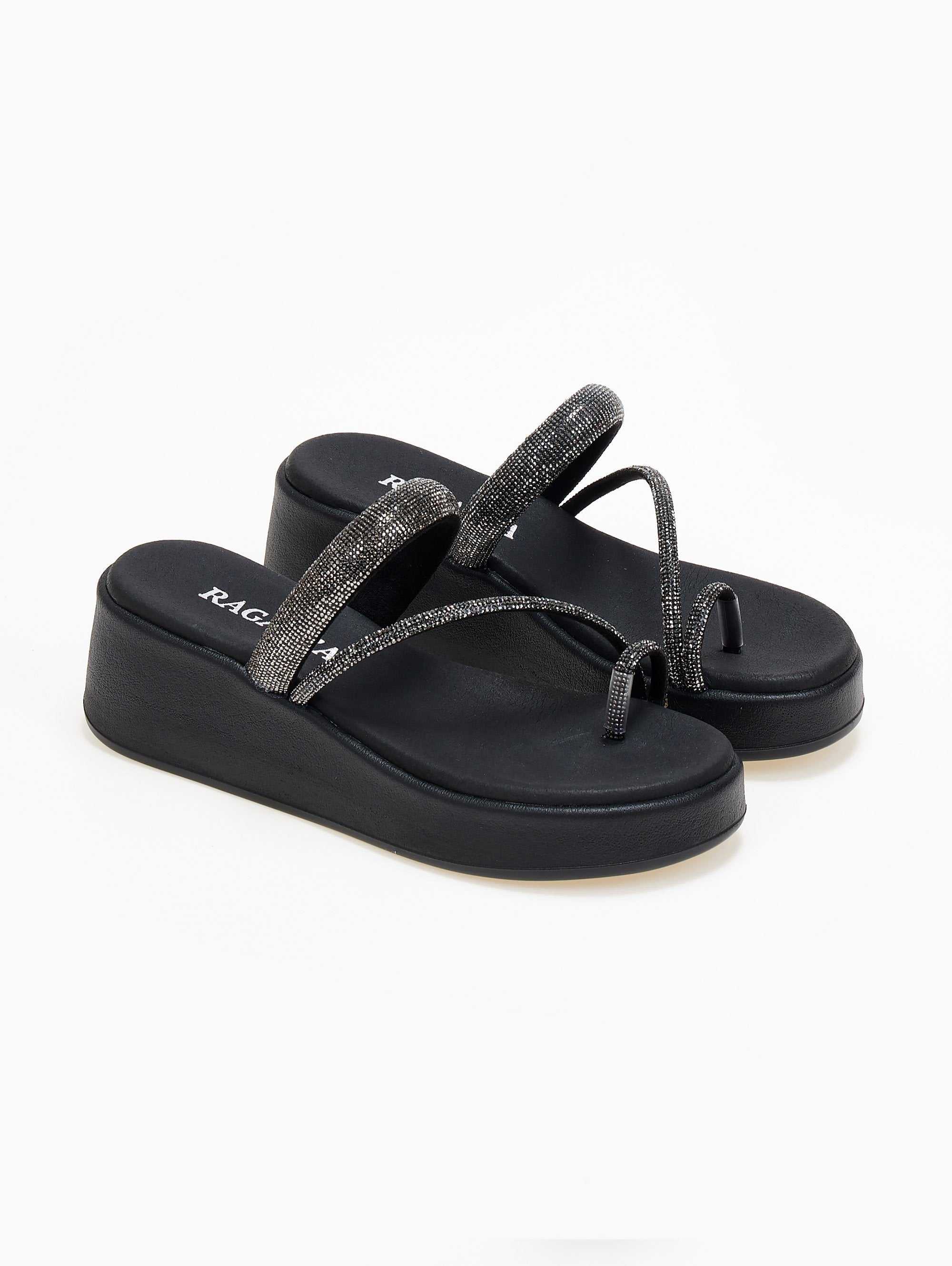Γυναικεία σανδάλια flatform με διακοσμητικά στρας. Διαθέτουν σχέδιο με λουράκια με στρας πάνω στο κουντεπιέ. Μαλακό, αναπαυτικό πάτημα. Η ελληνική εταιρεία Ragazza ειδικεύεται σε άνετα υποδήματα με κορυφαία τεχνολογία Dryflex εσωτερικά, που προσφέρει μέγιστη διαπνοή, απορρόφηση κραδασμών και προστασία από οσμές. Είναι η ιδανική επιλογή για ατελείωτες ώρες περπατήματος και άνεσης.