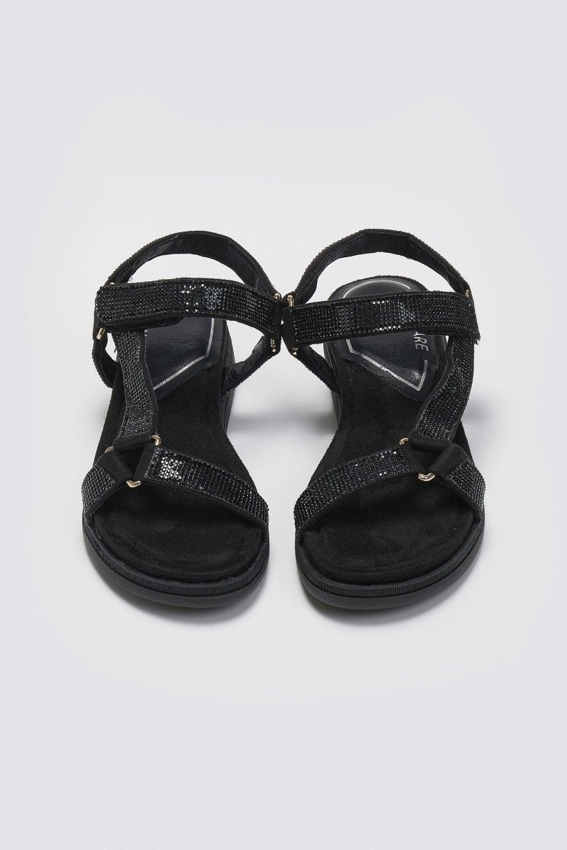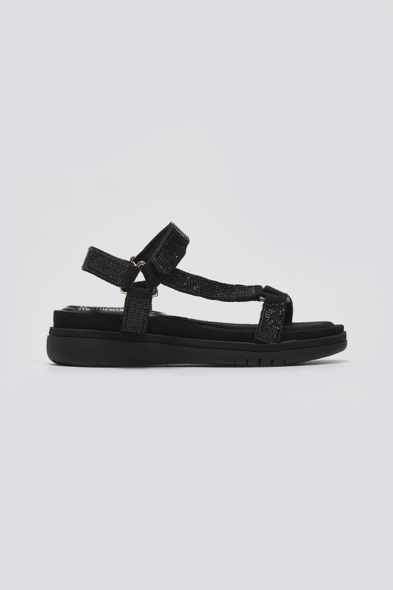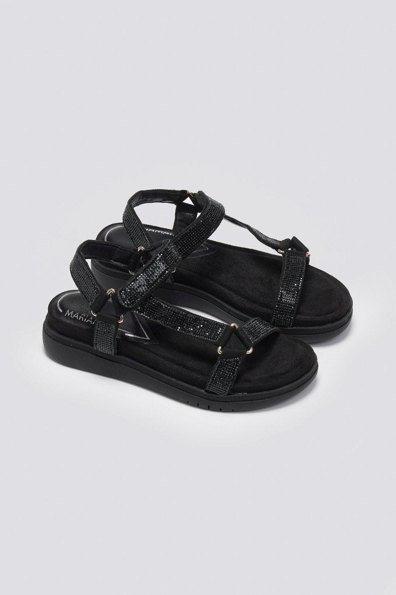 Σανδάλια flatforms με στρας λουράκια MARIAMARE. Κλείσιμο με velcro λουράκι στο ύψος του κουτεπιέ. Μαλακός πάτος με ενίσχυση.