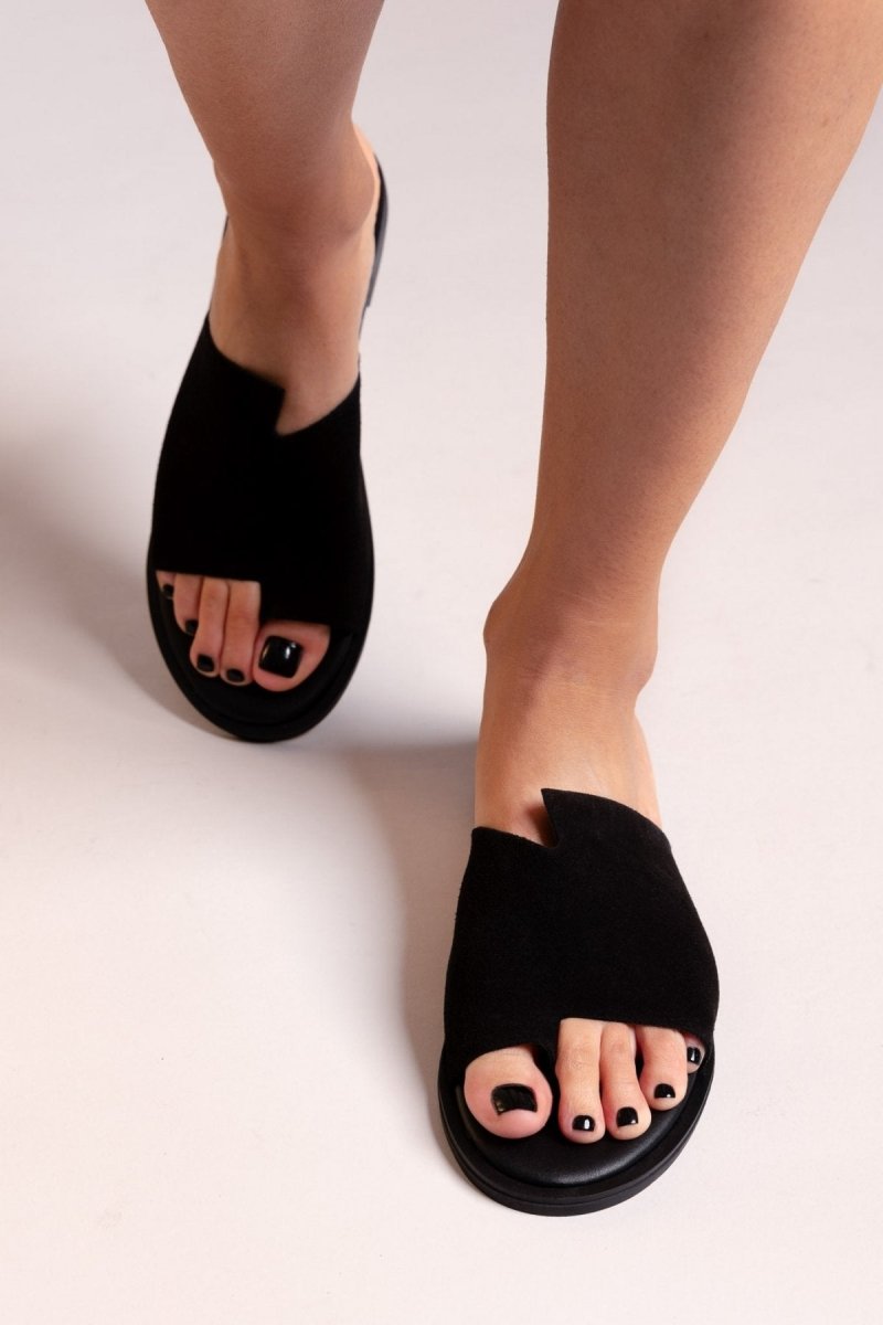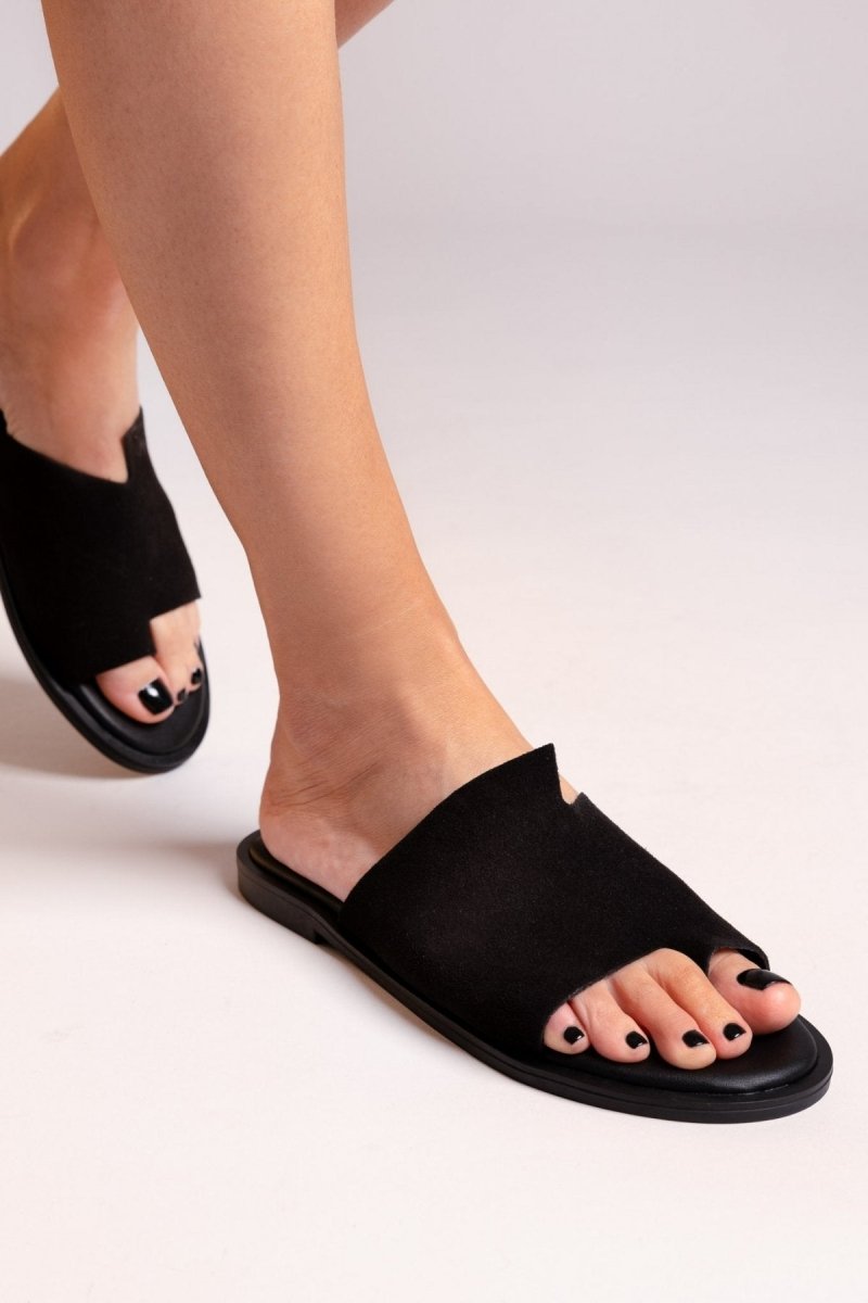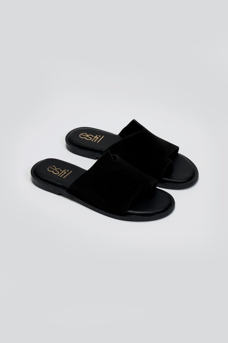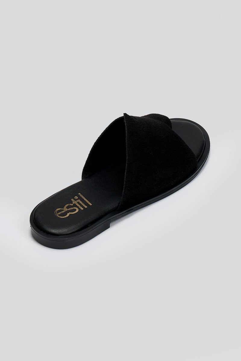 Σανδάλια καστόρινα με ασύμμετρη φάσα Estil - Μαύρο