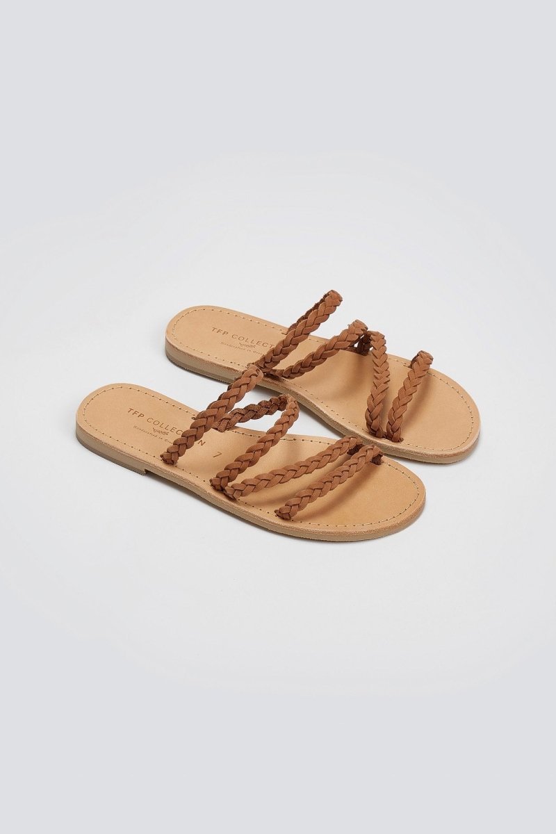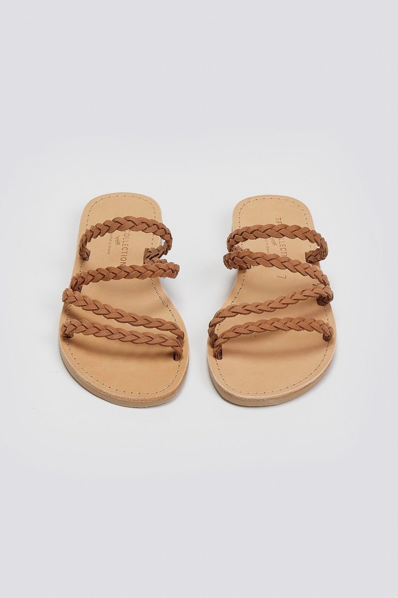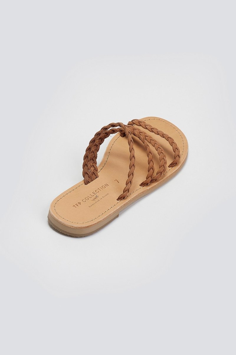 Σανδάλια από γνήσιο δέρμα καστόρι Tfp. Λεπτά λουράκια με σχέδιο κοτσιδάκια. Χειροποίητα, ελληνικής κατασκευής.