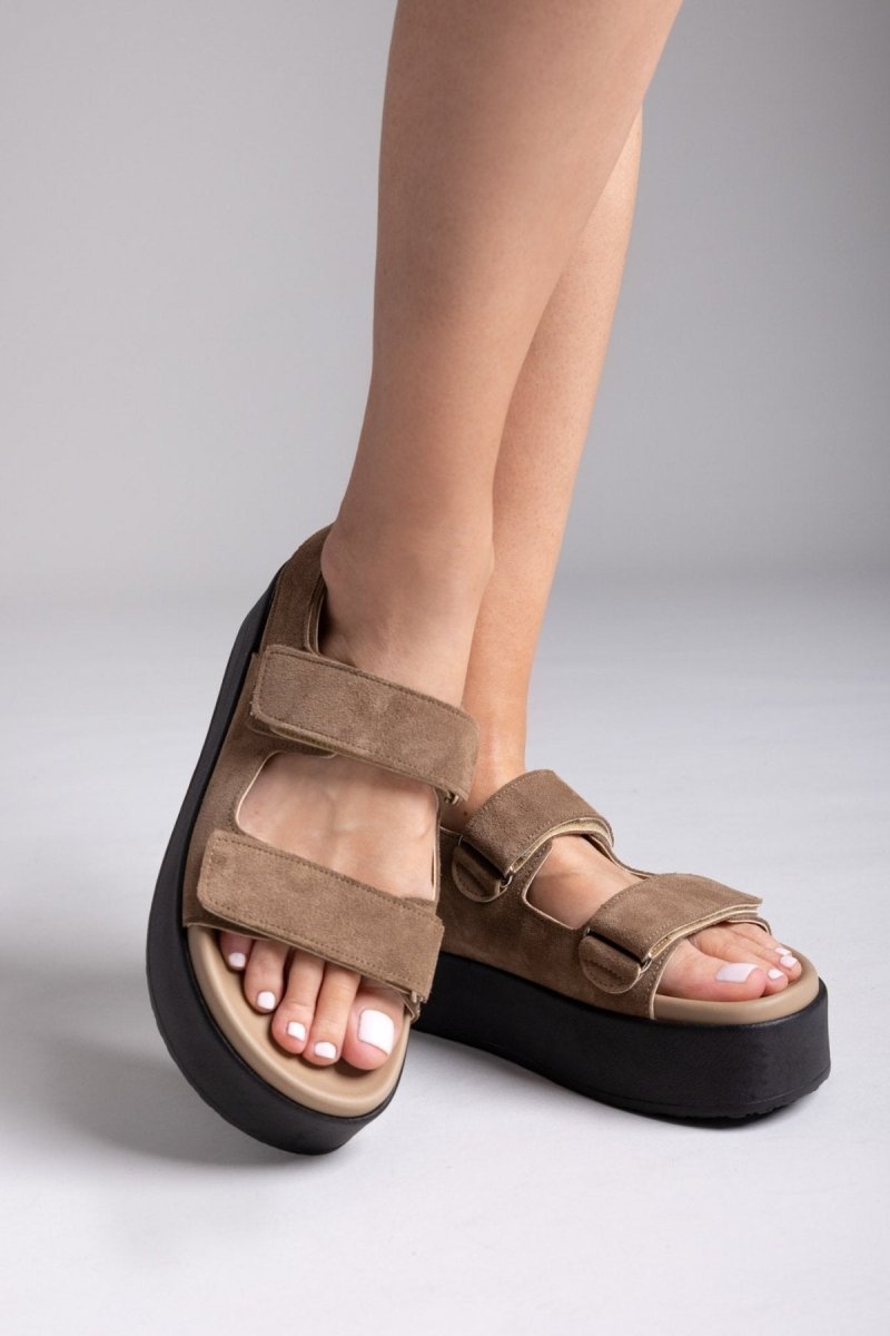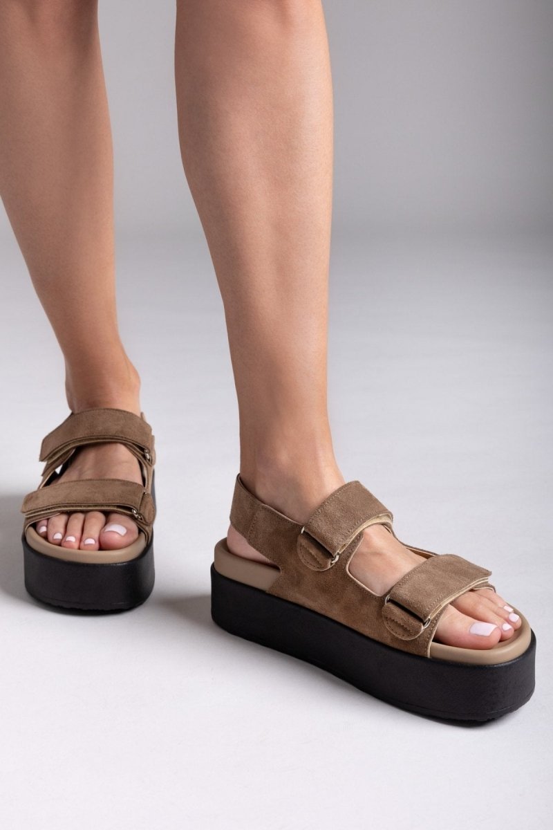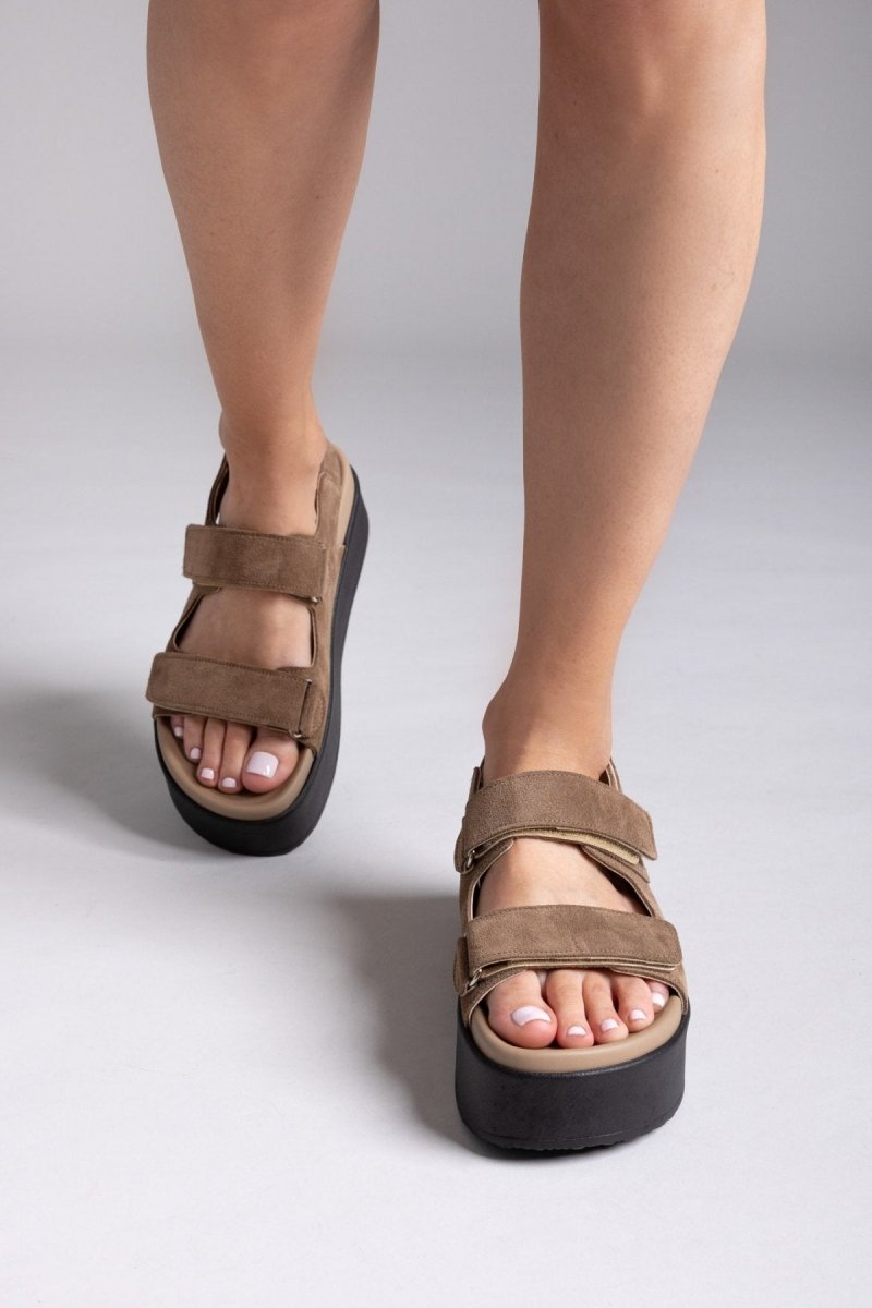 Σανδάλια καστόρινα με velcro ATENEO - Τάουπε