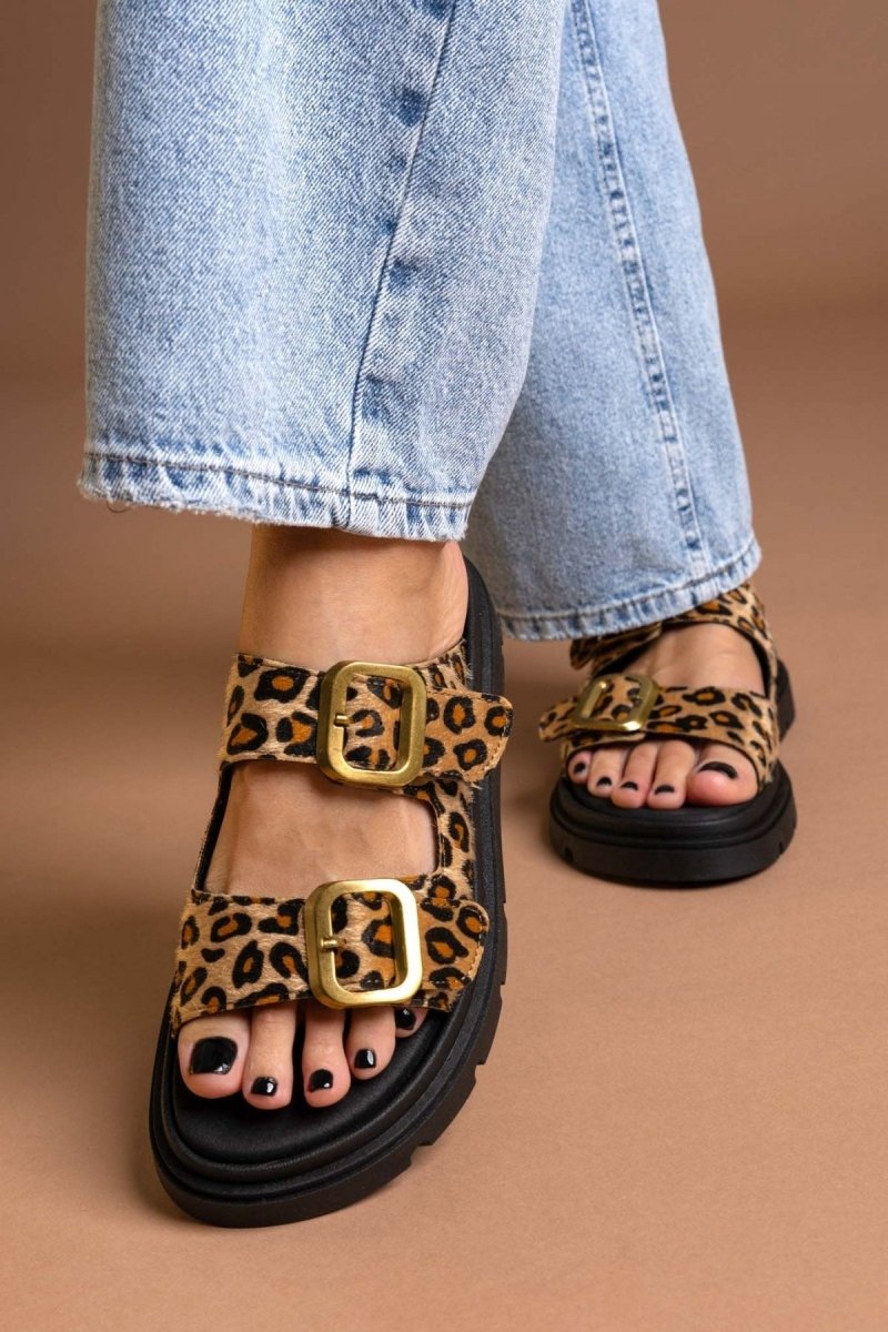 Σανδάλια ponyskin με print Ragazza 01020 - Leopard