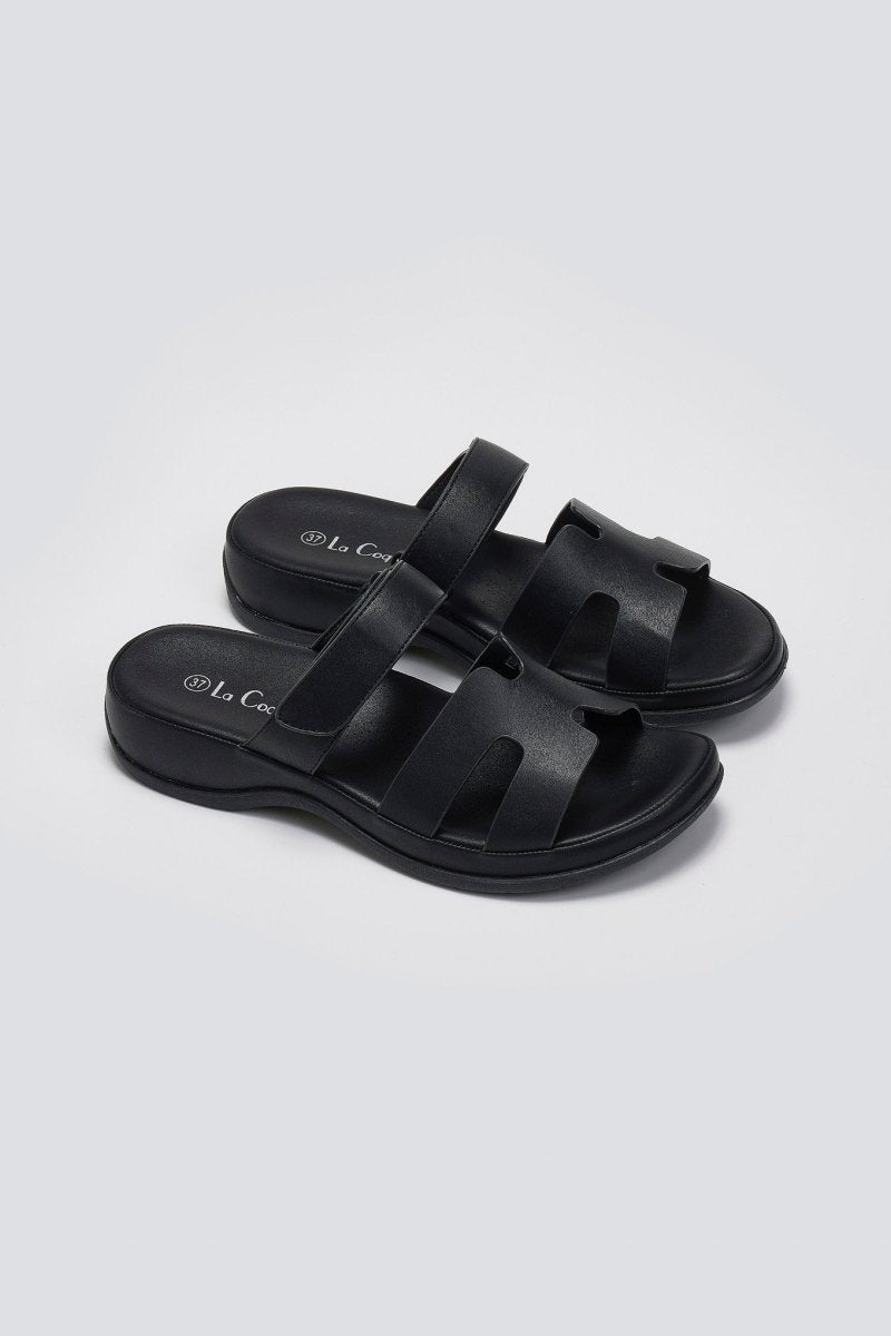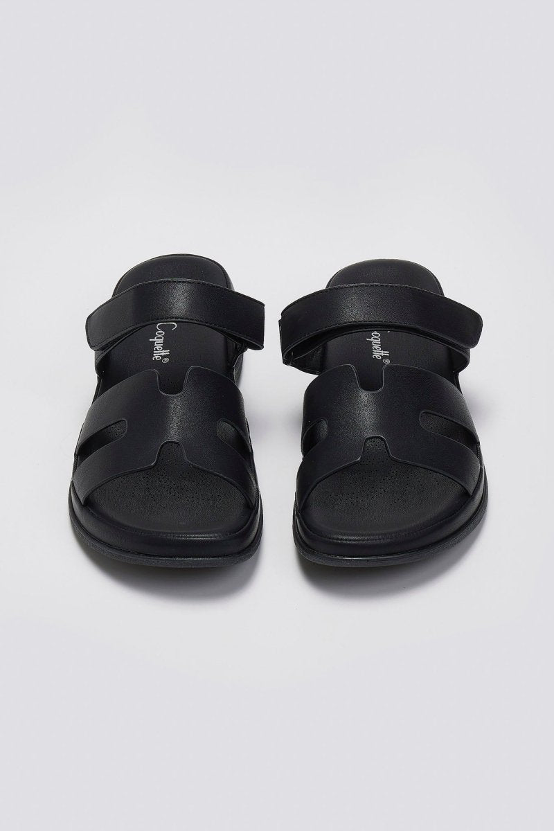 Σανδάλια με sporty σόλα και velcro - Μαύρο