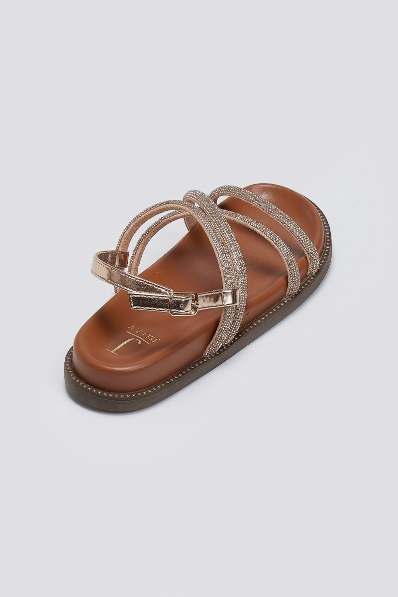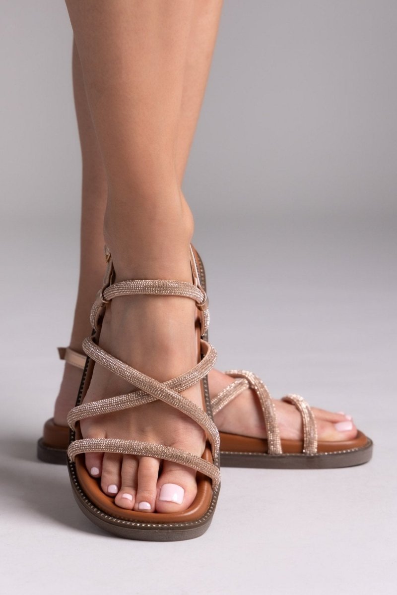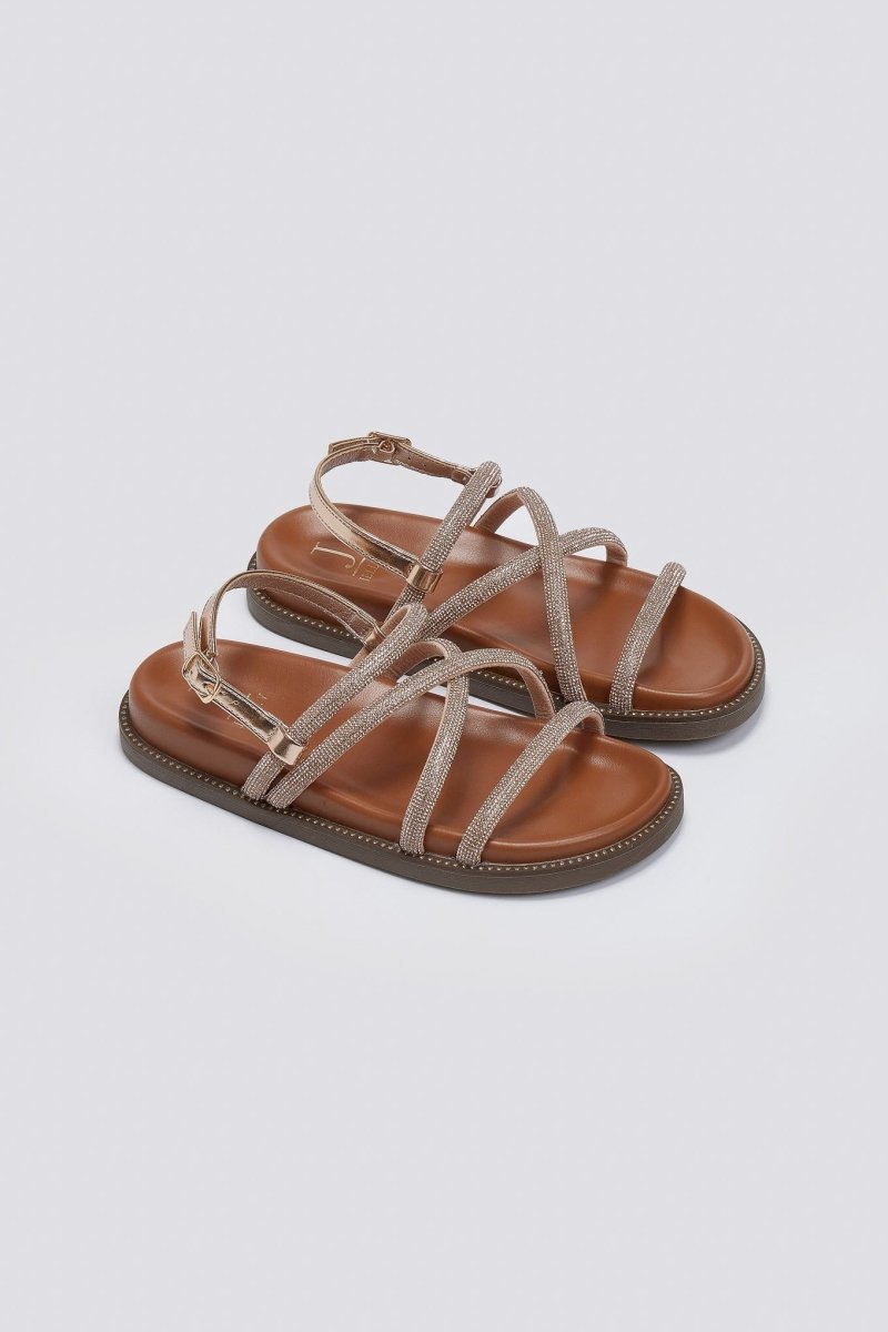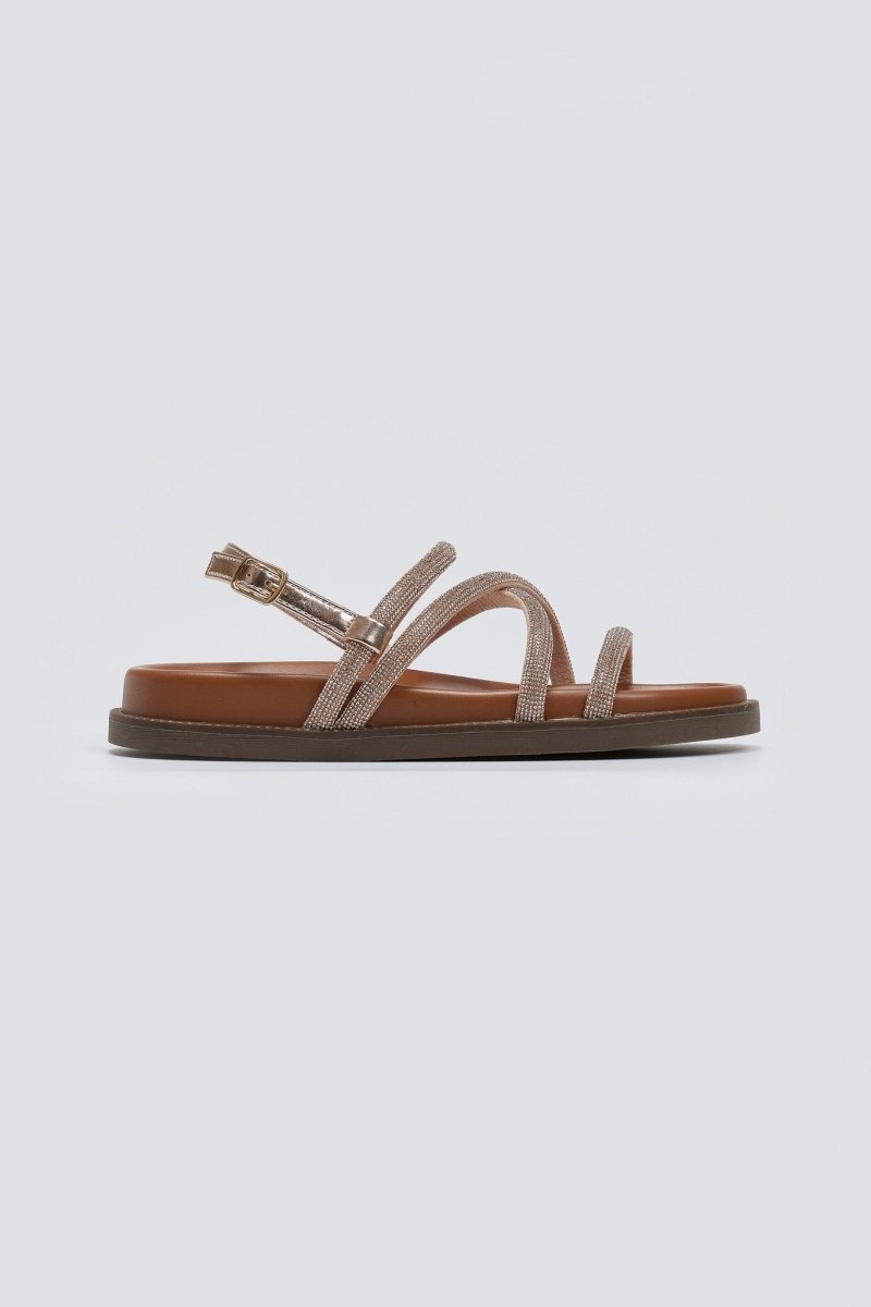 Σανδάλια με στρας λουράκια. Ανατομικό σχήμα στον πάτο. Διακριτικό γκλίτερ στο περίγραμμα της σόλας.