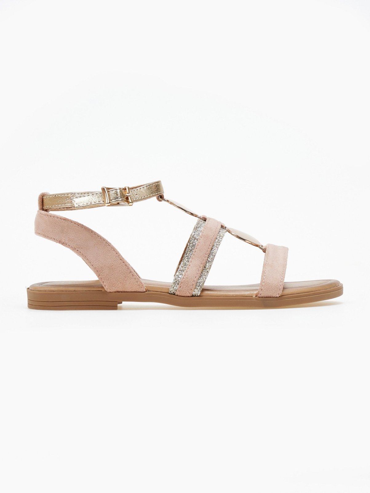 Σανδάλια σουέντ με μεταλλικά στοιχεία και glitter ERYNN - Ροζ