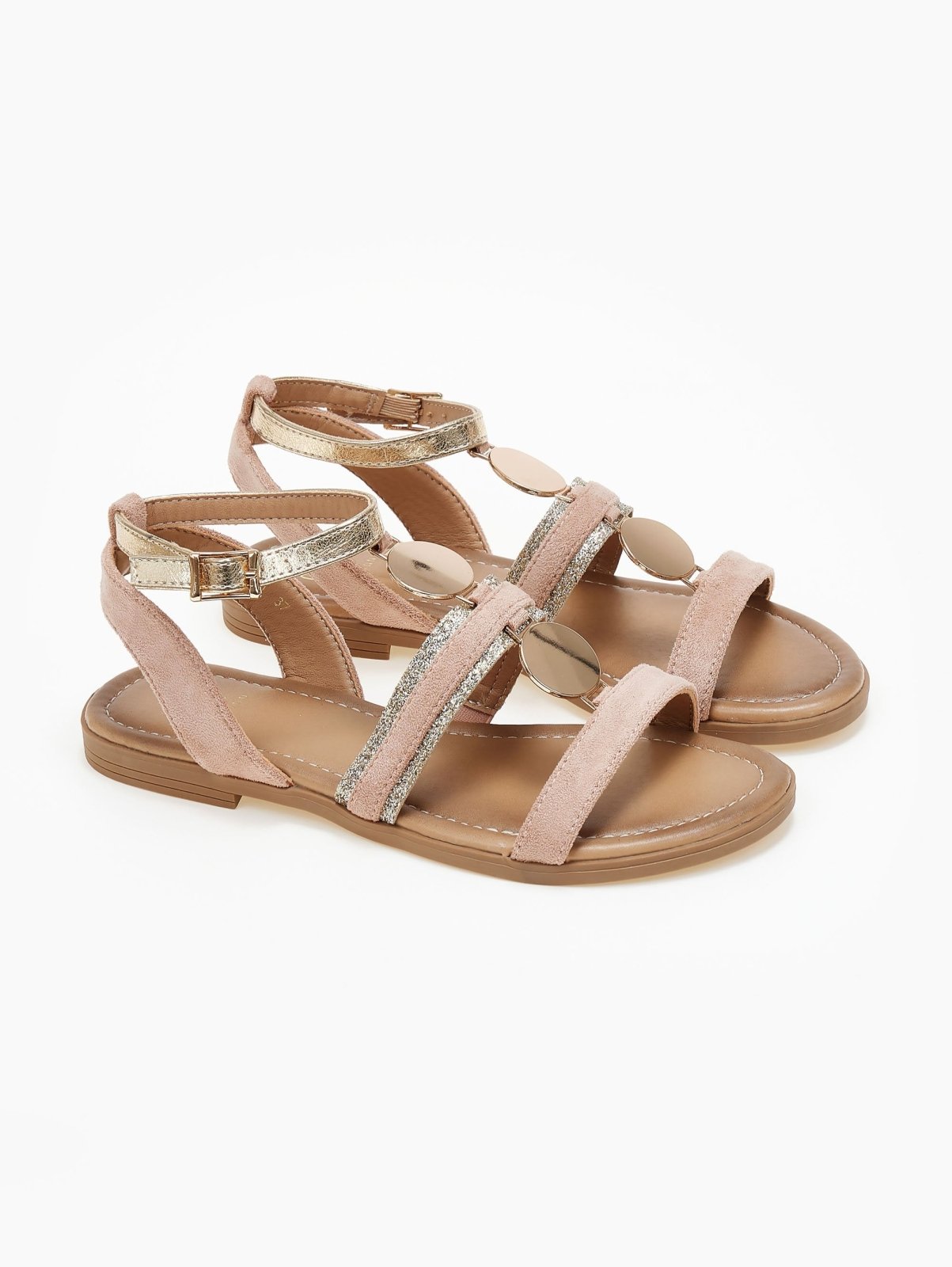 Σανδάλια suede με μεταλλικούς κύκλους ERYNN. λουράκια με glitter λεπτομέρεια. Μαλακή σόλα με λάστιχο.