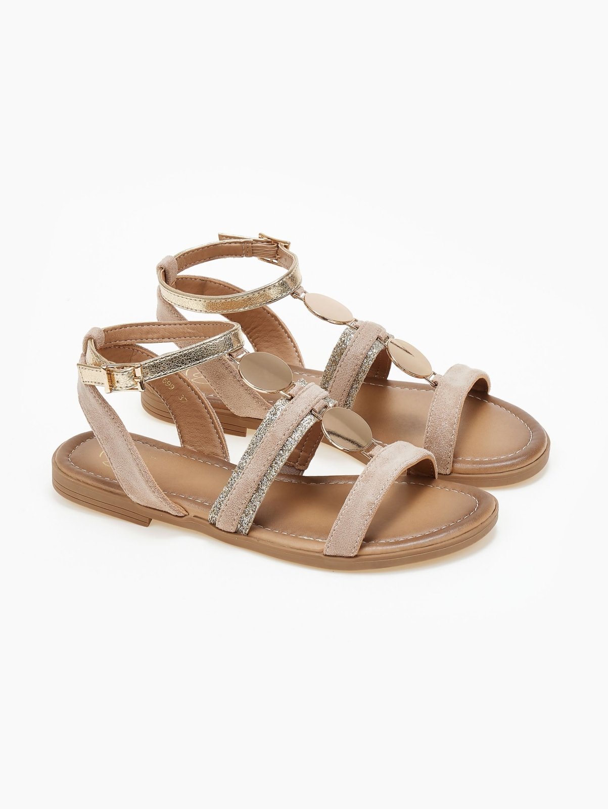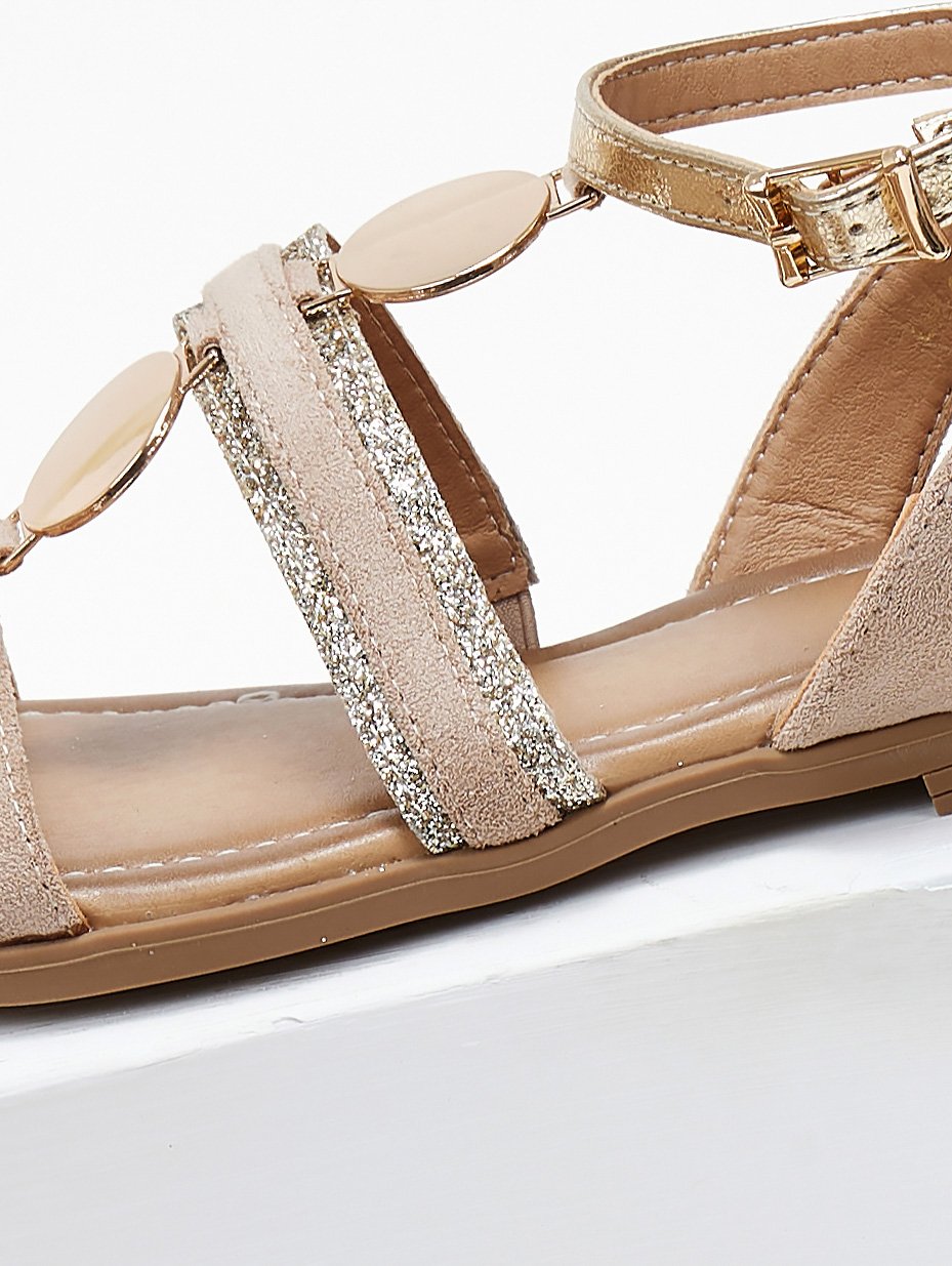 Σανδάλια suede με μεταλλικούς κύκλους ERYNN. λουράκια με glitter λεπτομέρεια. Μαλακή σόλα με λάστιχο.