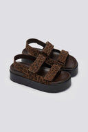 Σανδάλια από γνήσιο δέρμα καστόρι με animal print ATENEO. Φάσες με velcro αυτοκόλλητα. Κλείνουν στο πλάι. Ελληνικής κατασκευής.