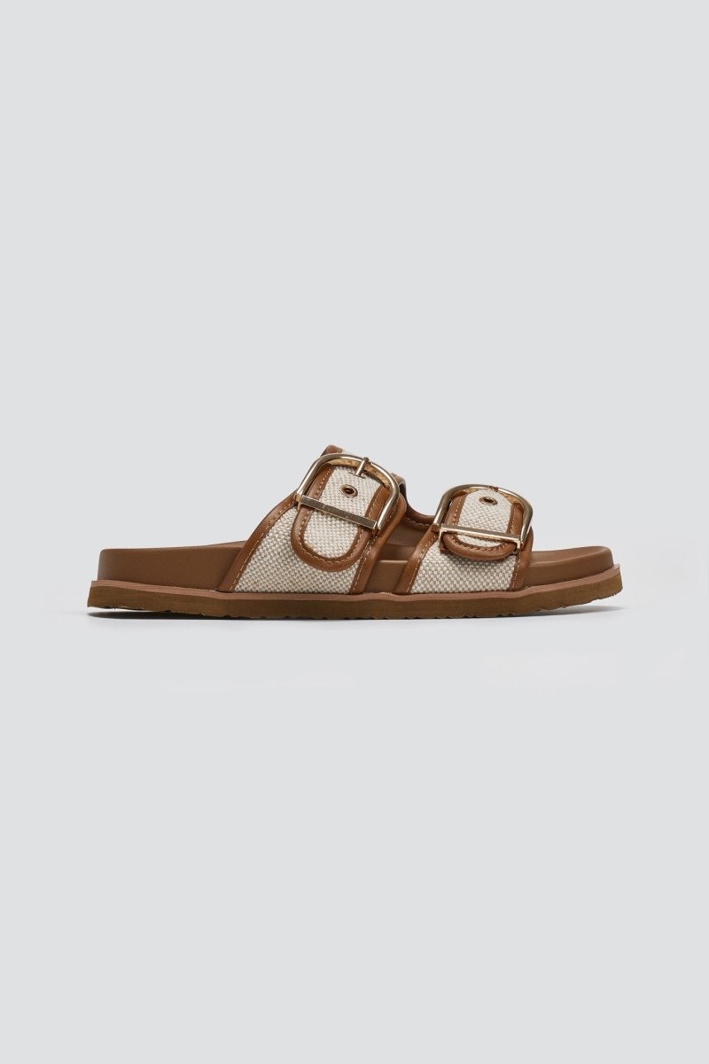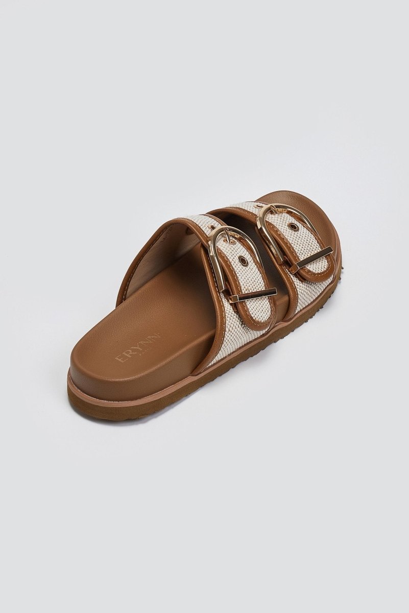 Σανδάλια με υφασμάτινες φάσες και τοκά ERYNN - Κάμελ