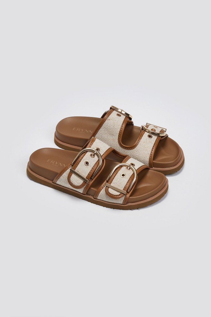 Σανδάλια με φαρδιές υφασμάτινες φάσες ERYNN. Προσαρμόζονται με τοκάδες. Comfort ανατομικός πάτος.