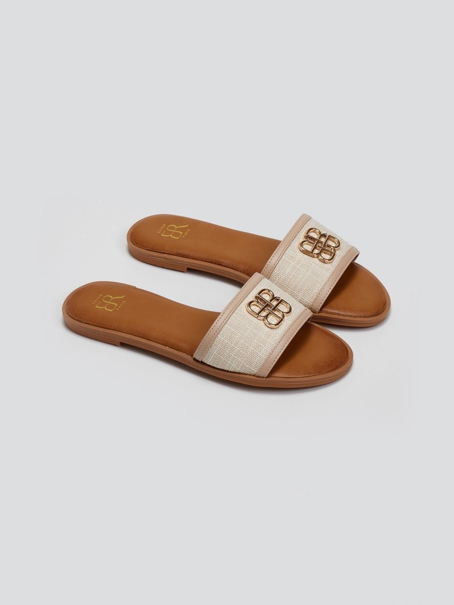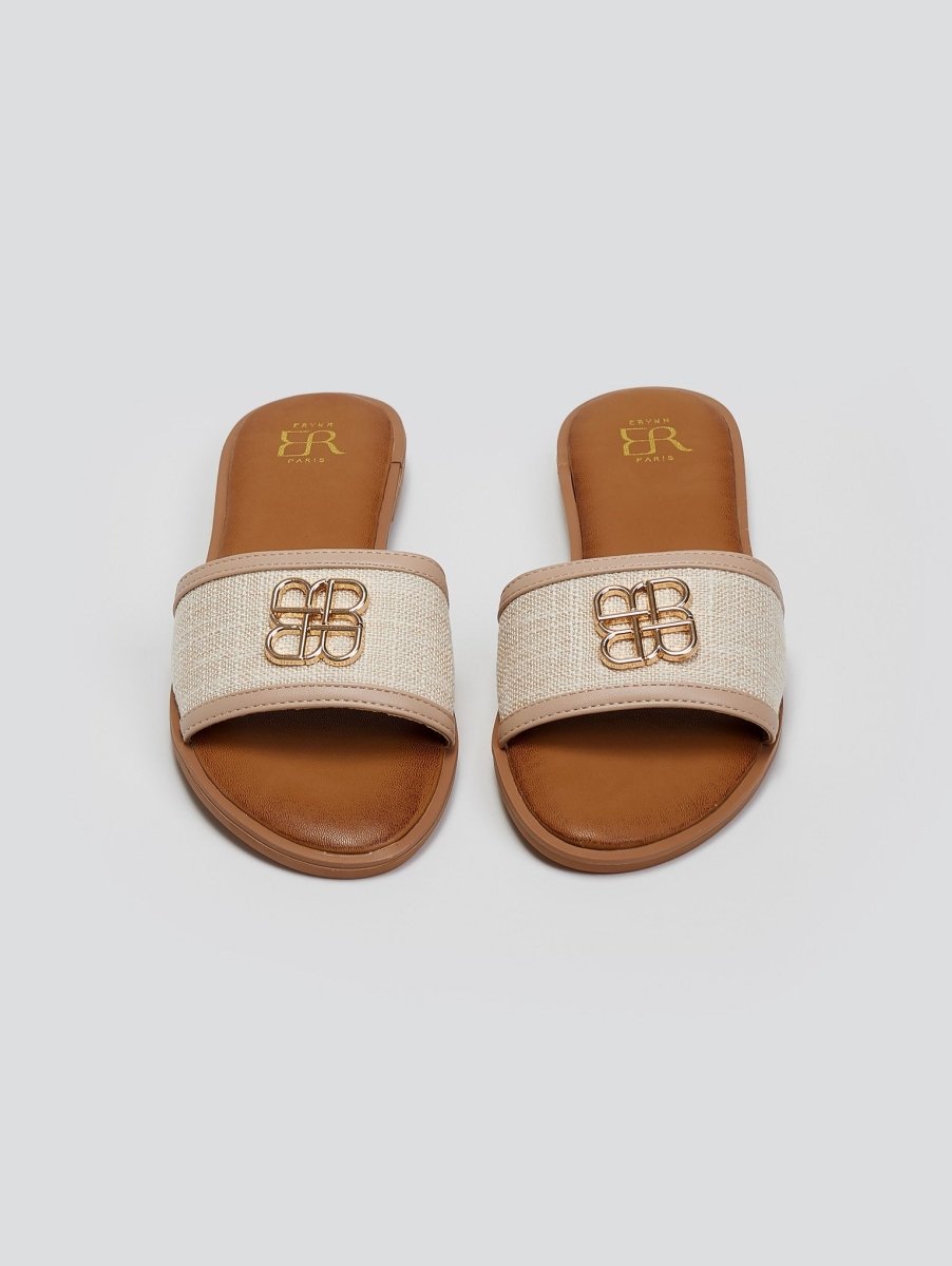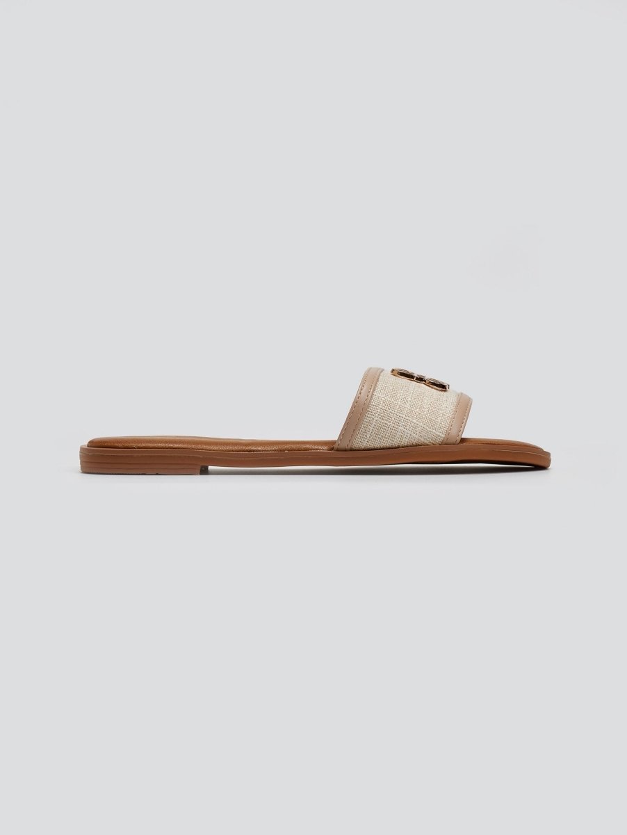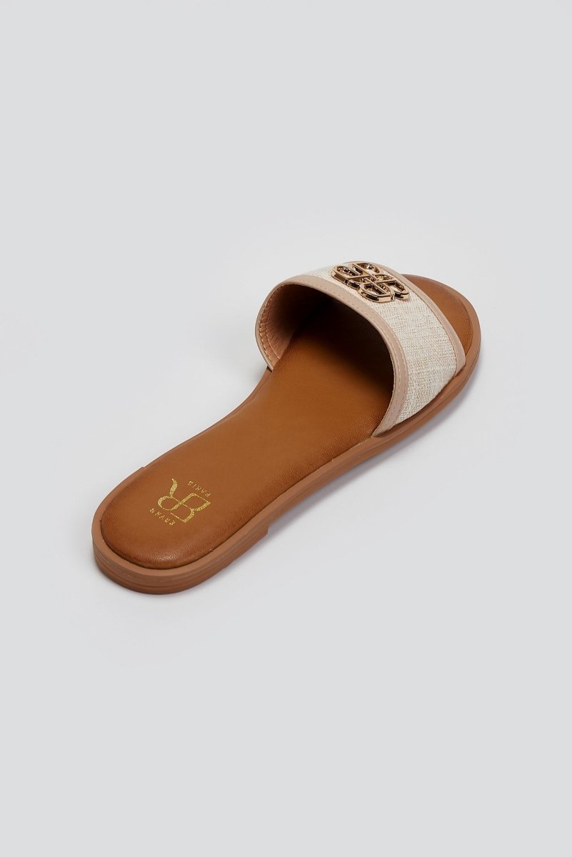 Σανδάλια με υφασμάτινη φάσα και διχρωμία στο σισίτι ERYNN. Μεταλλικό διακοσμητικό στο επάνω μέρος. Πάτος με ενίσχυση. Μαλακή σόλα από λάστιχο.