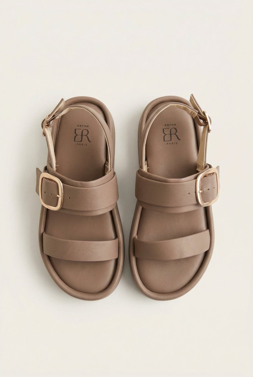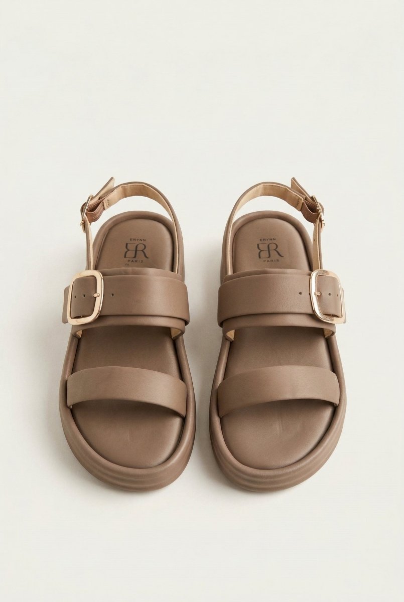 The ERYNN Satin Flatform Sandals in Mocha Satin combine sophisticated elegance with contemporary comfort. Featuring luxurious satin uppers, wide supportive straps, and a striking metallic buckle detail, these flatform sandals are designed to elevate your summer wardrobe. The adjustable side fastening provides a customizable, secure fit for all-day wear.