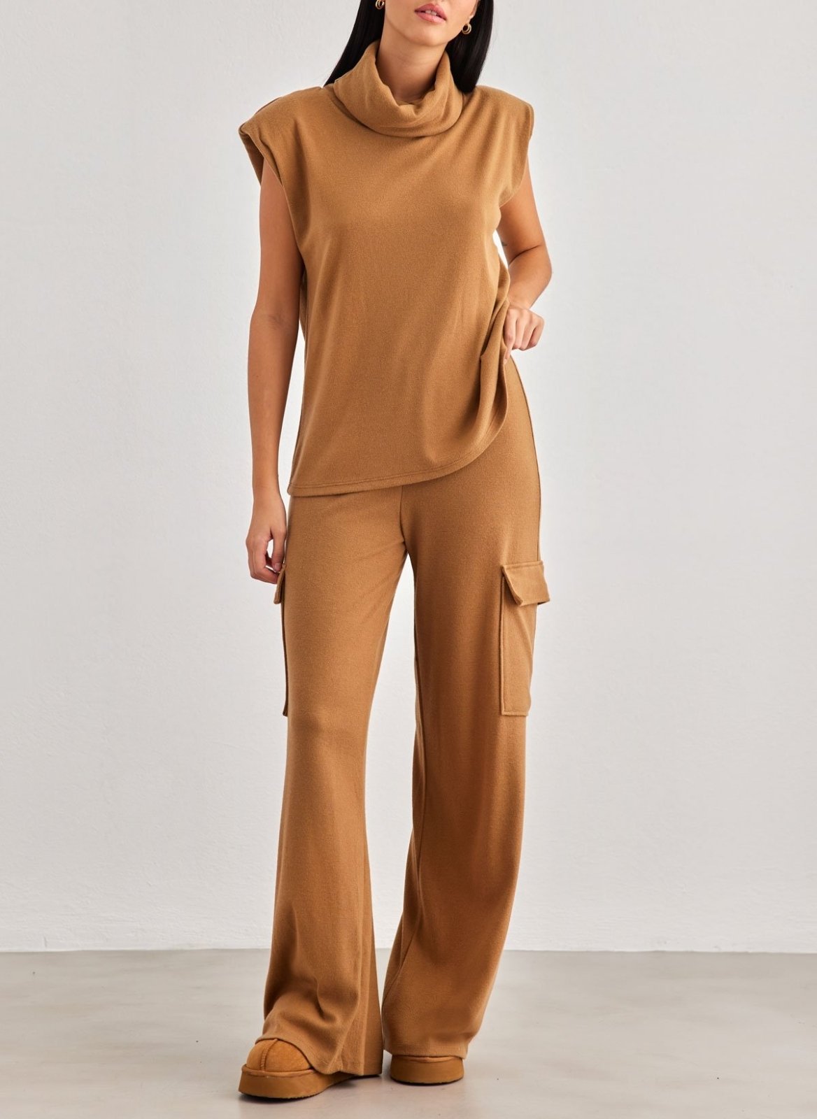 Σετ παντελόνι cargo με αμάνικο ζιβάγκο - Κάμελ