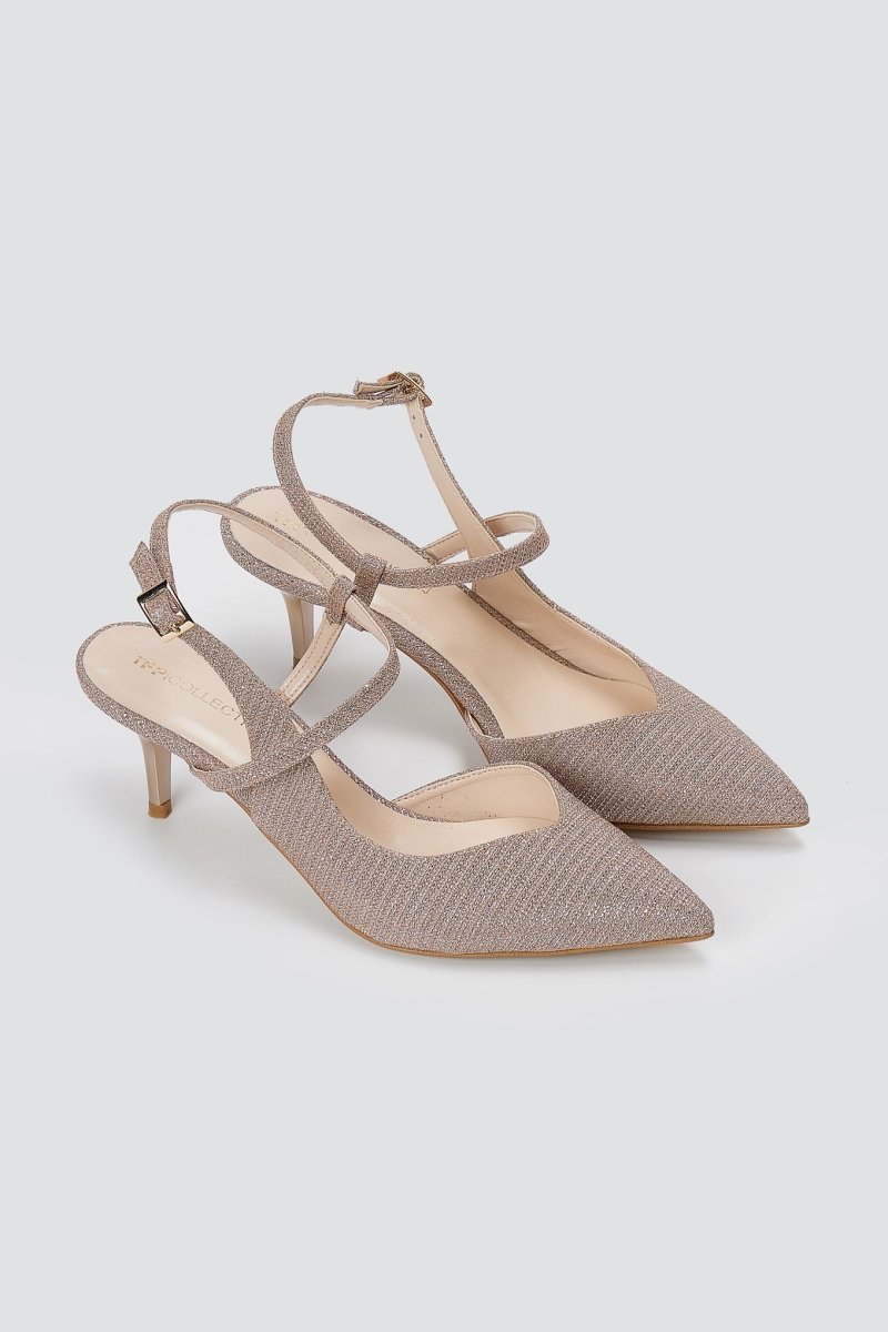 Γόβες με χαμηλό τακούνι και λουράκι στη φτέρνα - Μπεζ Λούρεξ