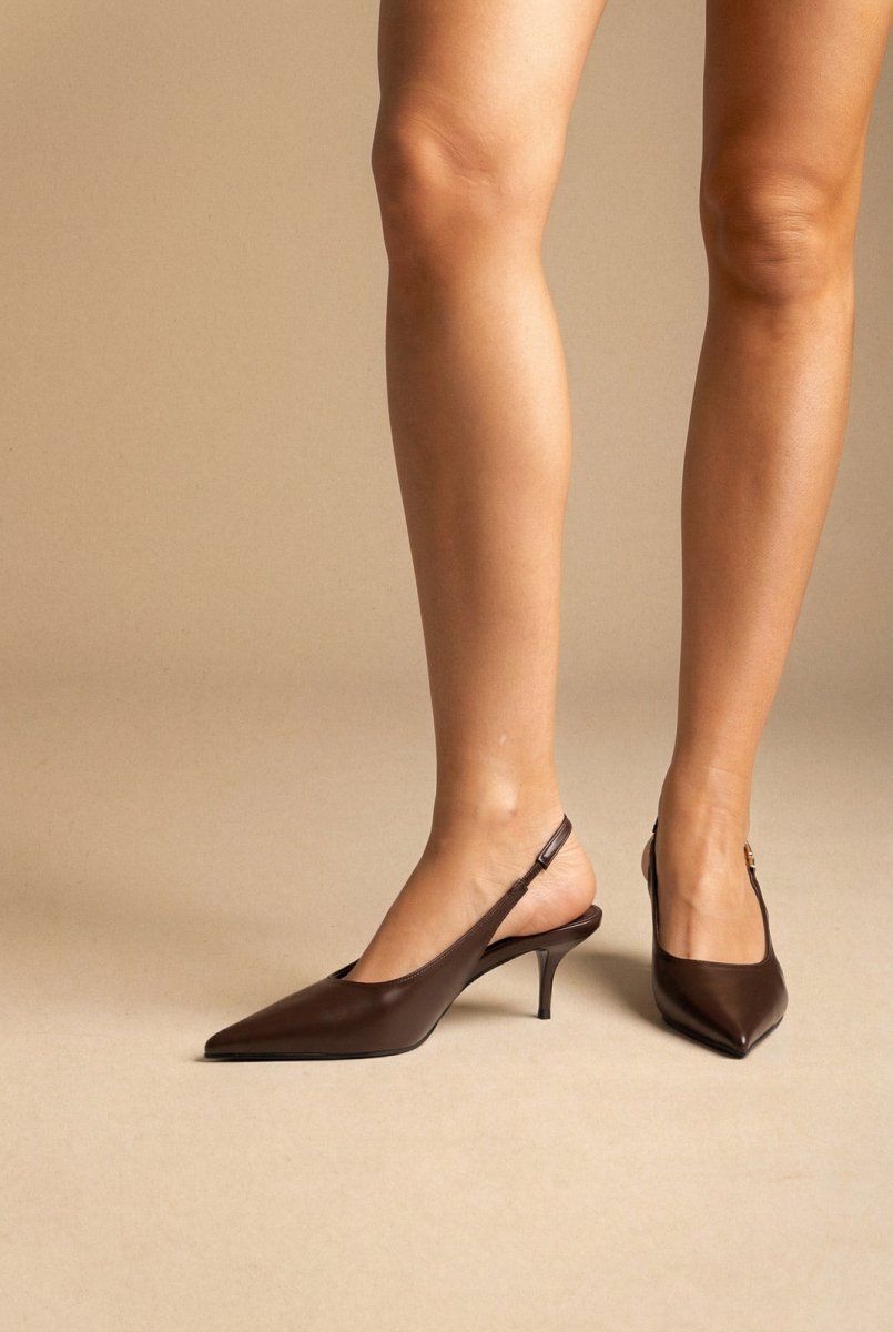 Γόβες Slingback Kitten Heel - Καφέ Ματ