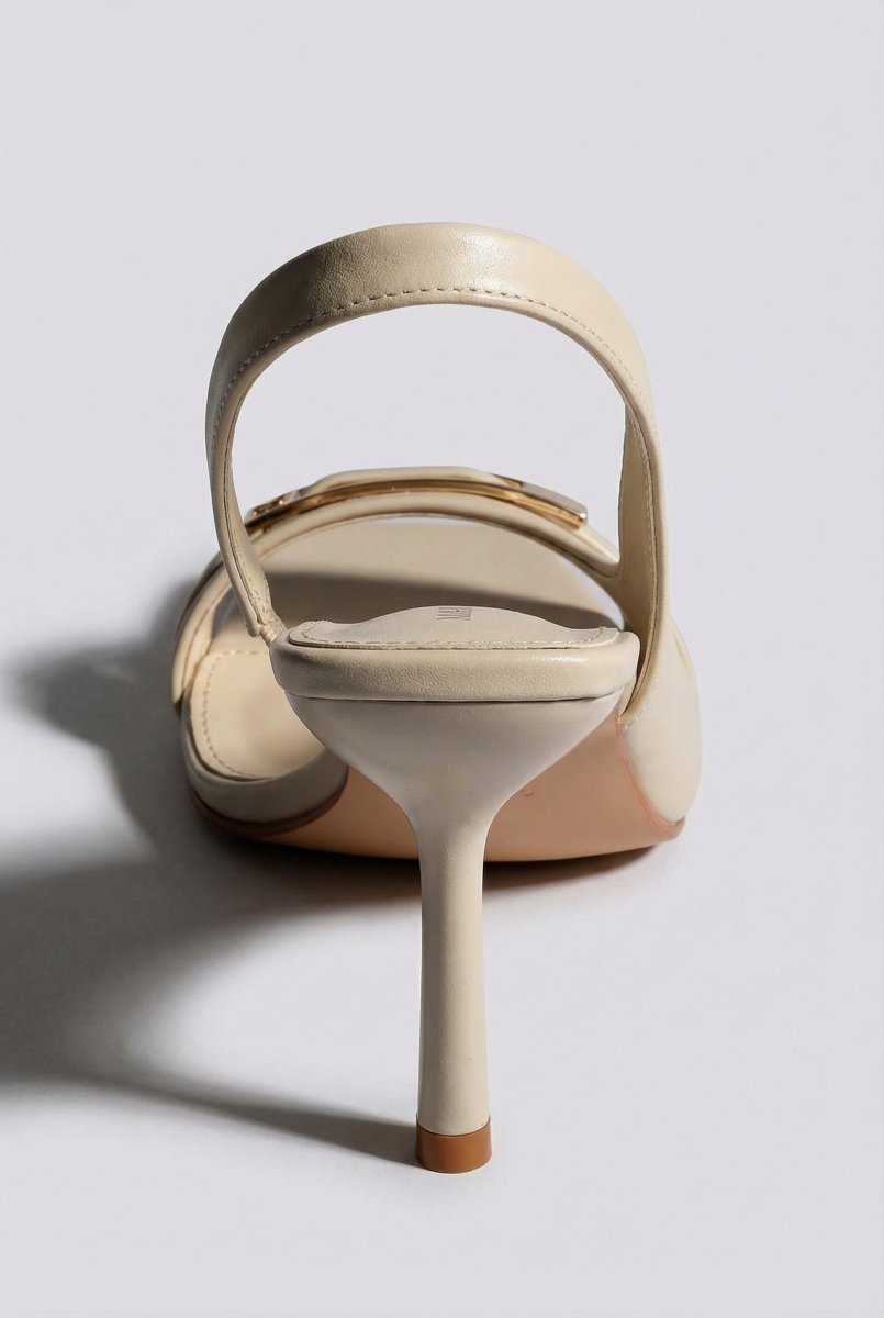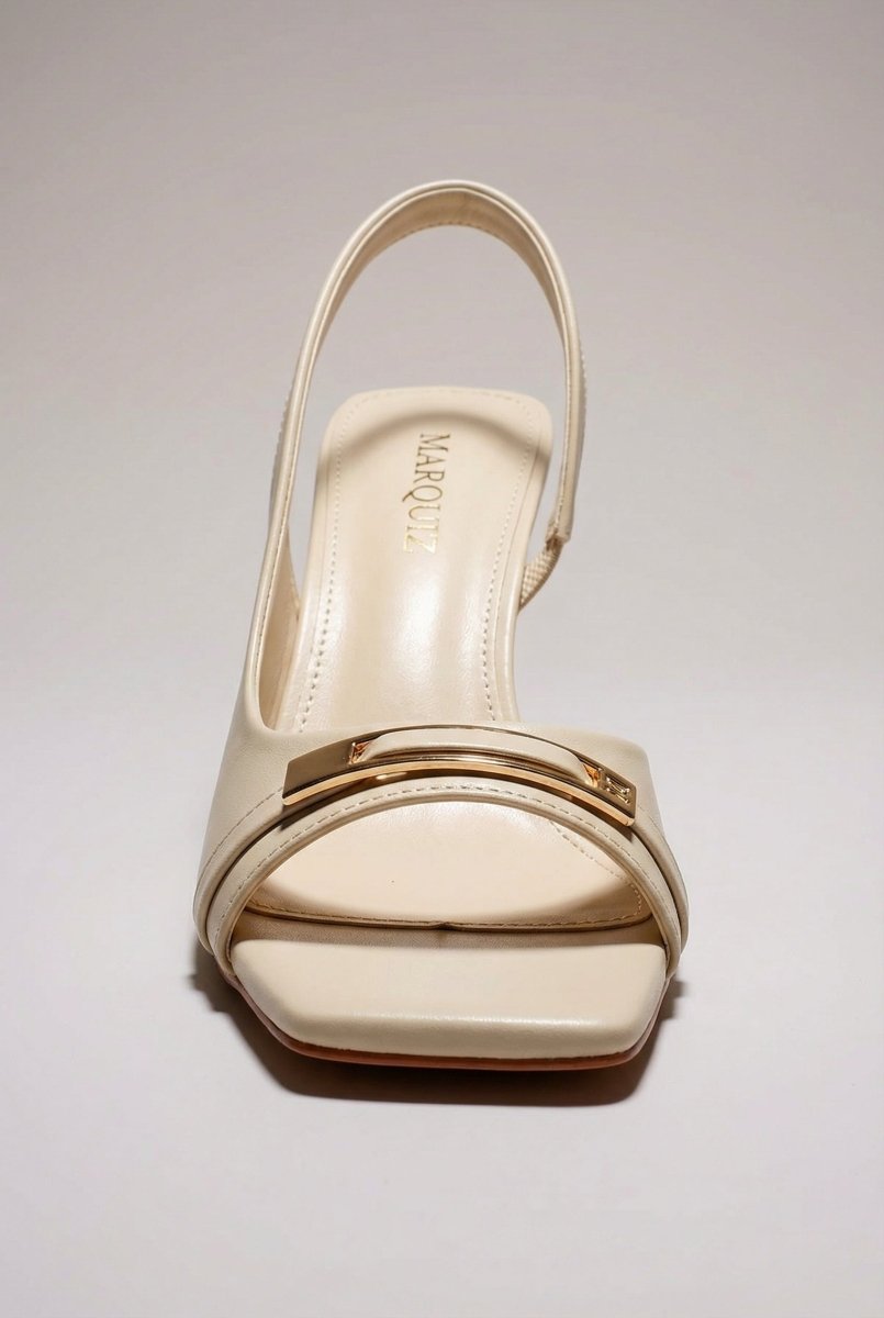 The Ideal Shoes Slingback Stiletto Sandals in Beige Matte deliver sophisticated elegance with modern functionality. Featuring a sleek silhouette and refined stiletto heel, these sandals combine contemporary design with practical comfort features. The metallic detail on the toe band adds a subtle glamorous touch, while the discreet inner elastic ensures a secure, comfortable fit throughout the day.