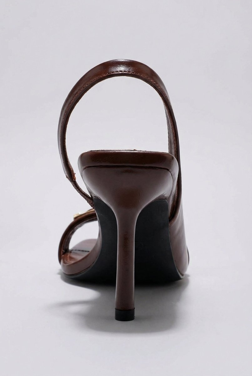 Πέδιλα Slingback με λεπτό τακούνι - Σκούρο Καφέ Ματ