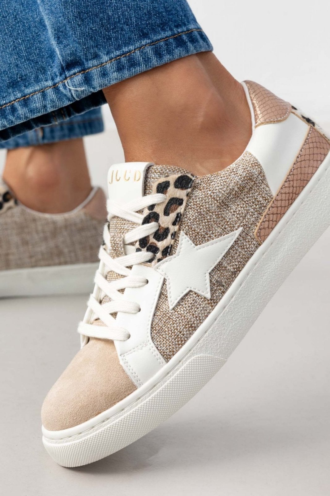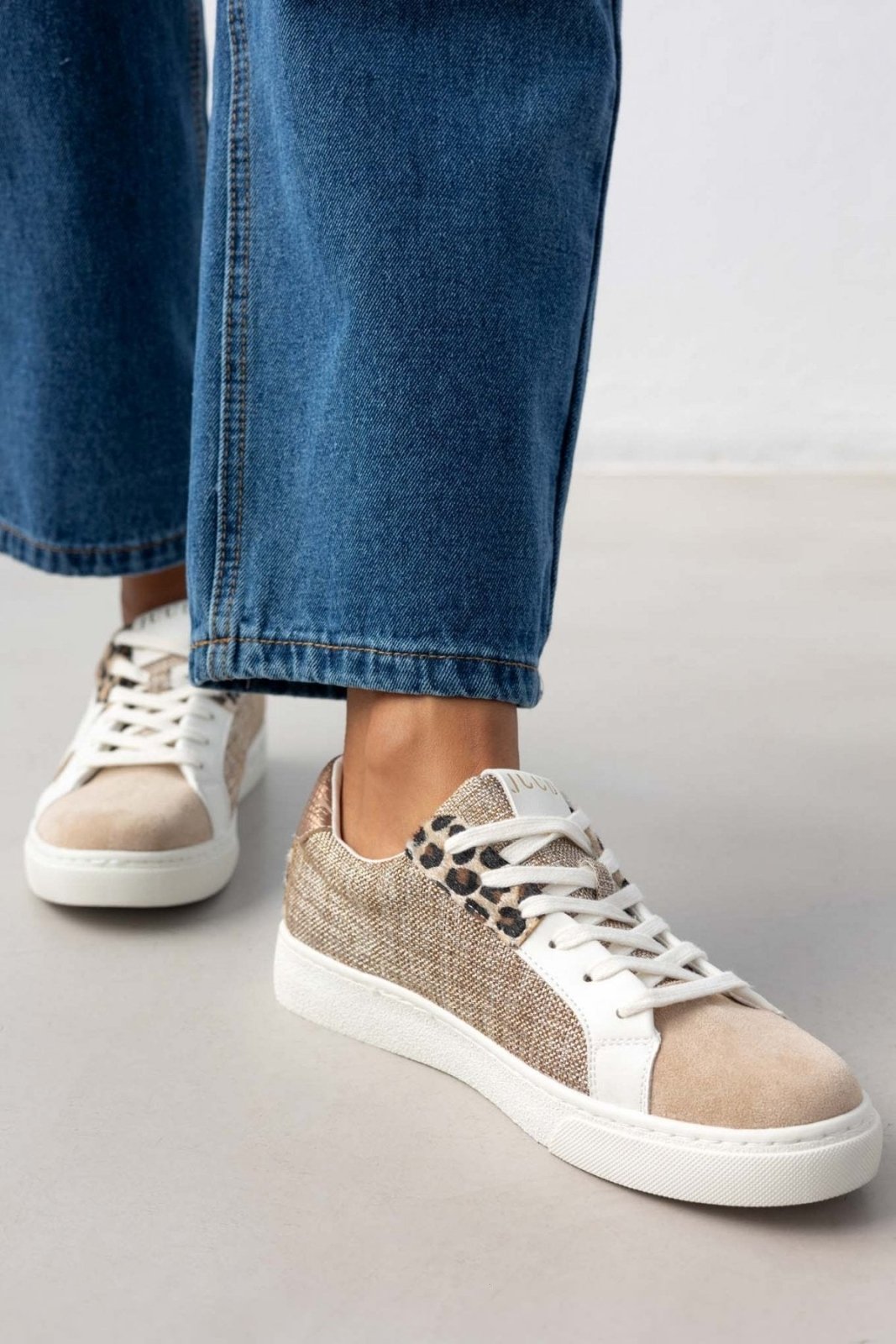 Sneakers με ύφασμα ERYNN. Συνδυασμός υλικών και χρωμάτων. Animal print λεπτομέρεια από συνθετικό ponyskin στο πίσω μέρος.