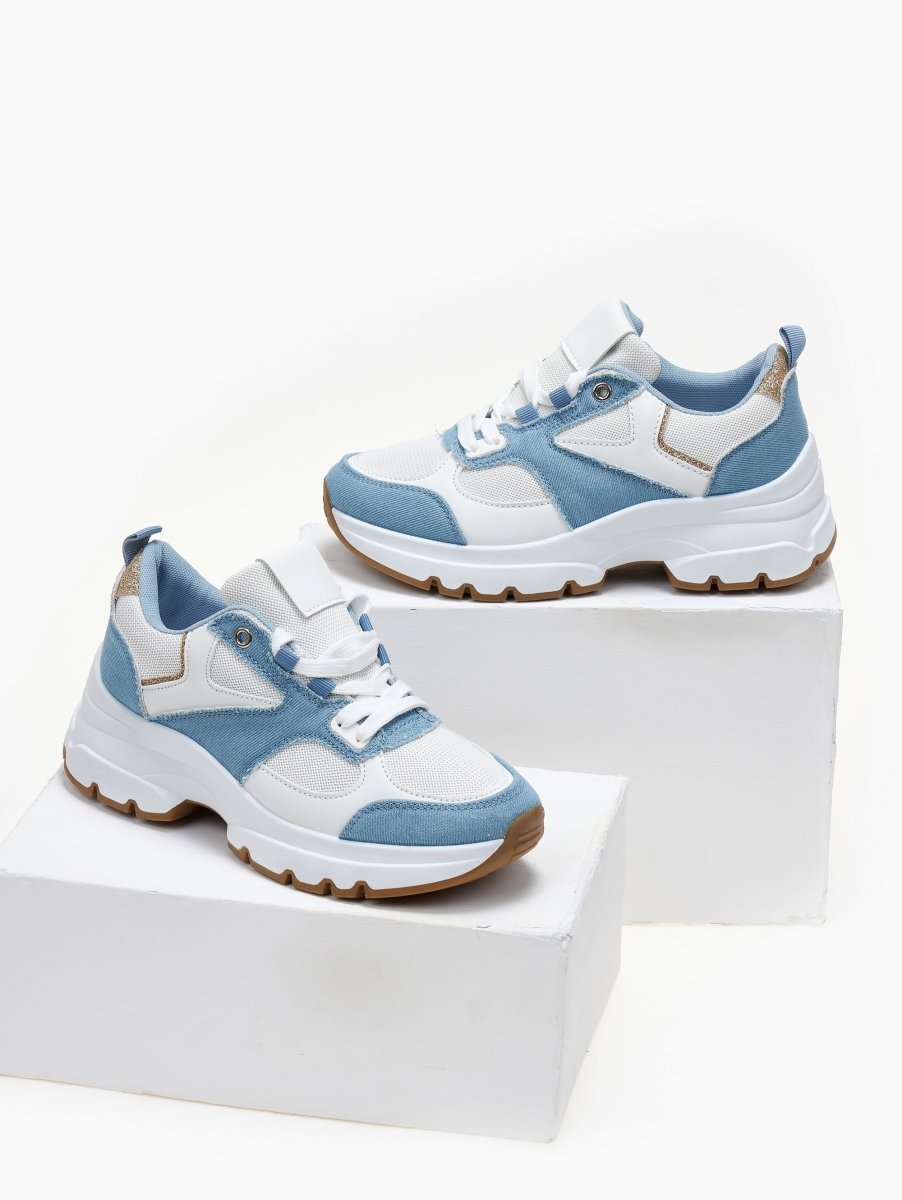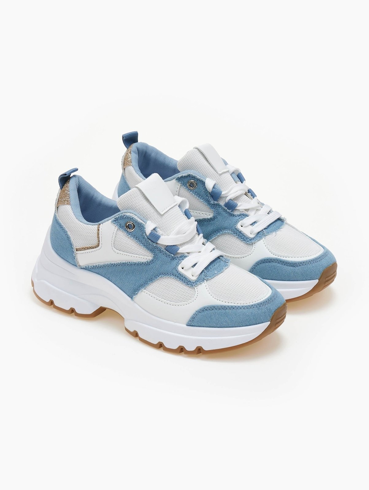 Sneakers chunky με κομμάτια σε συνδυασμούς υλικών ERYNN - Μπλε jean