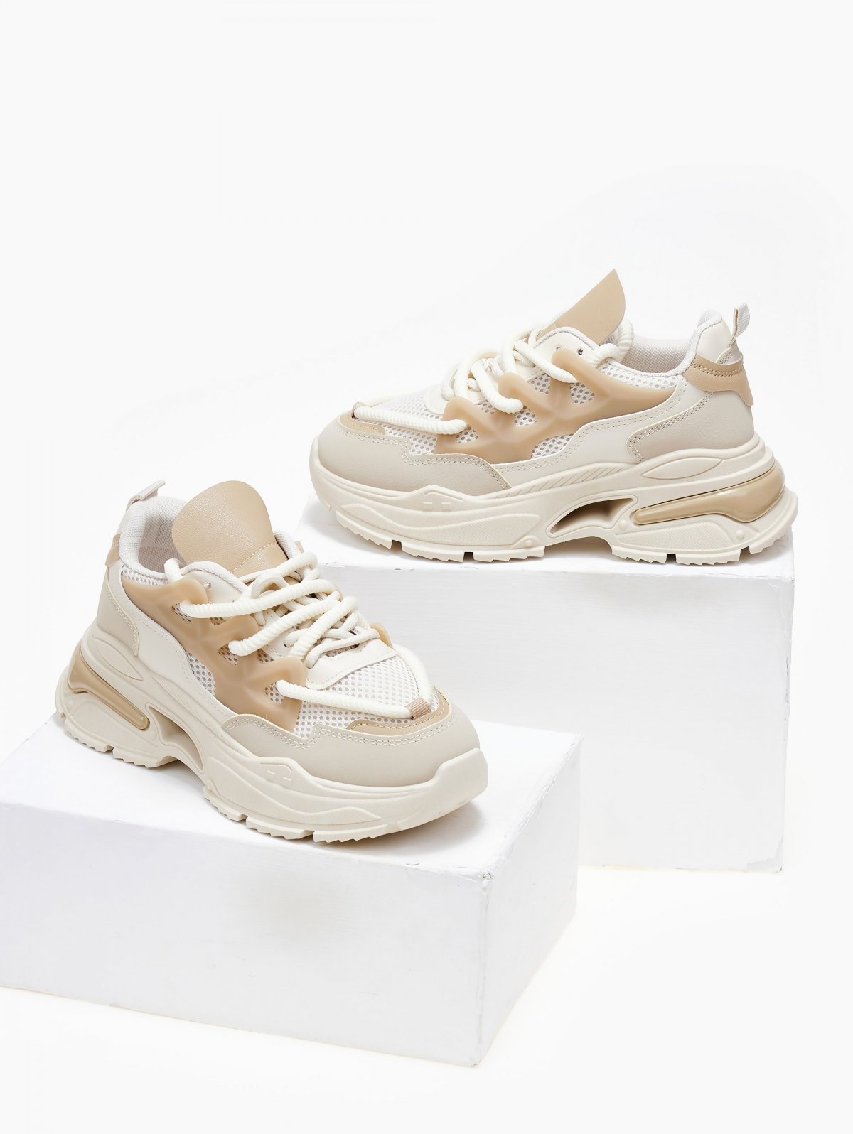 Αναδείξτε τα στυλ σας με τα γυναικεία sneakers με ψηλή chunky σόλα και σχέδιο. Συνδυάζουν ύφασμα και τεχνόδερμα σε mix αποχρώσεις για μια μοντέρνα και κομψή εμφάνιση. Η ψηλή chunky σόλα προσφέρει άνεση και στήριξη σε κάθε βήμα, καθιστώντας τα ιδανικά για καθημερινή χρήση. Διαθέσιμα σε διάφορους χρωματικούς συνδυασμούς για να χρησιμοποιήσετε αυτόν που ταιριάζει καλύτερα στο στυλ σας.