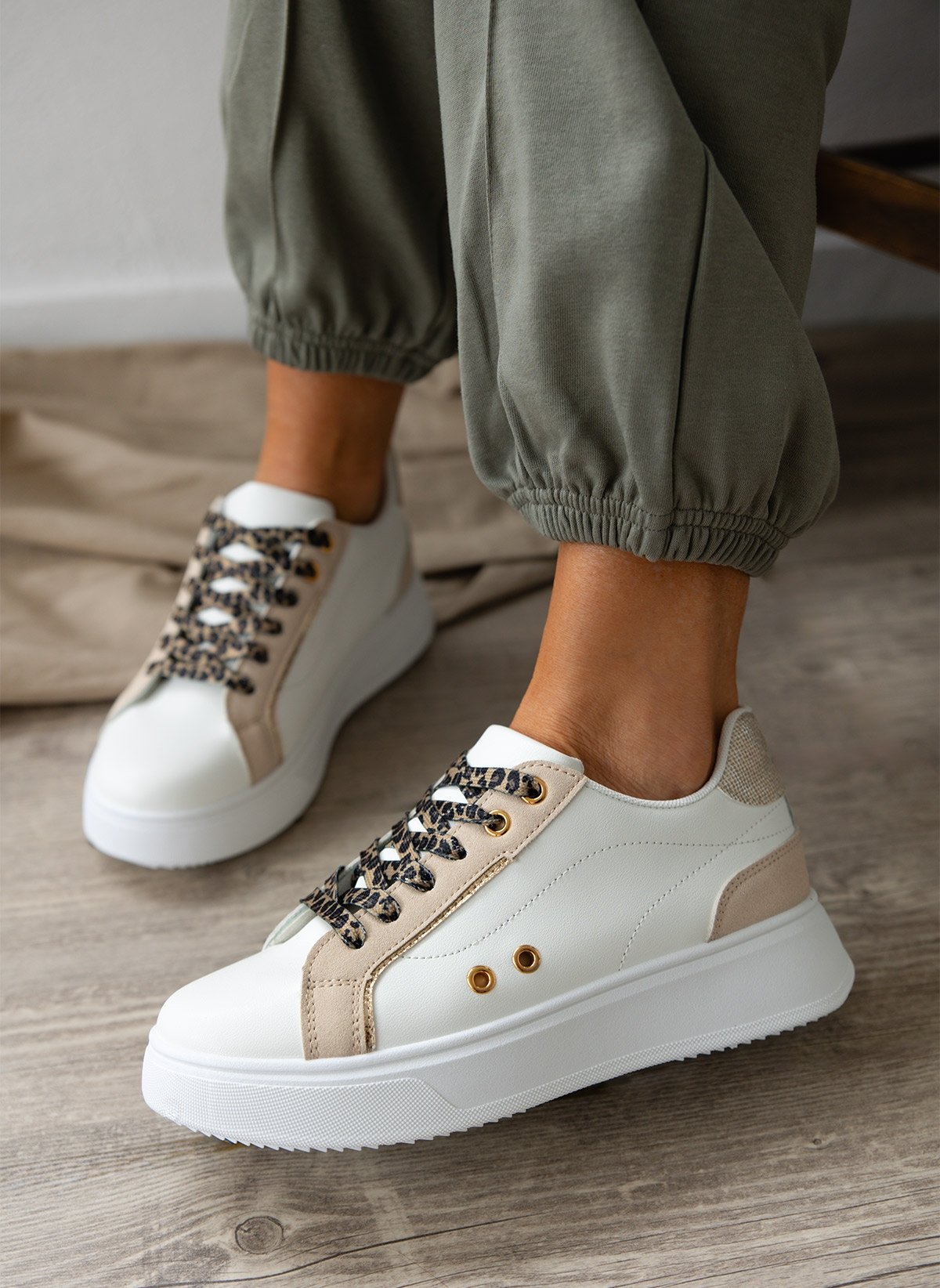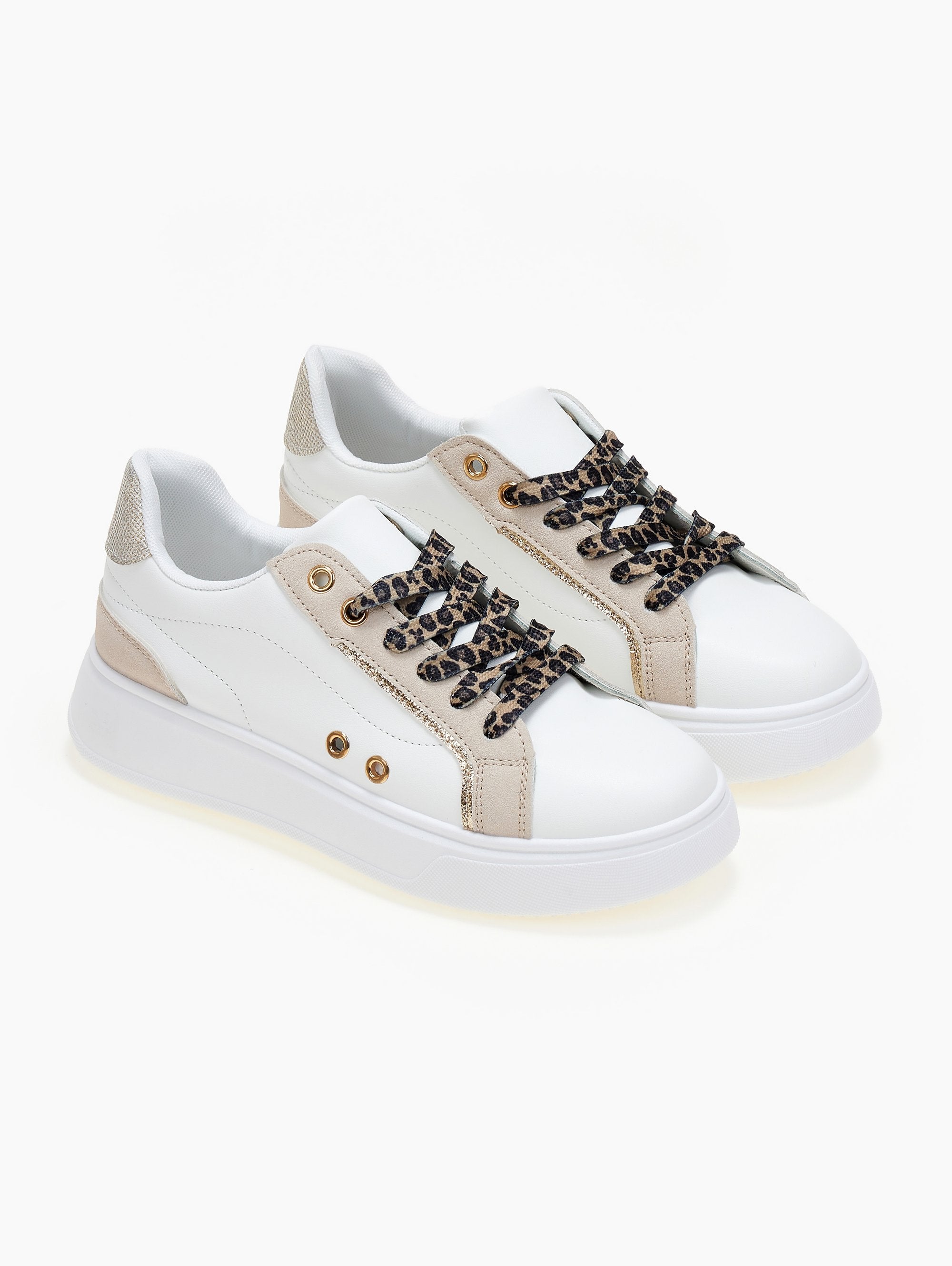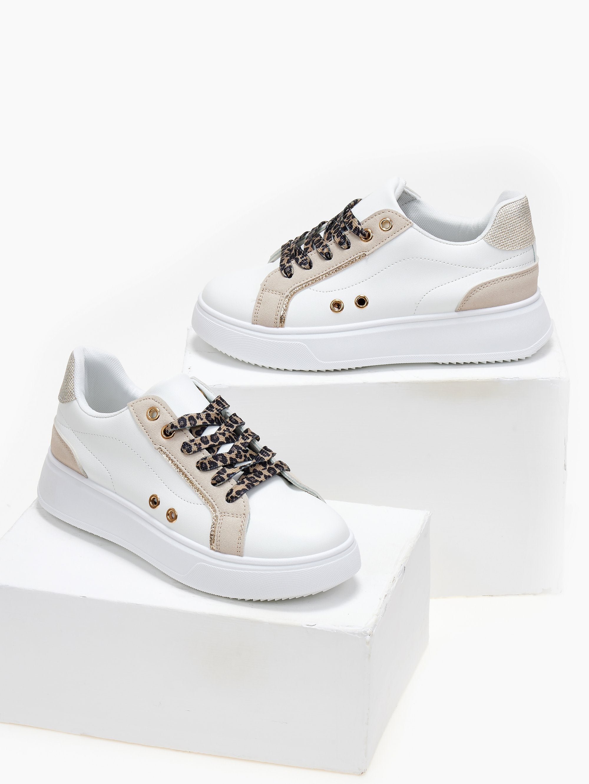 Sneakers flatforms με print στα κορδόνια - Λευκό