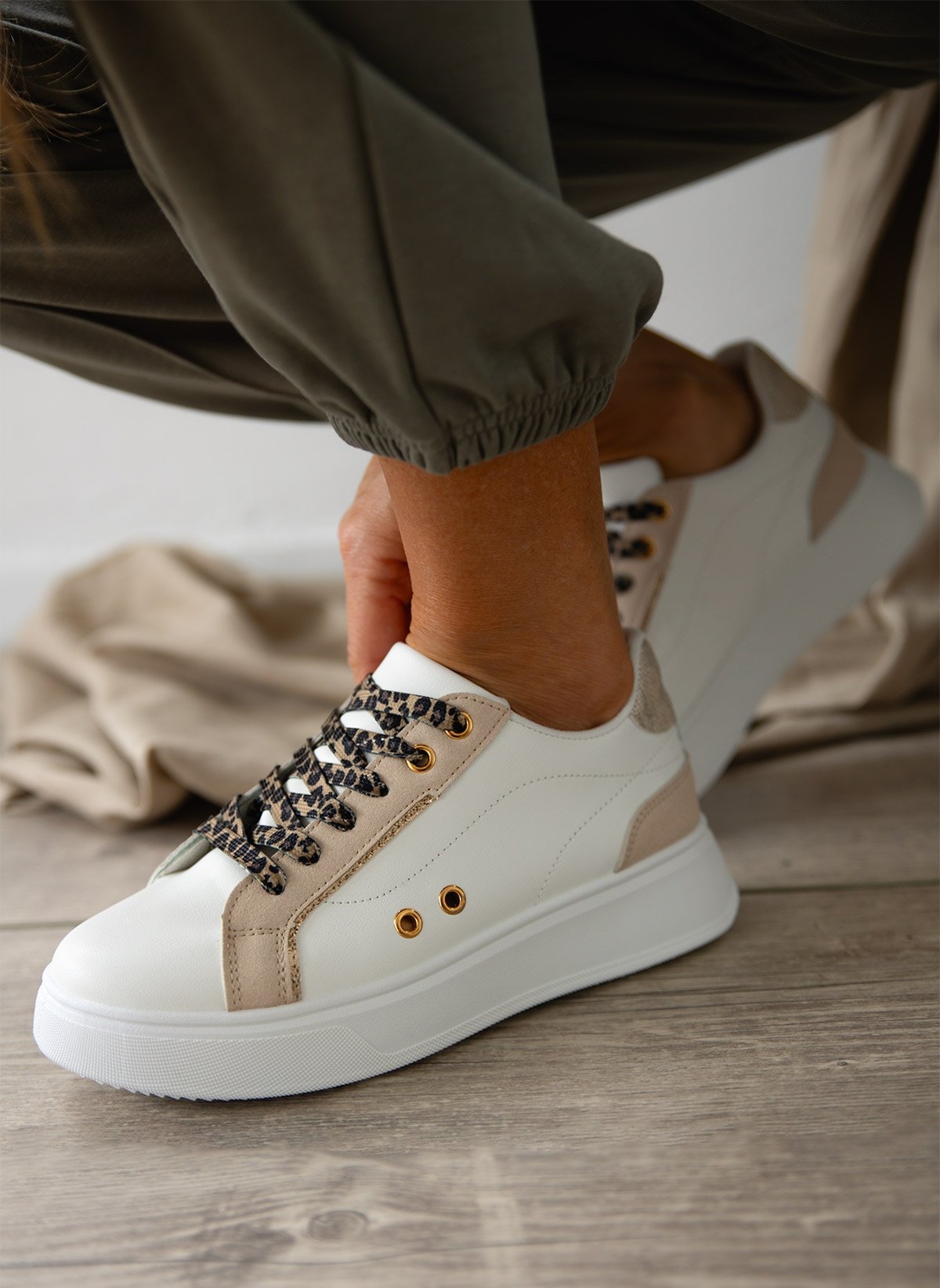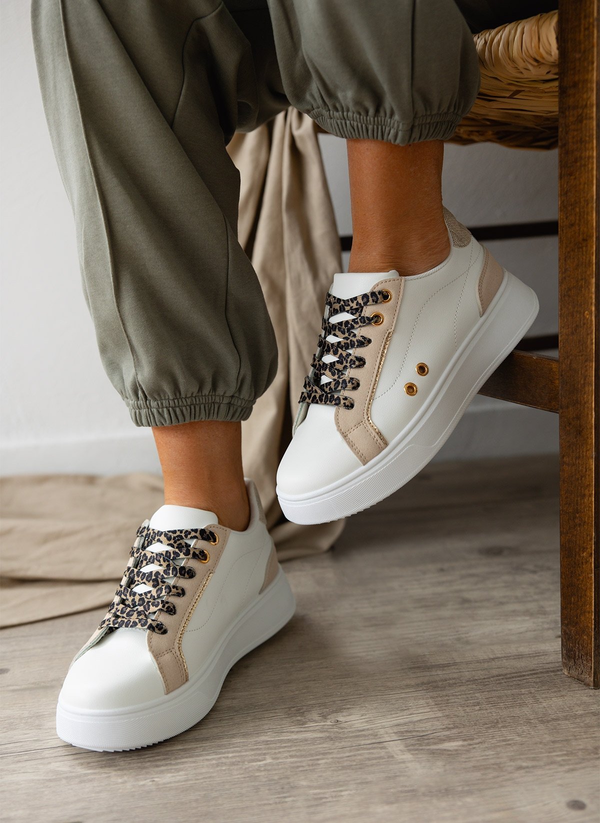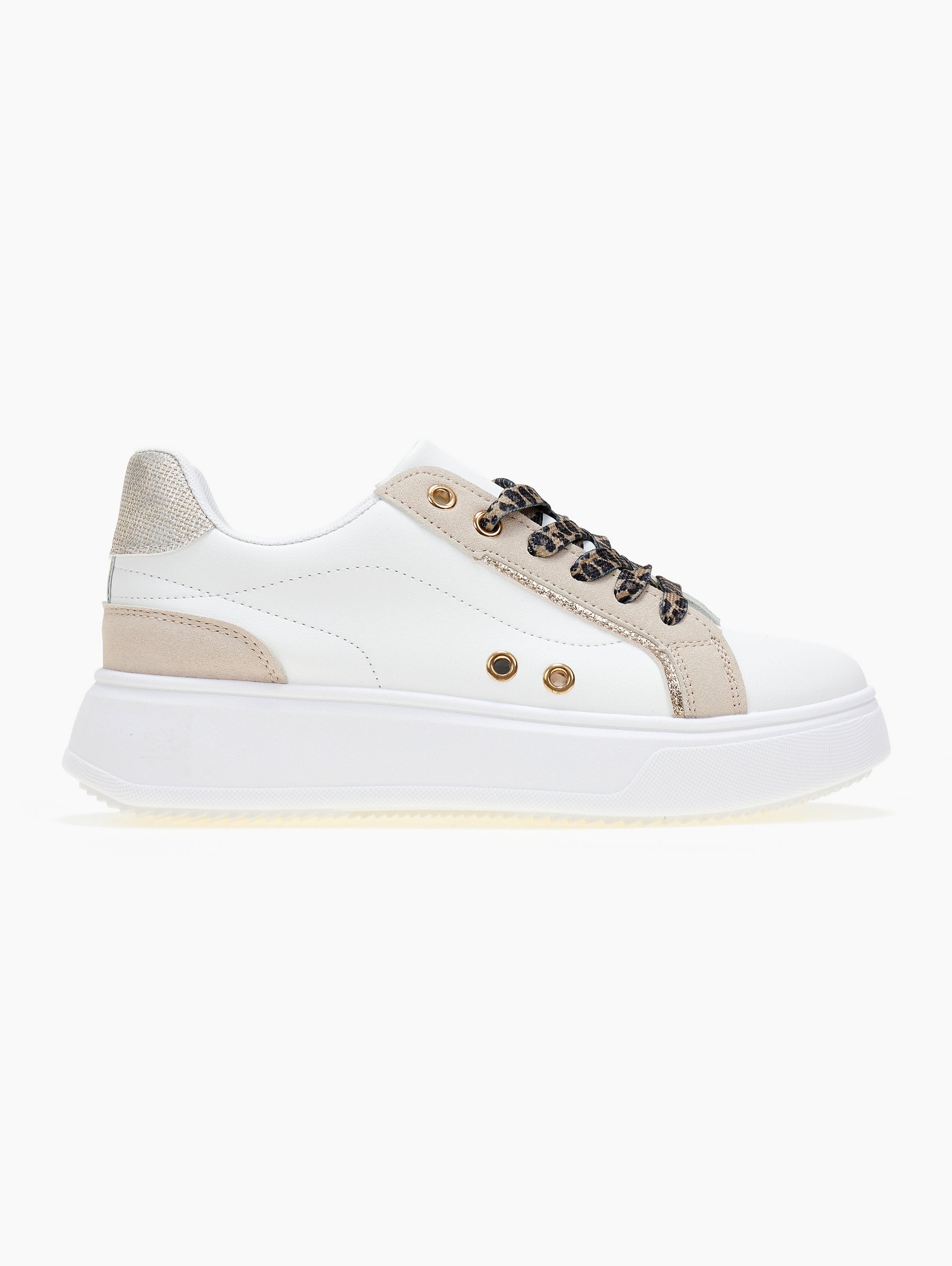 Sneakers flatforms με print στα κορδόνια - Λευκό