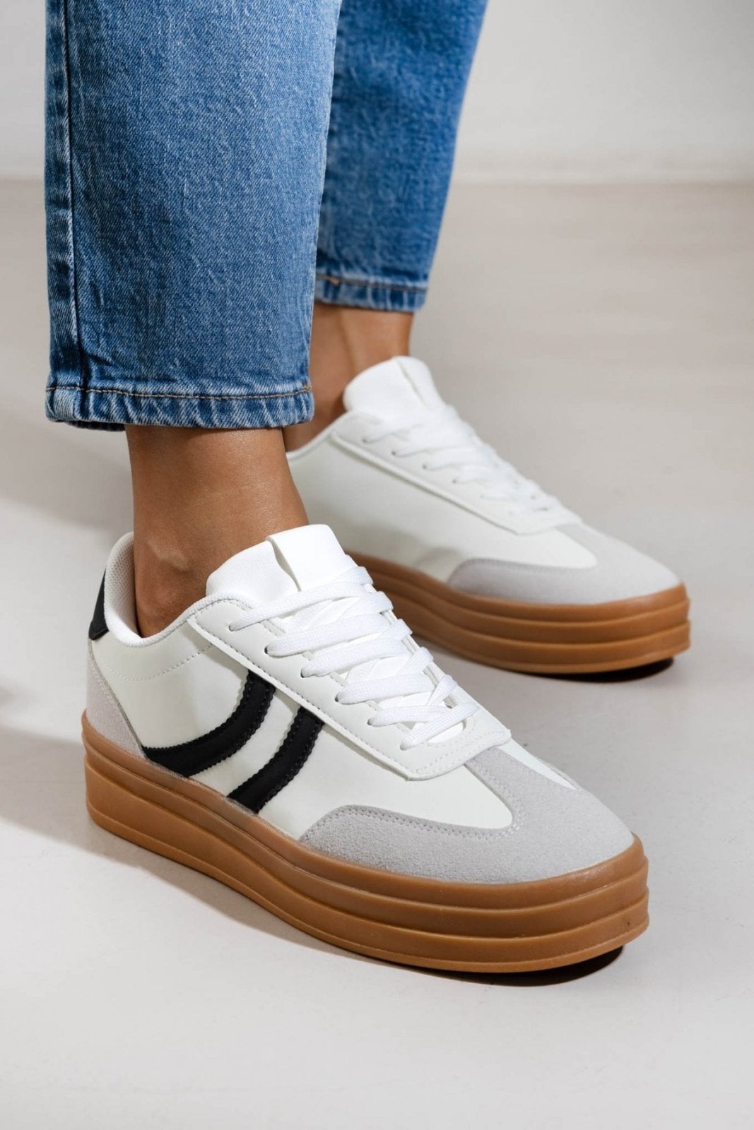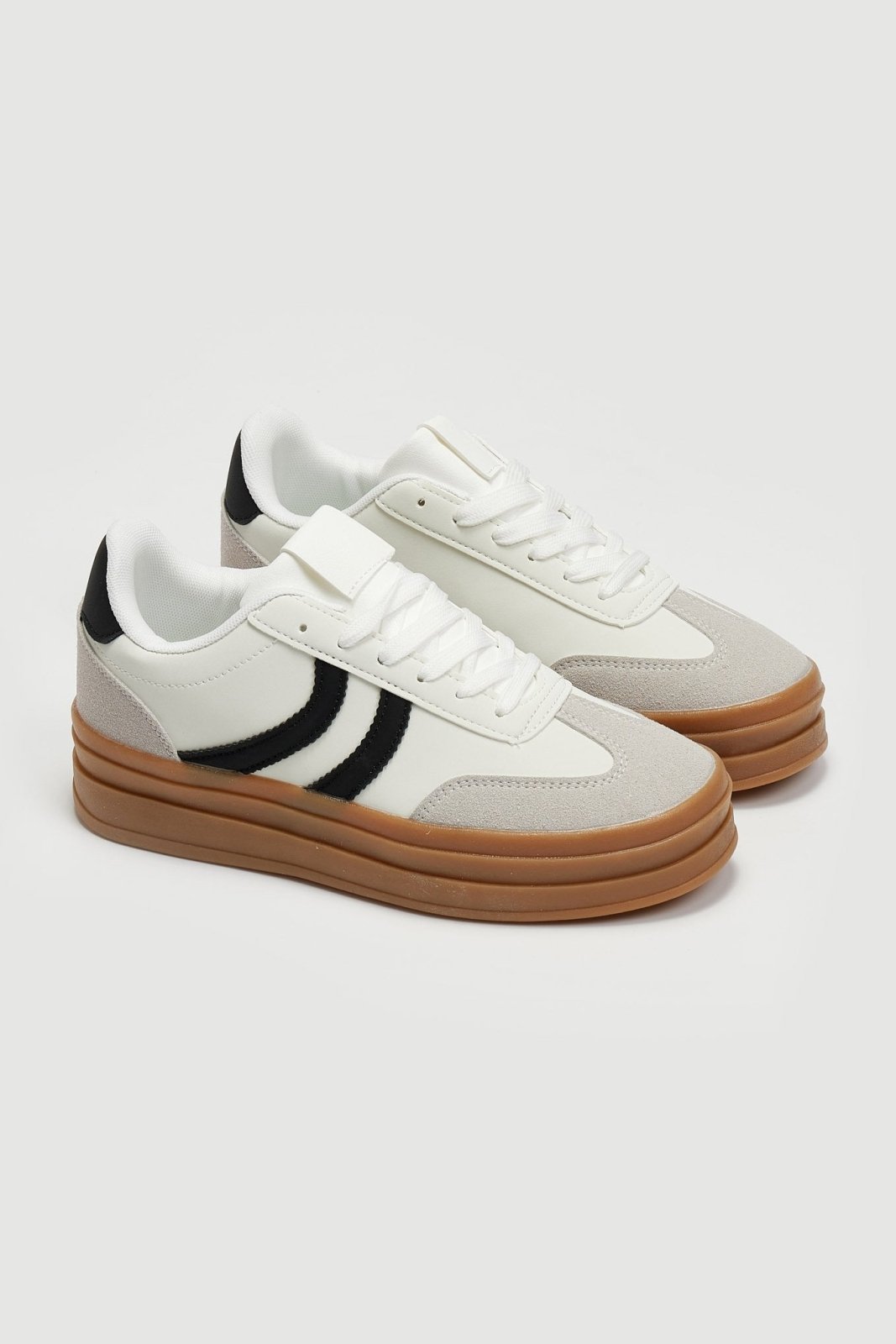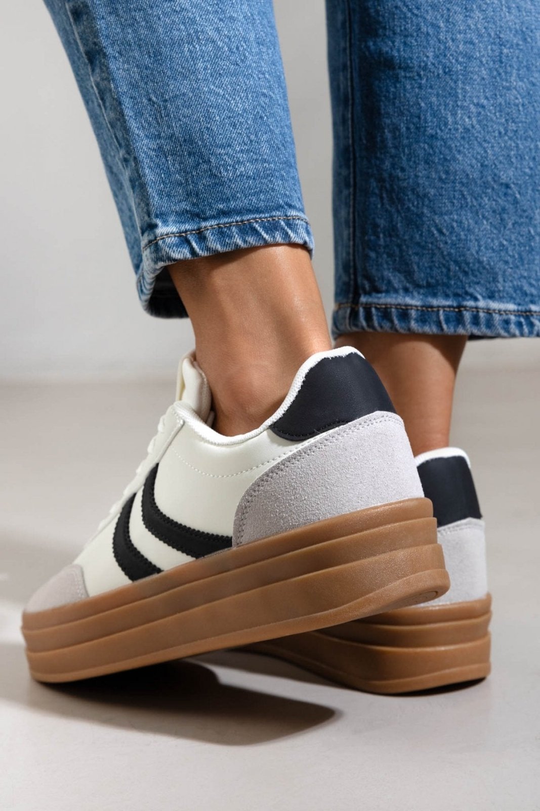Sneakers flatforms με ψηλή σόλα. Συνδυάζουν τεχνόδερμα και σουέντ.