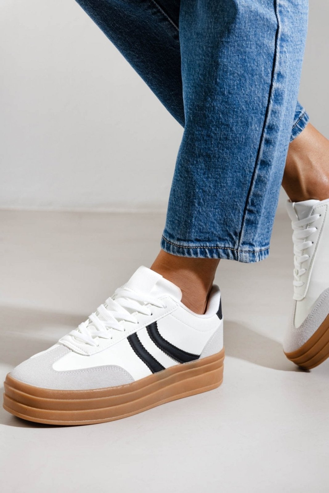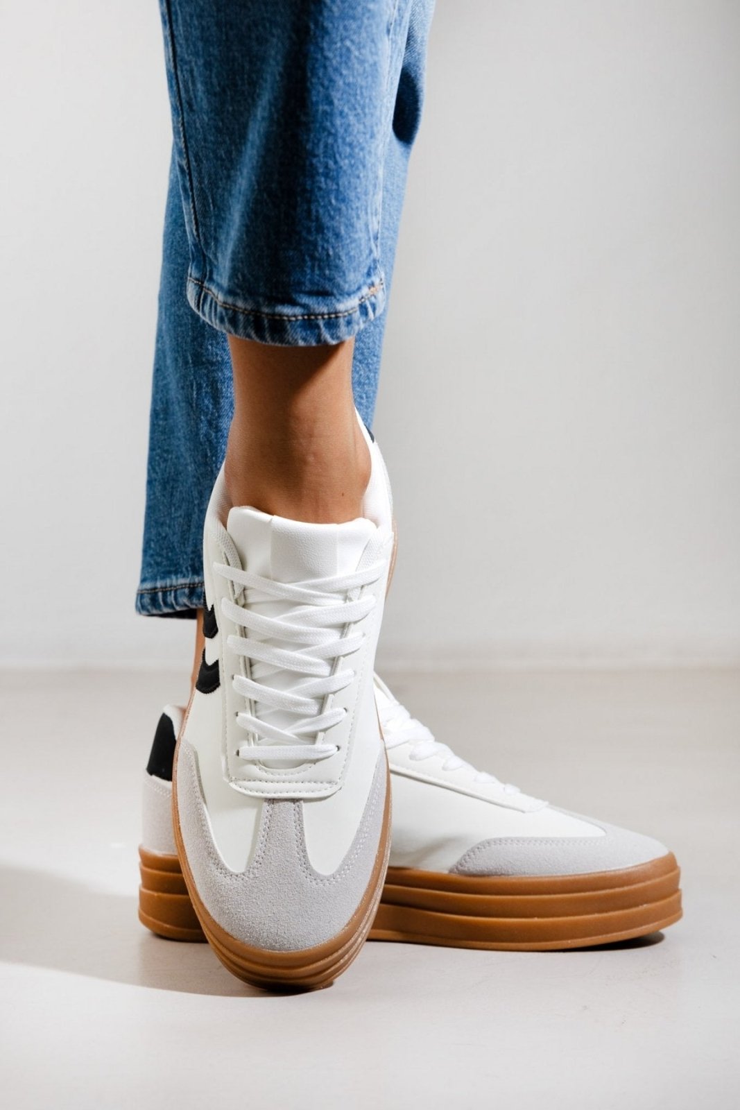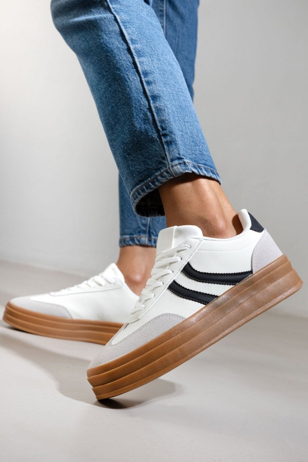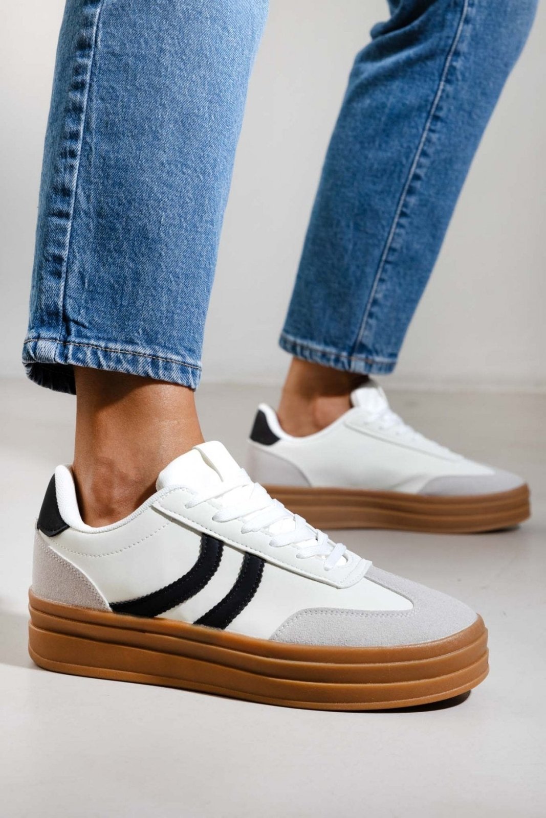 Sneakers flatforms με ψηλή σόλα. Συνδυάζουν τεχνόδερμα και σουέντ.