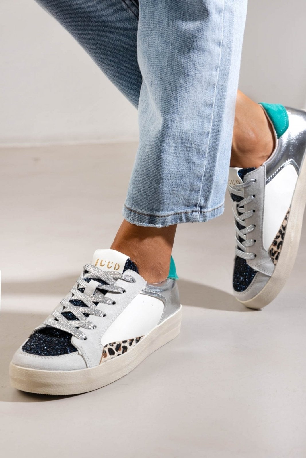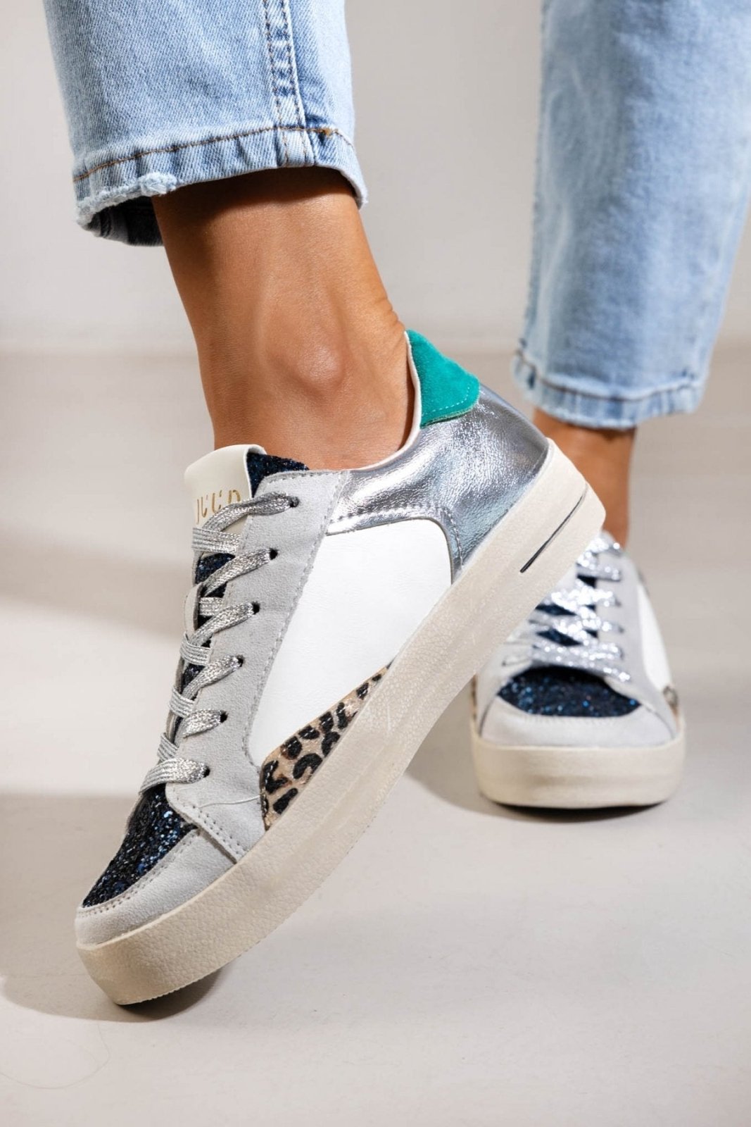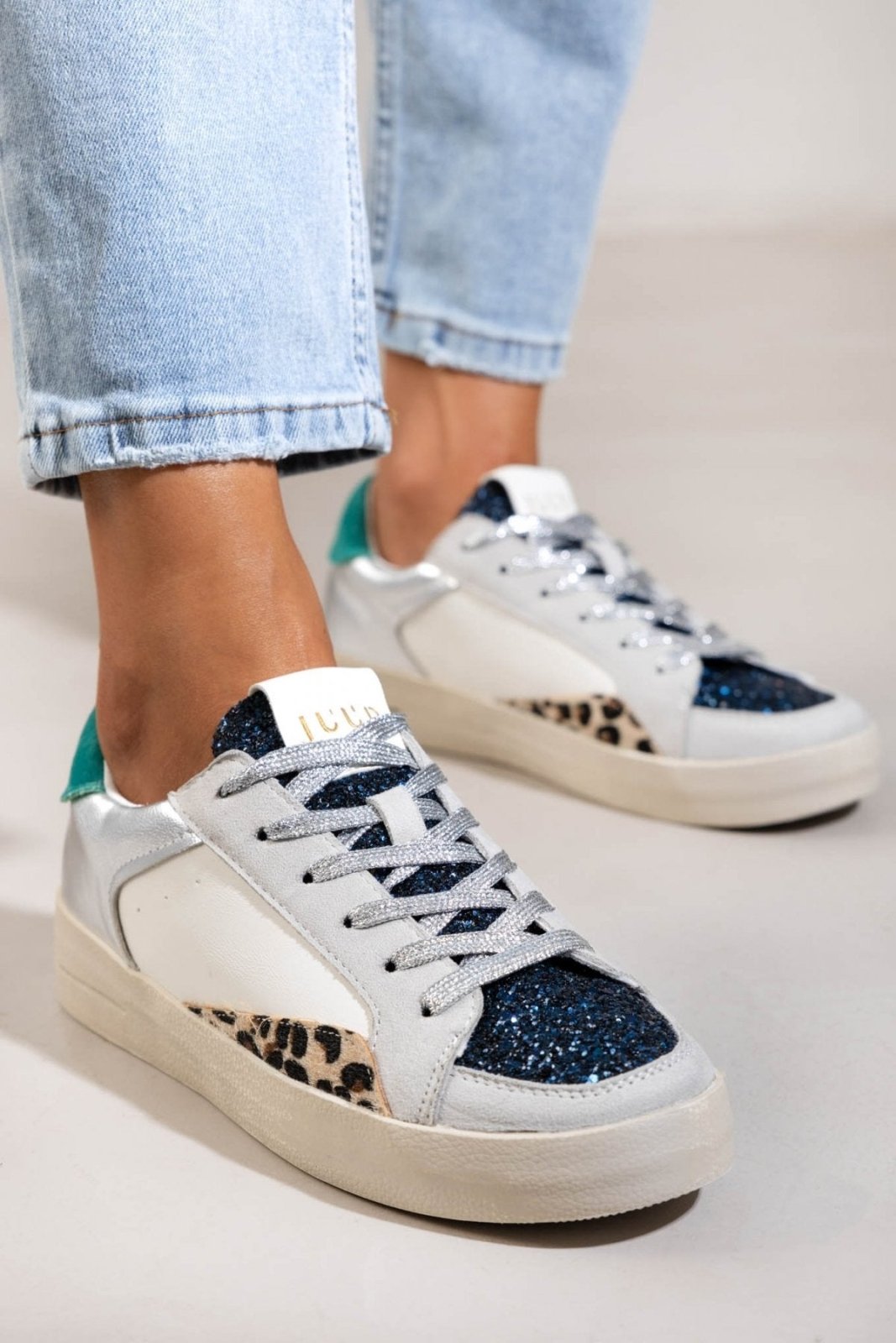 Sneakers με γκλίτερ στη μπροστινή πλευρά ERYNN. Συνδυασμός ματ και σουέντ υφών σε διάφορα χρώματα. Κορδόνια σε μεταλλικό χρώμα.