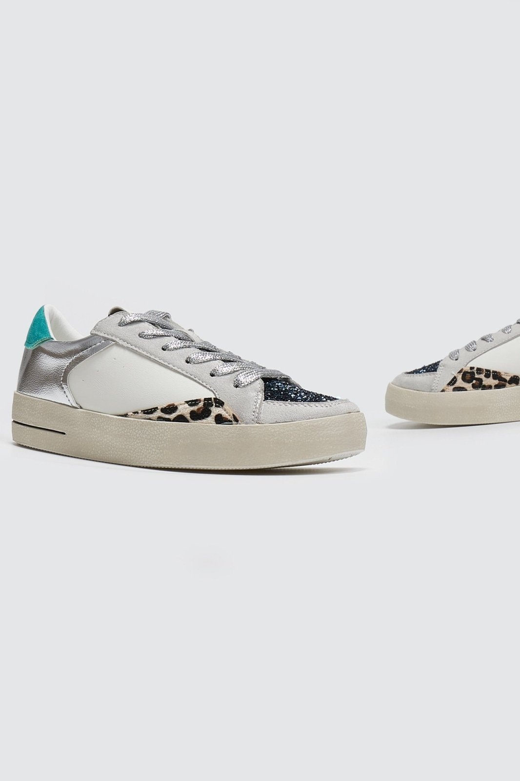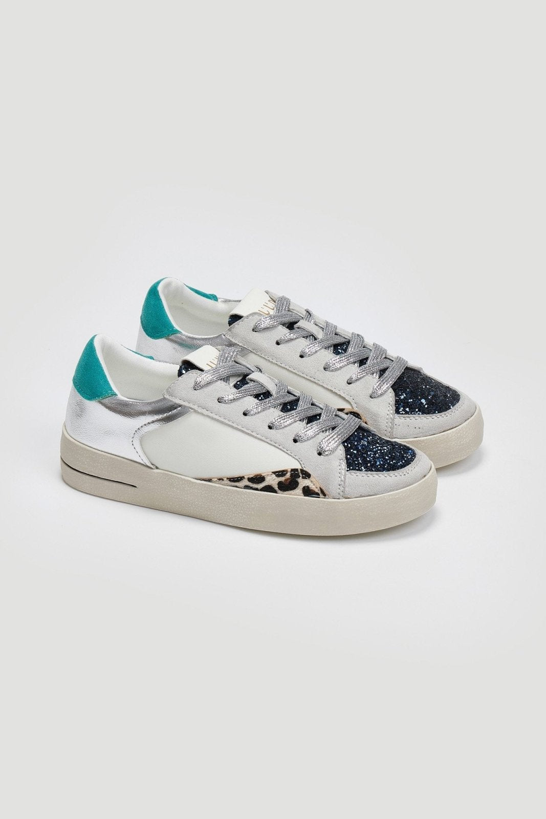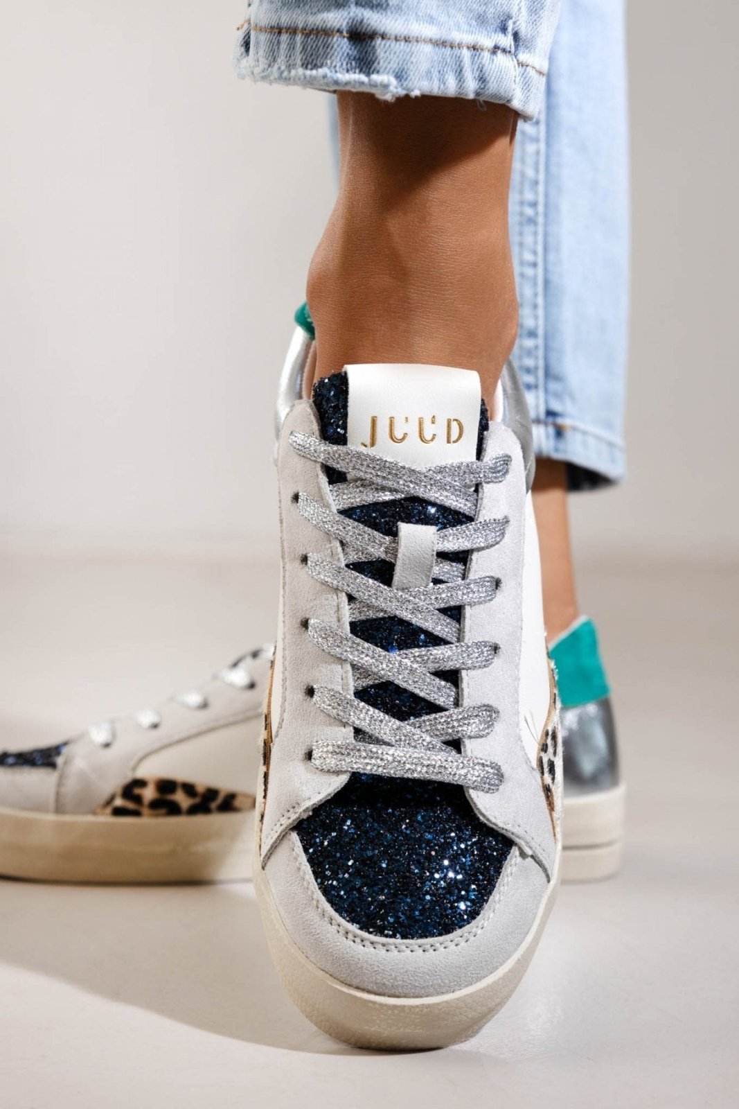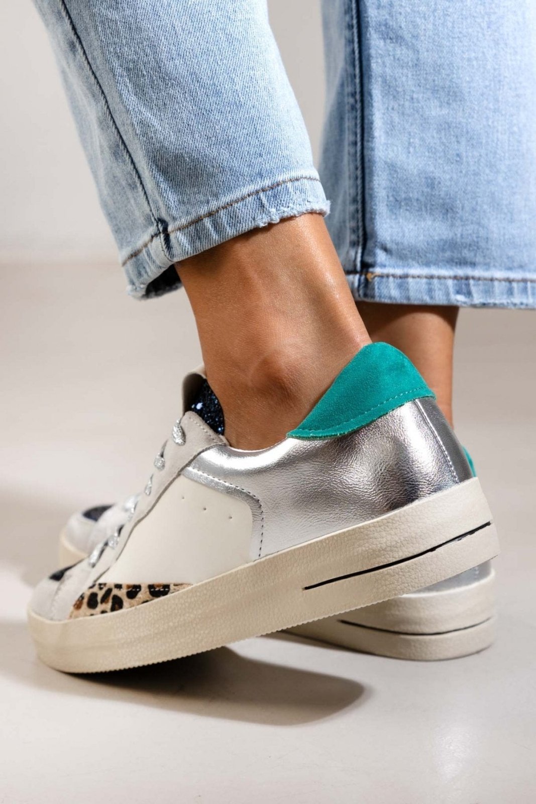 Sneakers με γκλίτερ στη μπροστινή πλευρά ERYNN. Συνδυασμός ματ και σουέντ υφών σε διάφορα χρώματα. Κορδόνια σε μεταλλικό χρώμα.