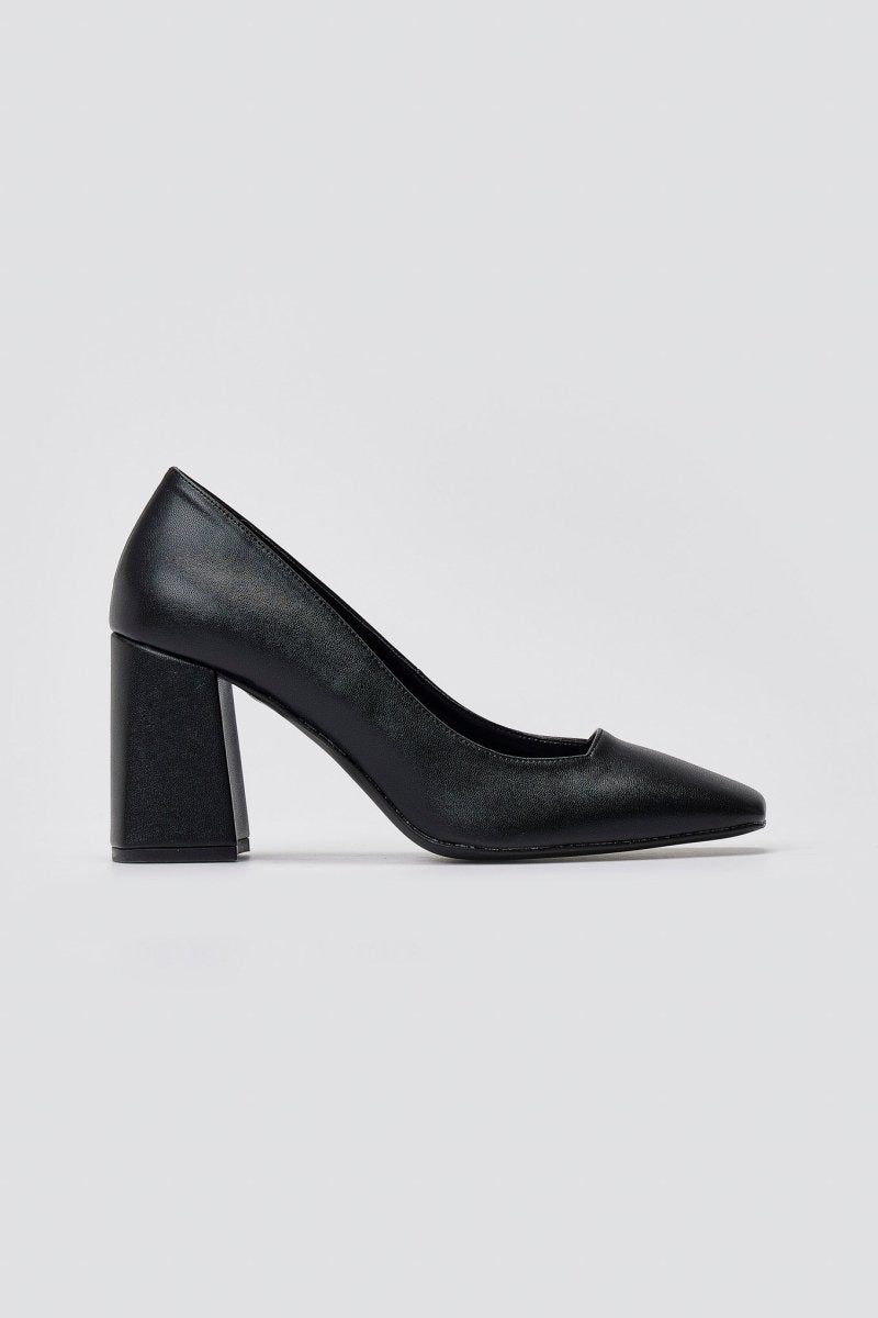 Γόβες με ψηλό τετράγωνο τακούνι και μοντέρνα τετράγωνη μύτη. Καθαρές γραμμές και ισορροπημένη ανύψωση για κομψό στυλ και αυτοπεποίθηση από το πρωί ως το βράδυ.