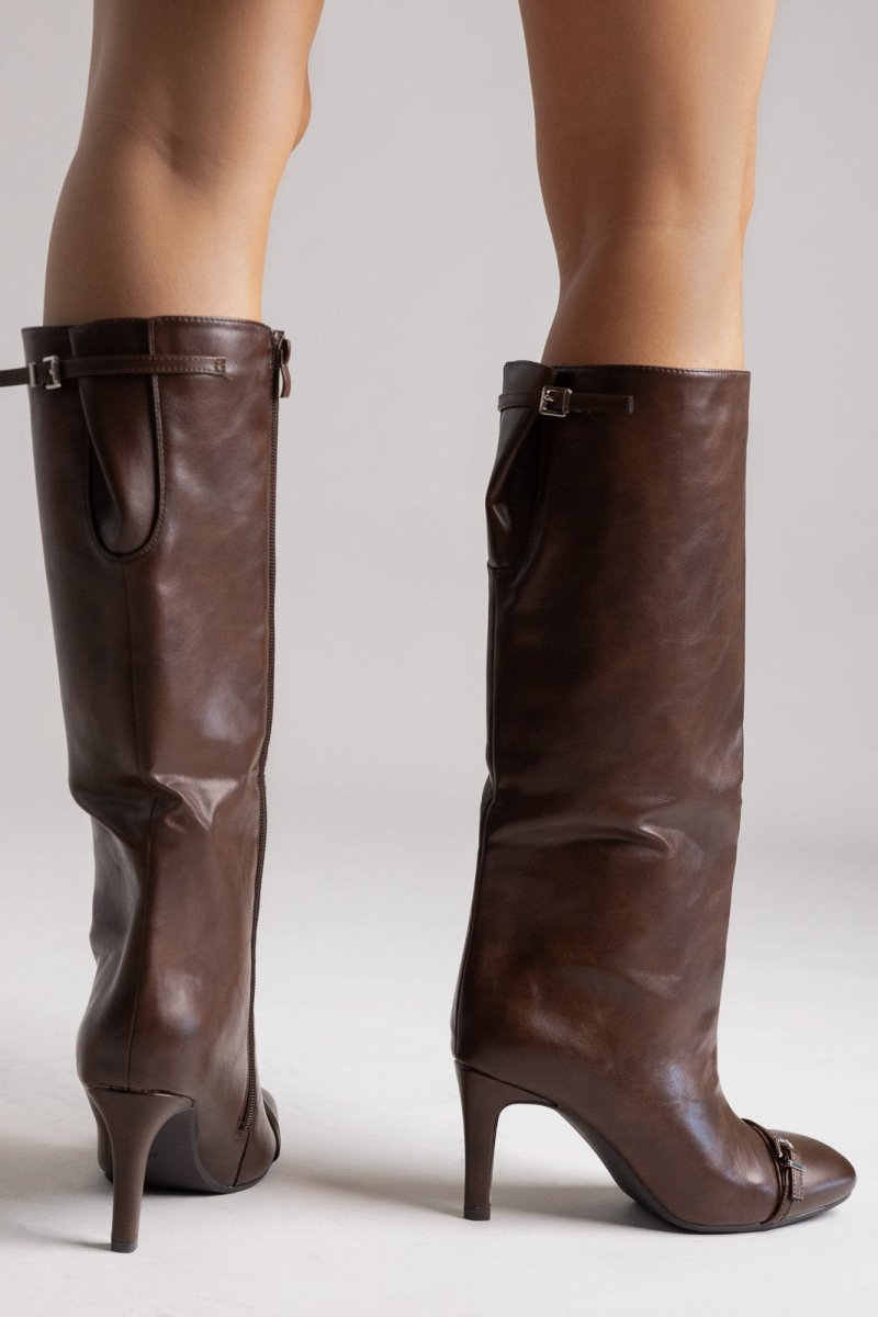 Μπότες στιλέτο - καφέ ματ