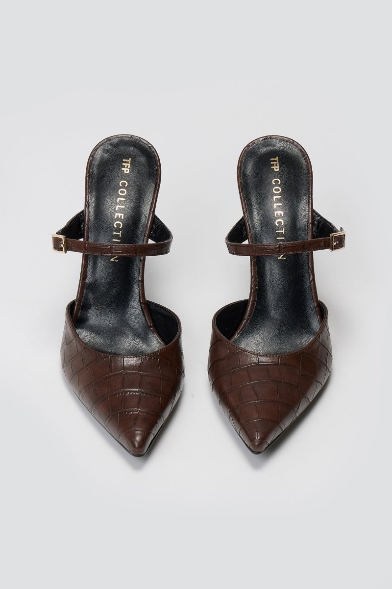 Μυτερά Mules με Κροκό Σχέδιο TFP - Καφέ Κροκό