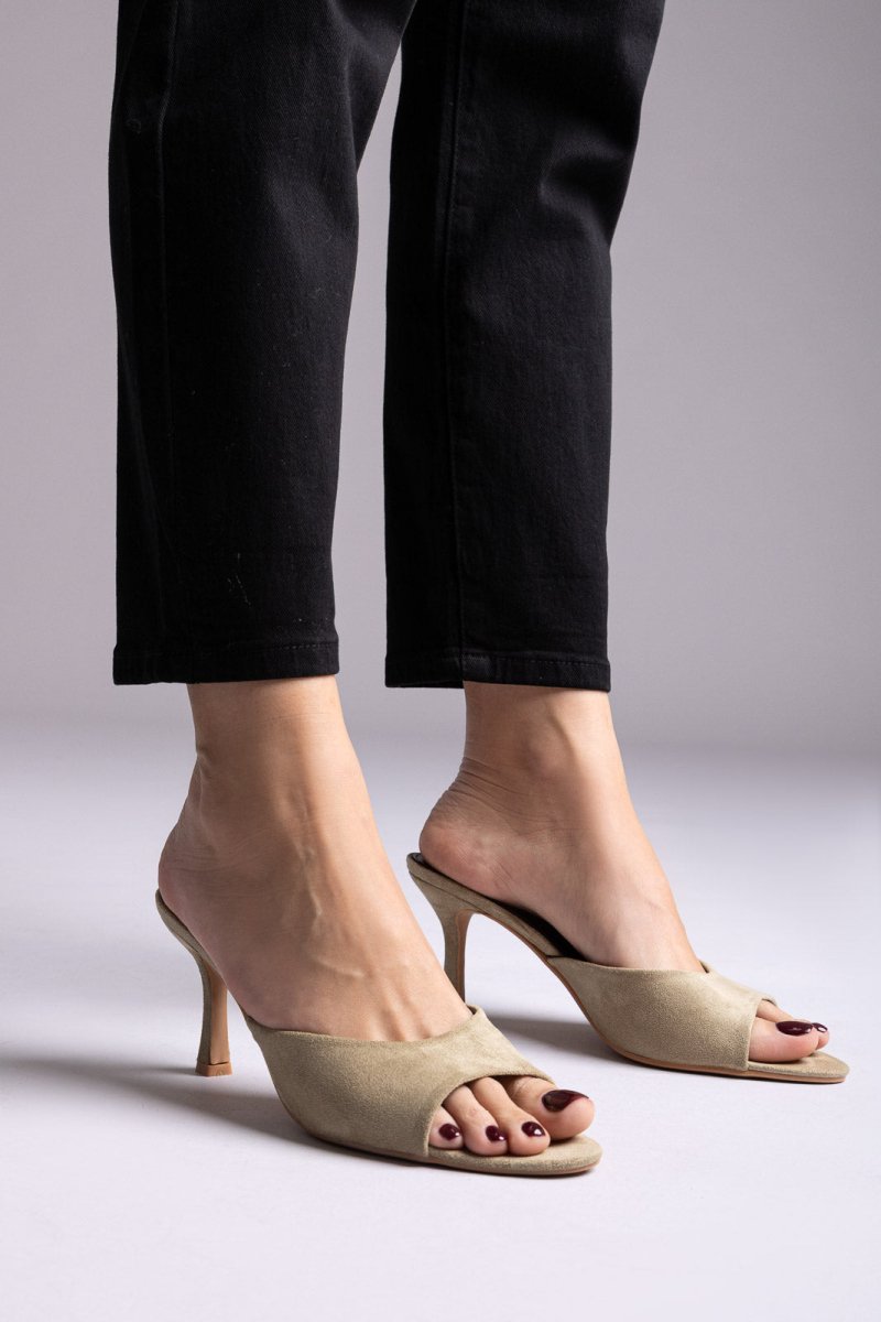 Στιλέτο Mules - Λαδί Σουέντ