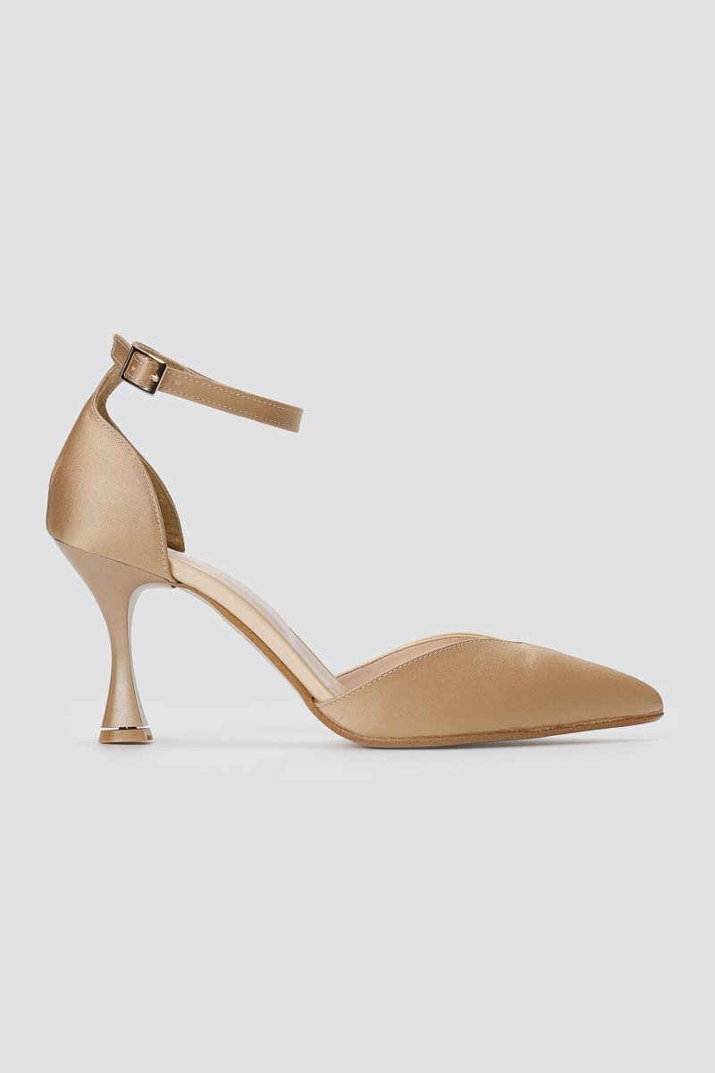 Γόβες στιλέτο με μυτερή μύτη - Σατέν σε μπεζ/καφέ