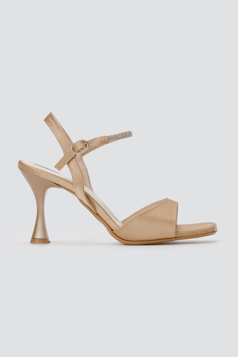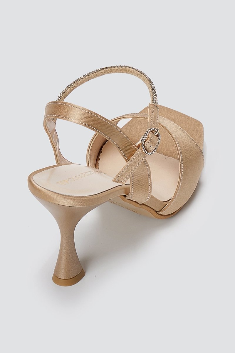 Πέδιλα με λεπτό τακούνι - Μπεζ σατέν