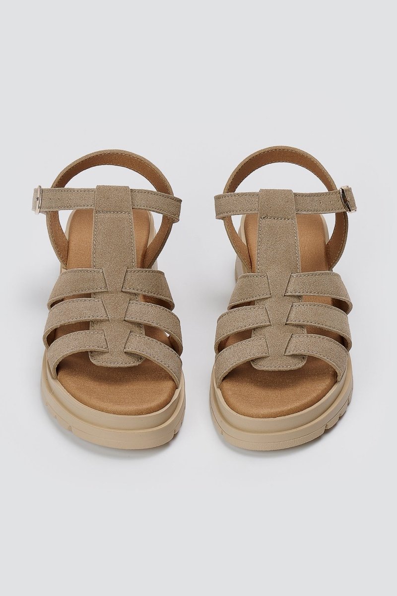Σουέντ σανδάλια με μπαρέτα - Μπεζ σουέντ