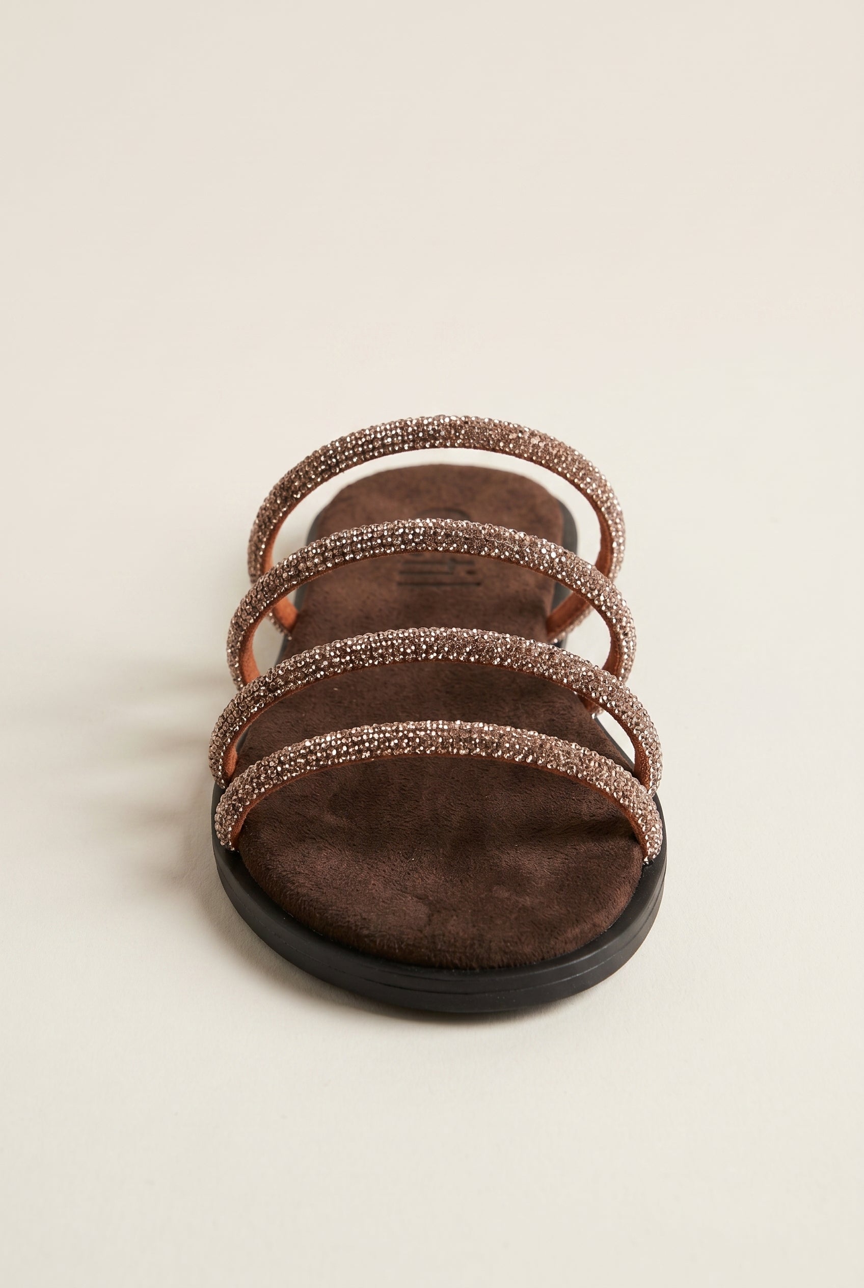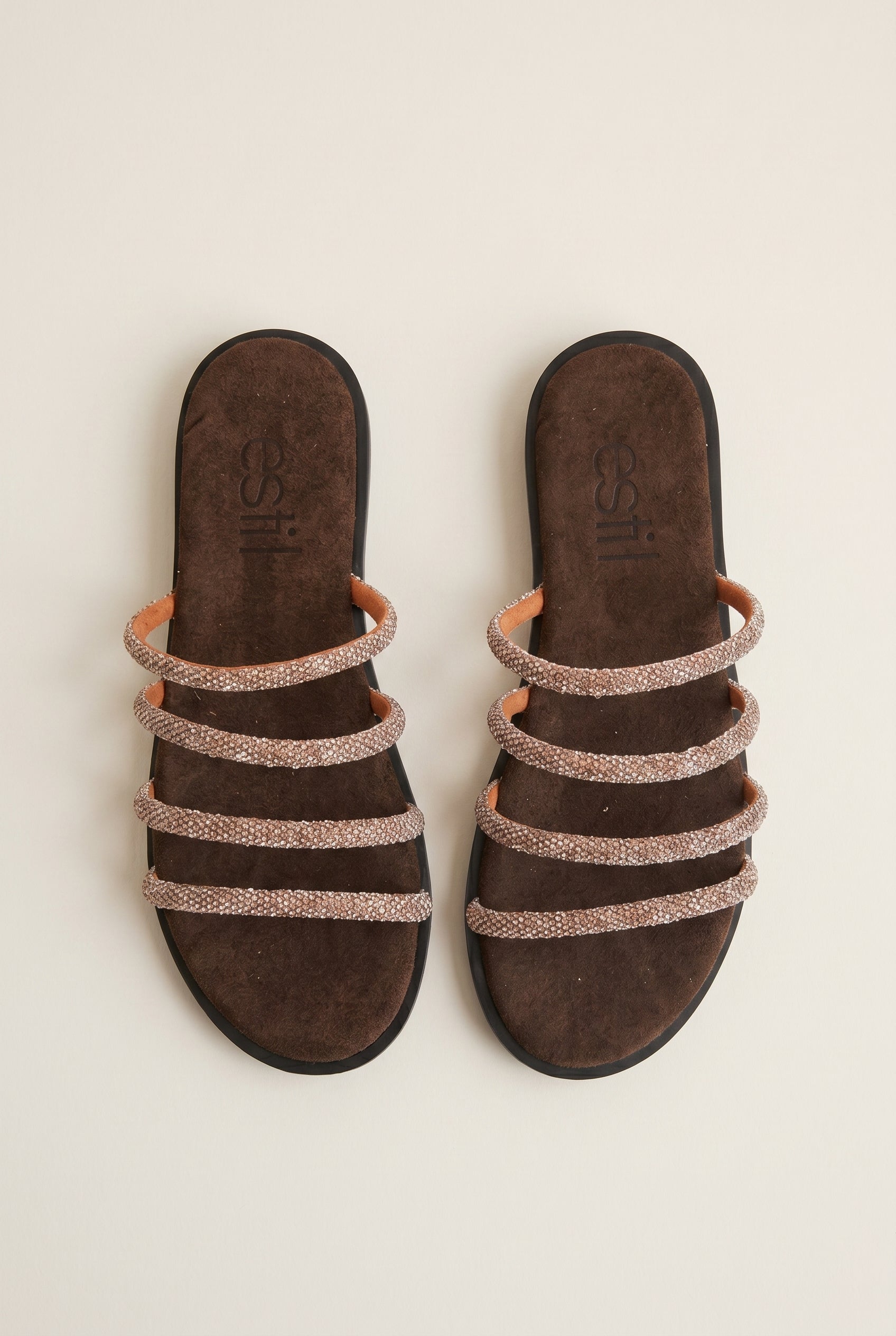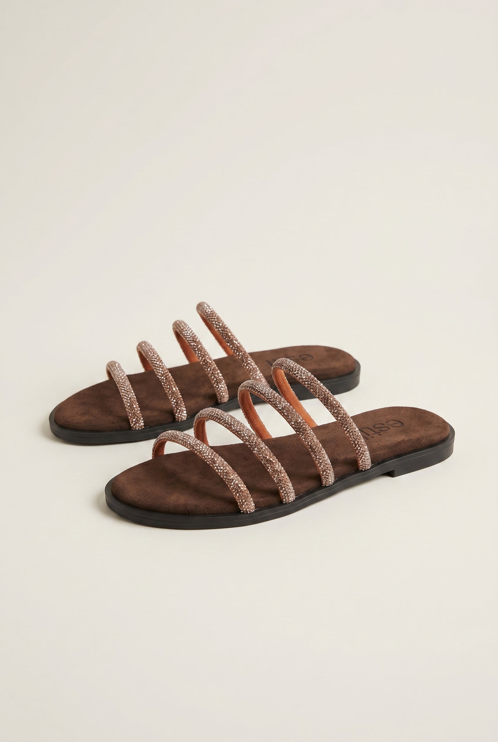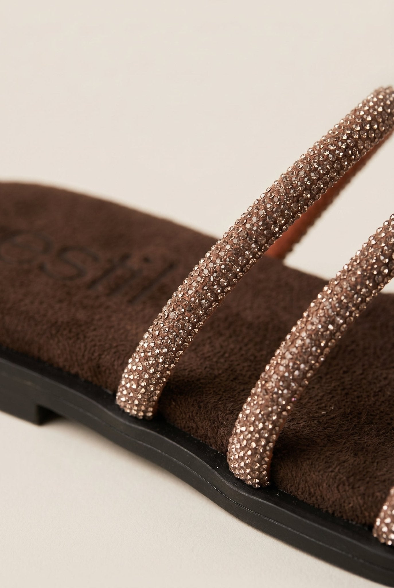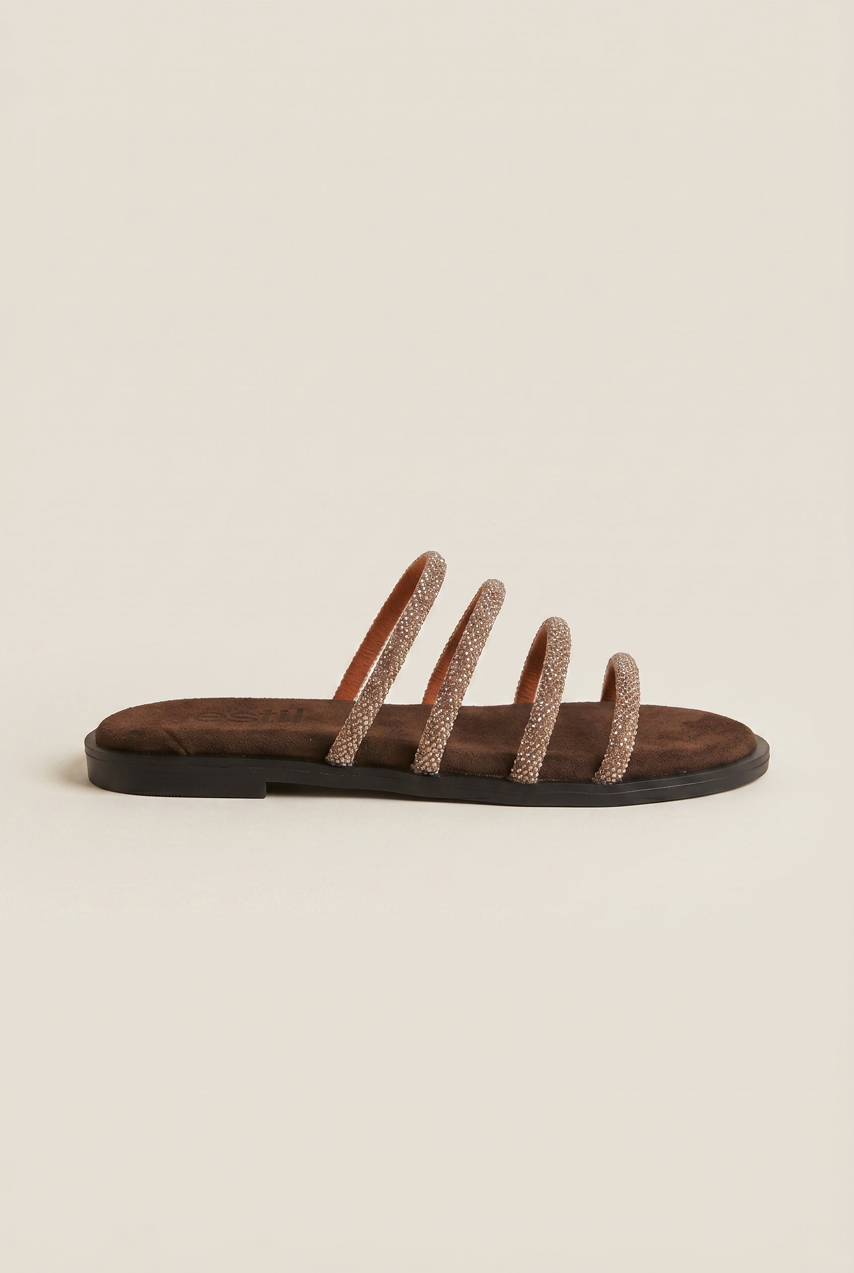 Δερμάτινα Σανδάλια με Στρας - Καφέ Σουέντ
