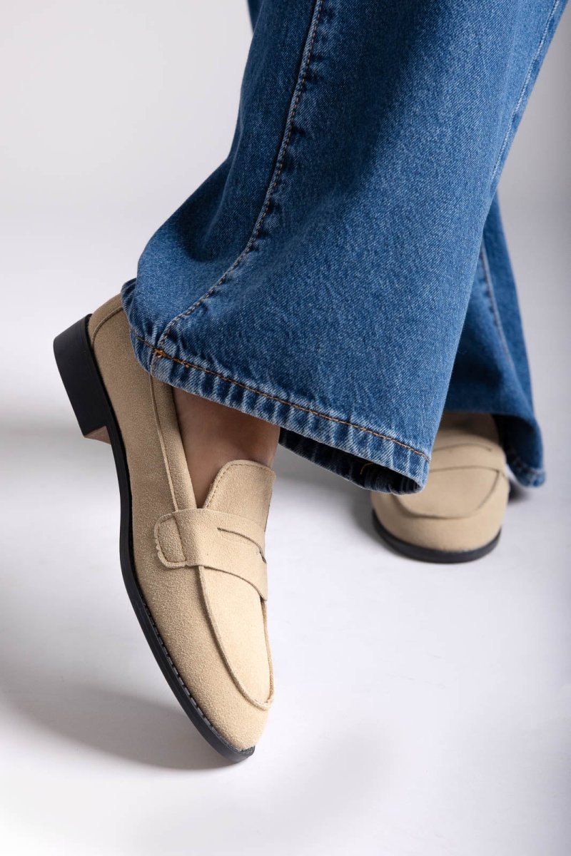 Σουέτ loafers φλατ - Μπεζ Σουέτ